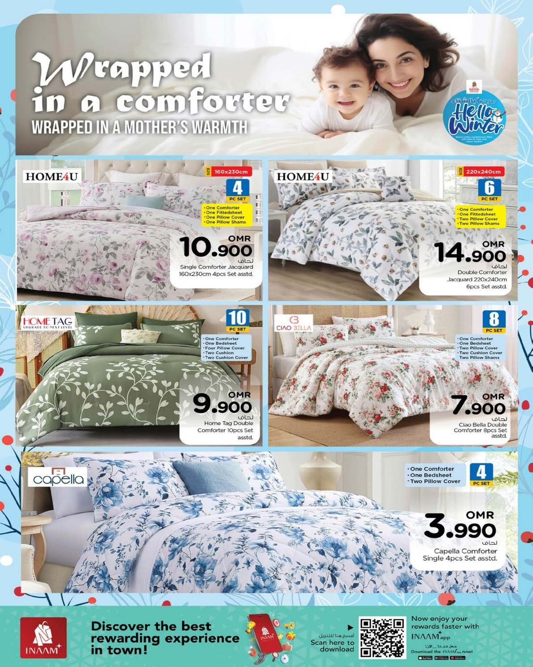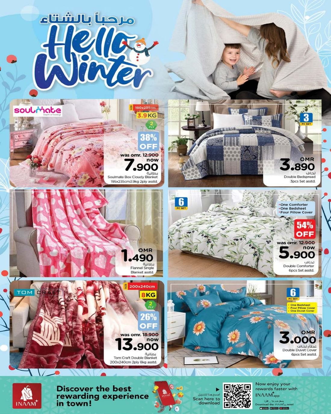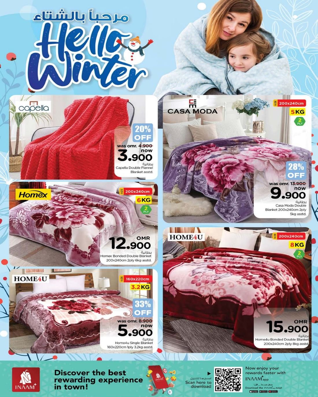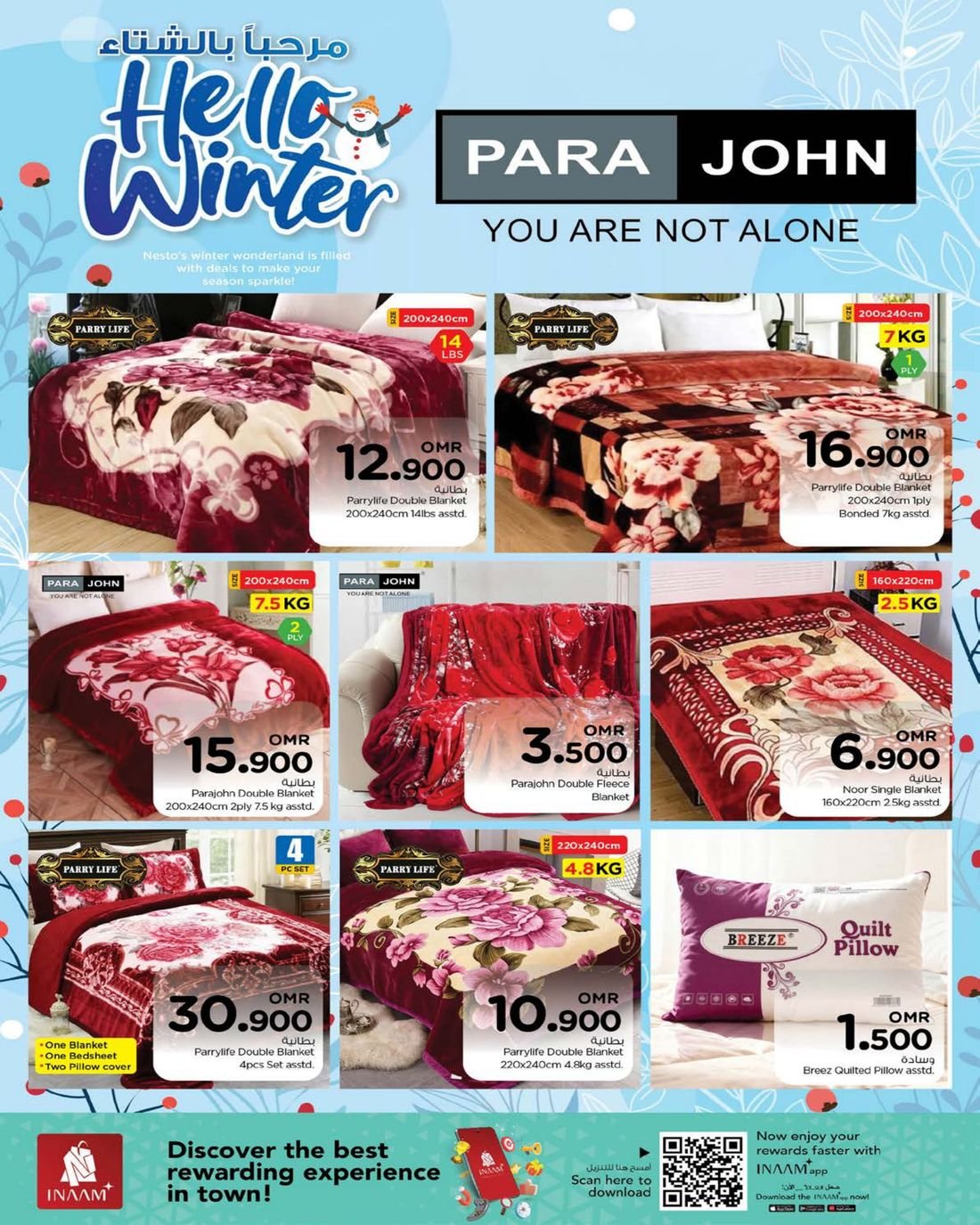 عروض المفارش والبطانيات المتنوعة ولوازم الشتاء المتنوعة في تخفيضات موسمية من نستو هايبرماركت في فروع محددة ، تسوق الان ما تحتاجه من مفارش السرير المتنوعة ضمن تخفيضات نستو هايبرماركت عمان القيمة .