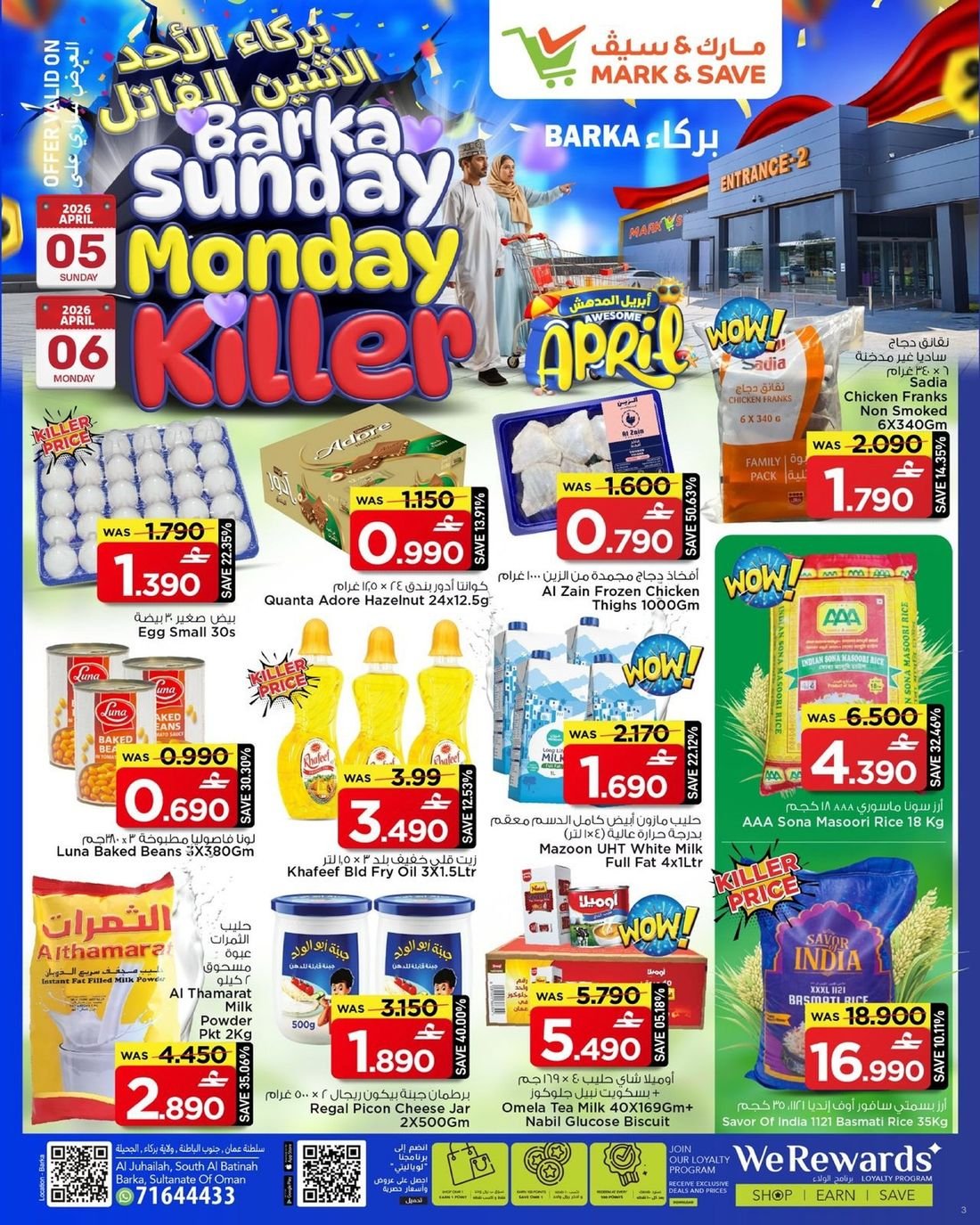 عروض الغذائيات المتنوعة ولوازم المنزل من مارك اند سيف في فرعه في بركاء، تسوق الان من مارك اند سيف افضل المنتجات والمواد الغذائية المتنوعة وبارخص الاسعار ضمن العروض الاسبوعية المميزة لديهم .