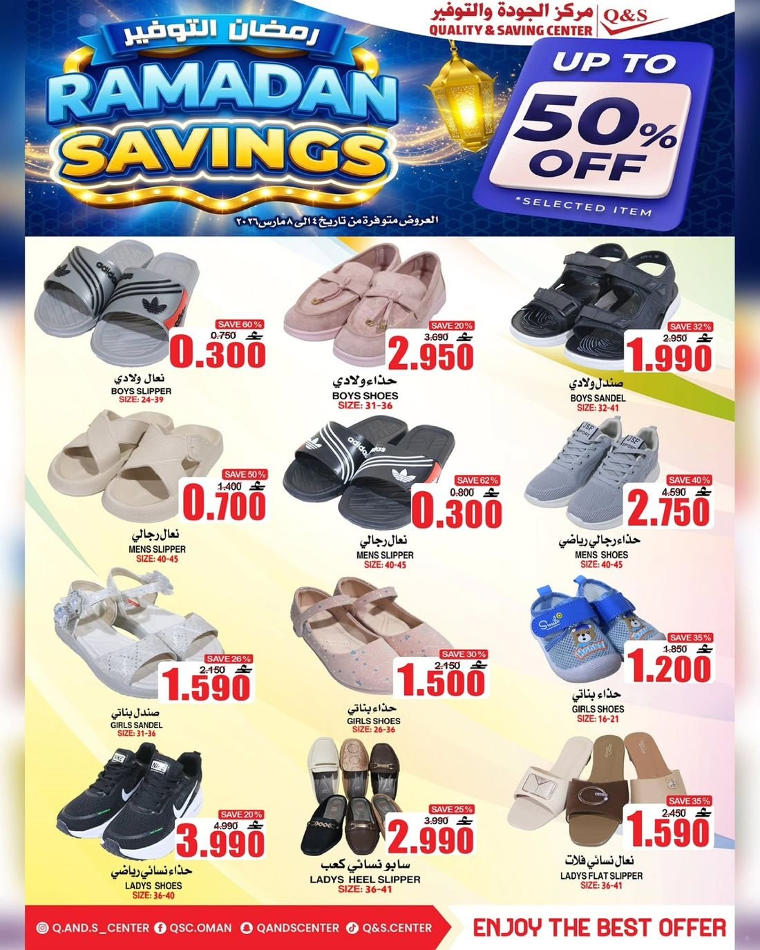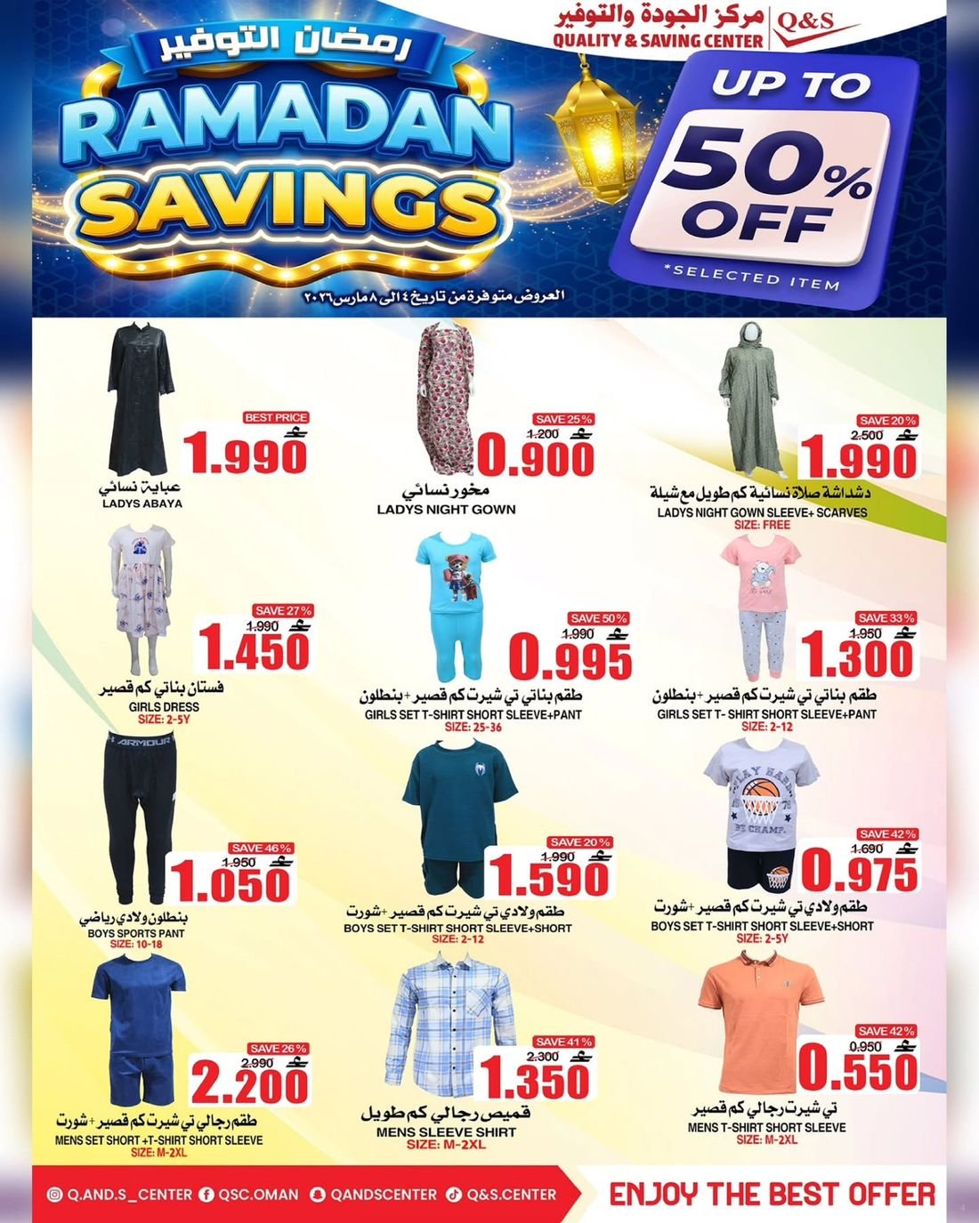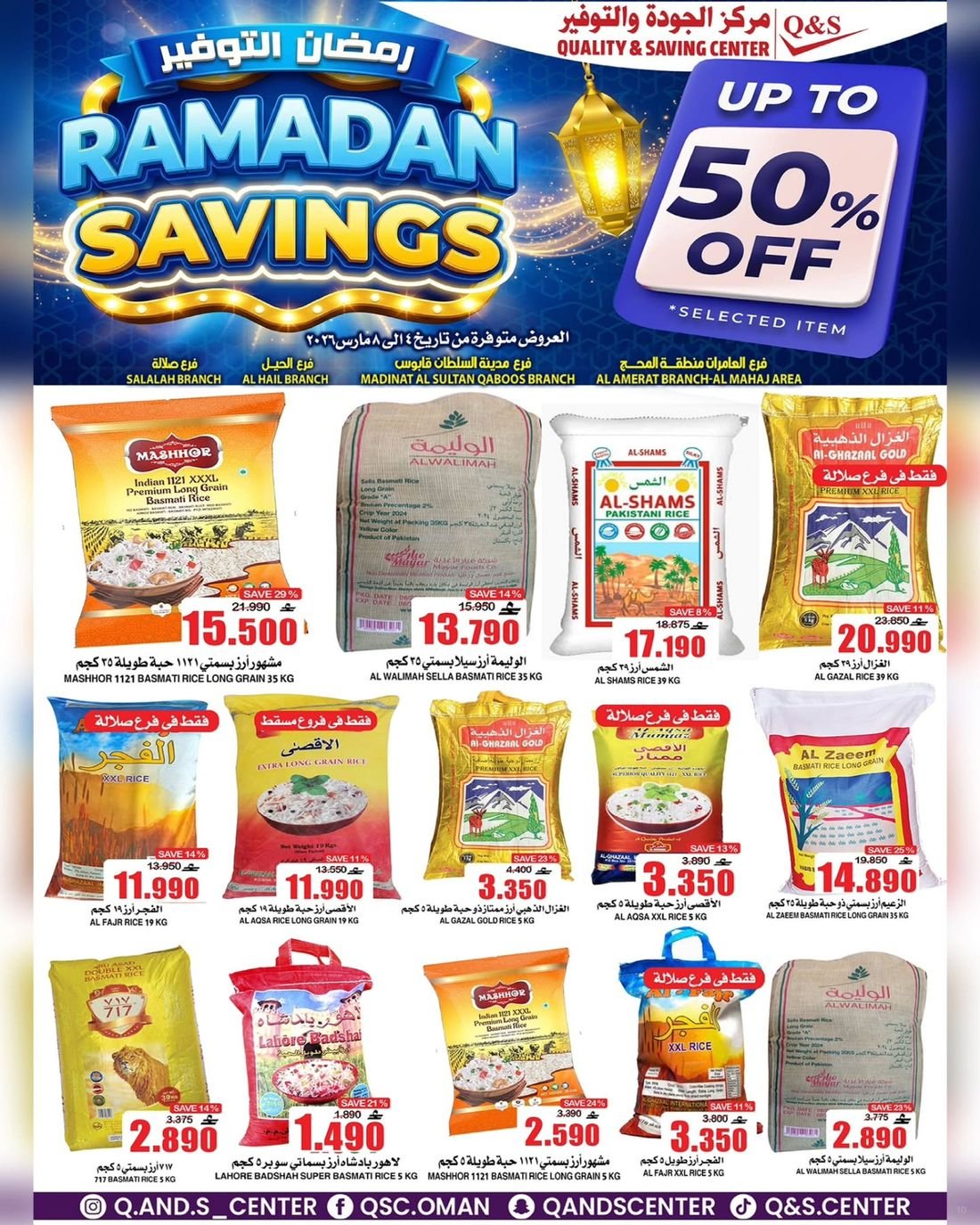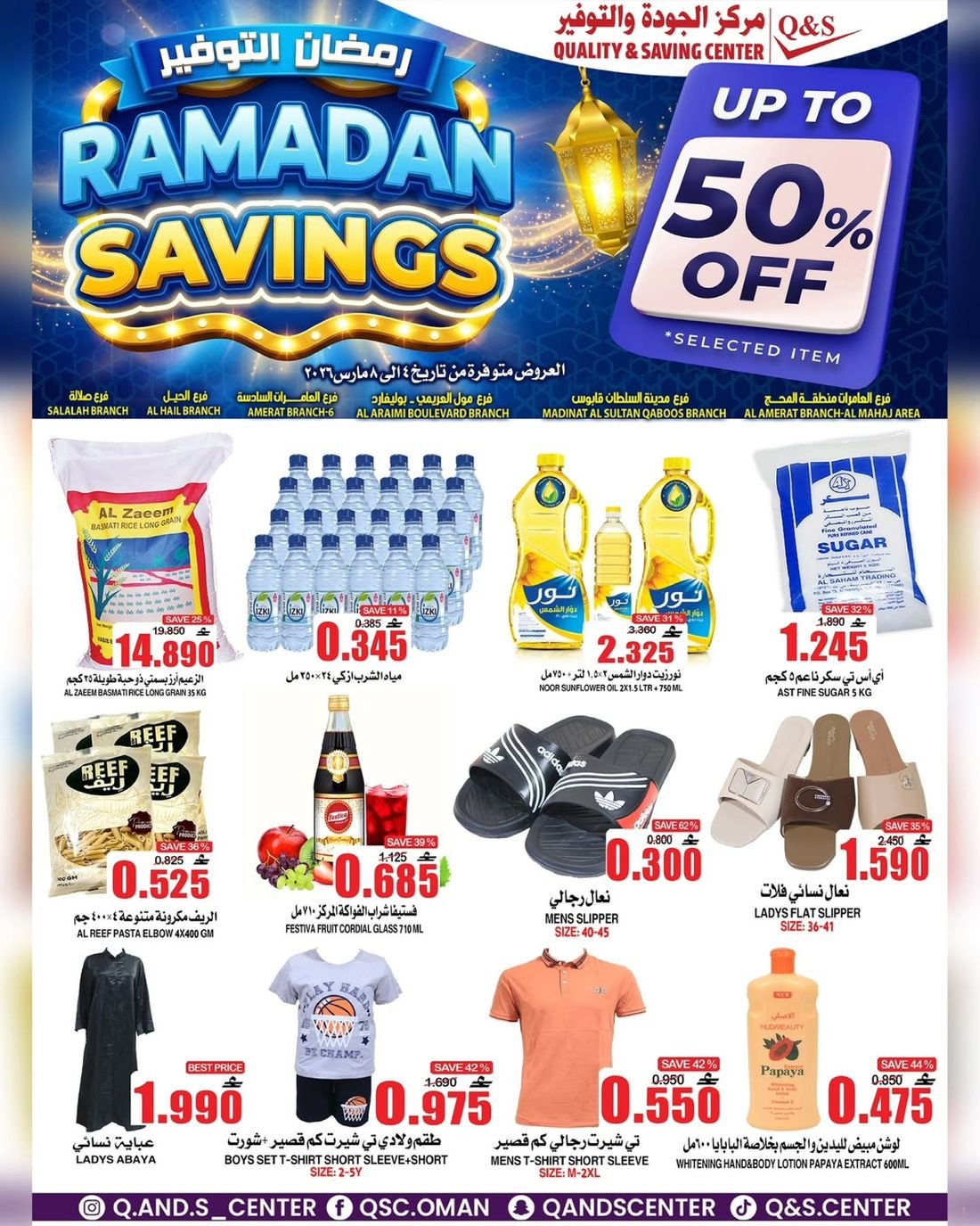 تسري عروض مركز الجودة والتوفير في فرع العامرات (المحج) ومدينة السلطان قابوس والحيل وصلالة.