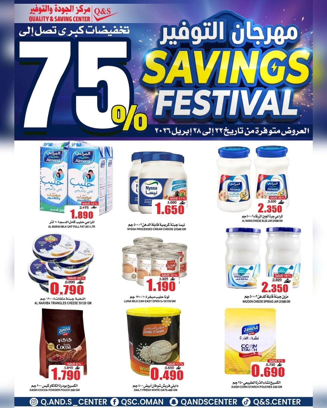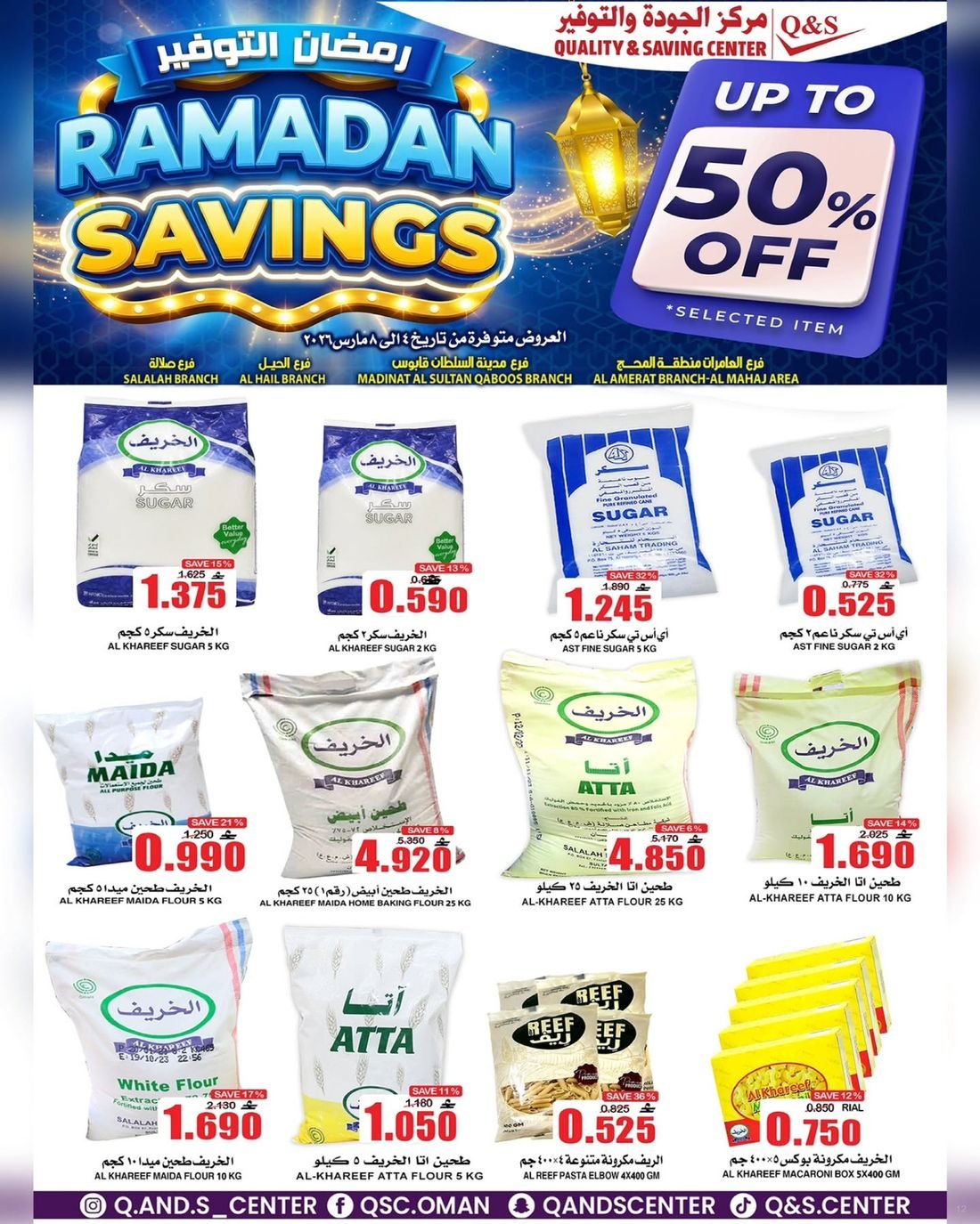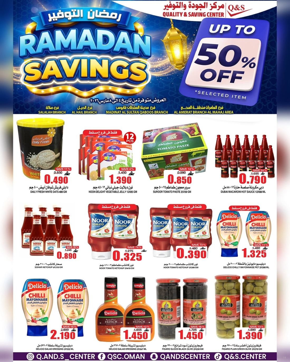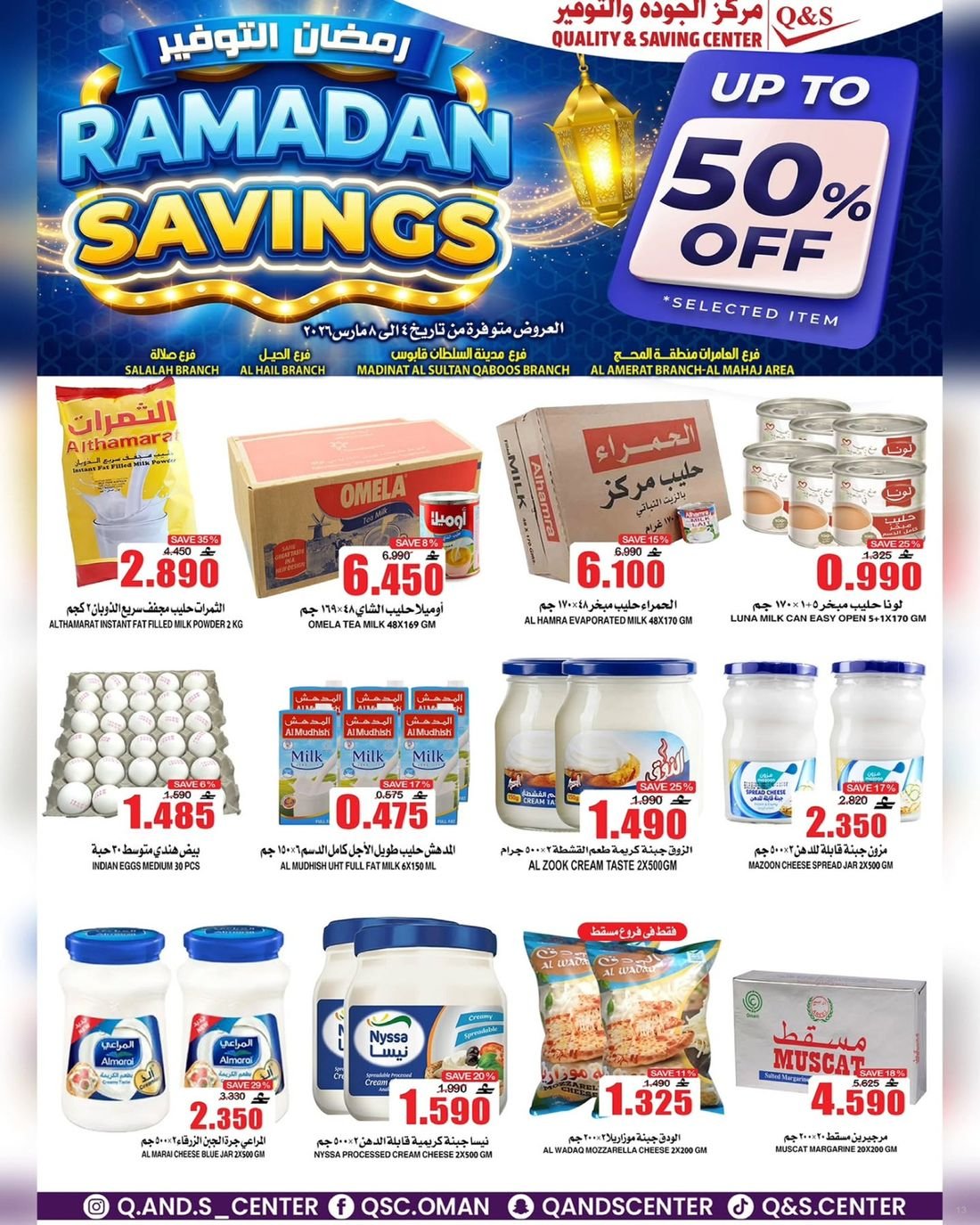 عروض الغذائيات ولوازم المنزل من مركز الجودة والتوفير Quality and Saving Center Amerat تشمل عروض مركز الجودة والتوفير مجموعة متنوعة من المواد الغذائية وحاجيا تالمنزل إضافة إلى بعض لوازم وحاجيات المنزل وبتنزيلات منافسة