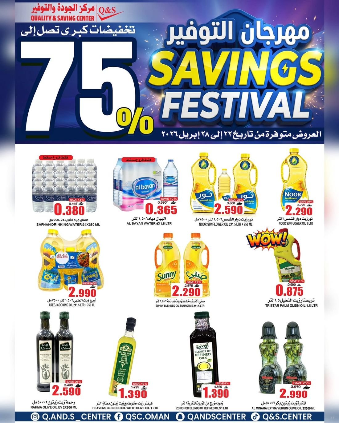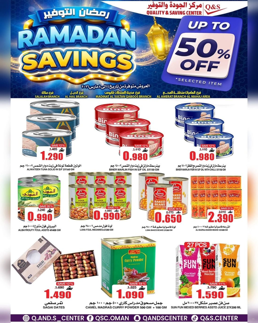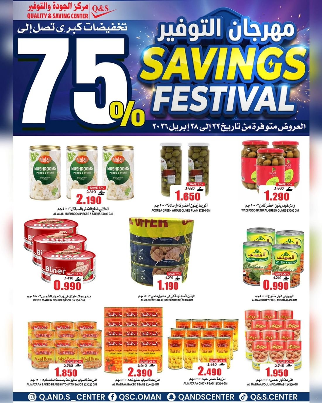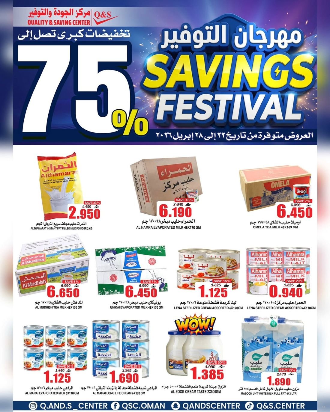 عروض الغذائيات ولوازم المنزل من مركز الجودة والتوفير Quality and Saving Center Amerat تشمل عروض مركز الجودة والتوفير مجموعة متنوعة من المواد الغذائية وحاجيا تالمنزل إضافة إلى بعض لوازم وحاجيات المنزل وبتنزيلات منافسة