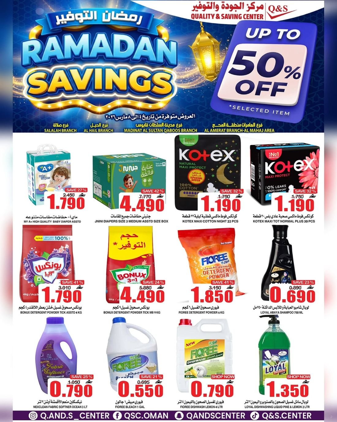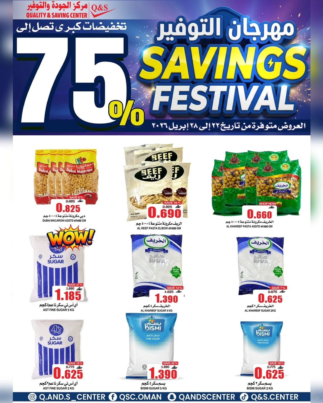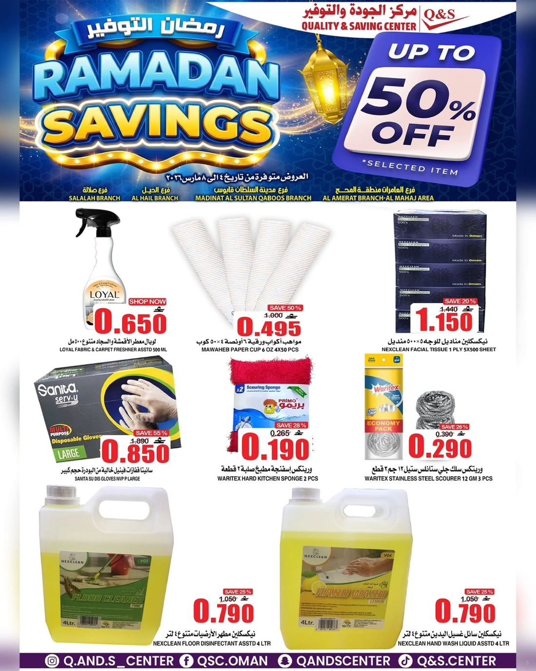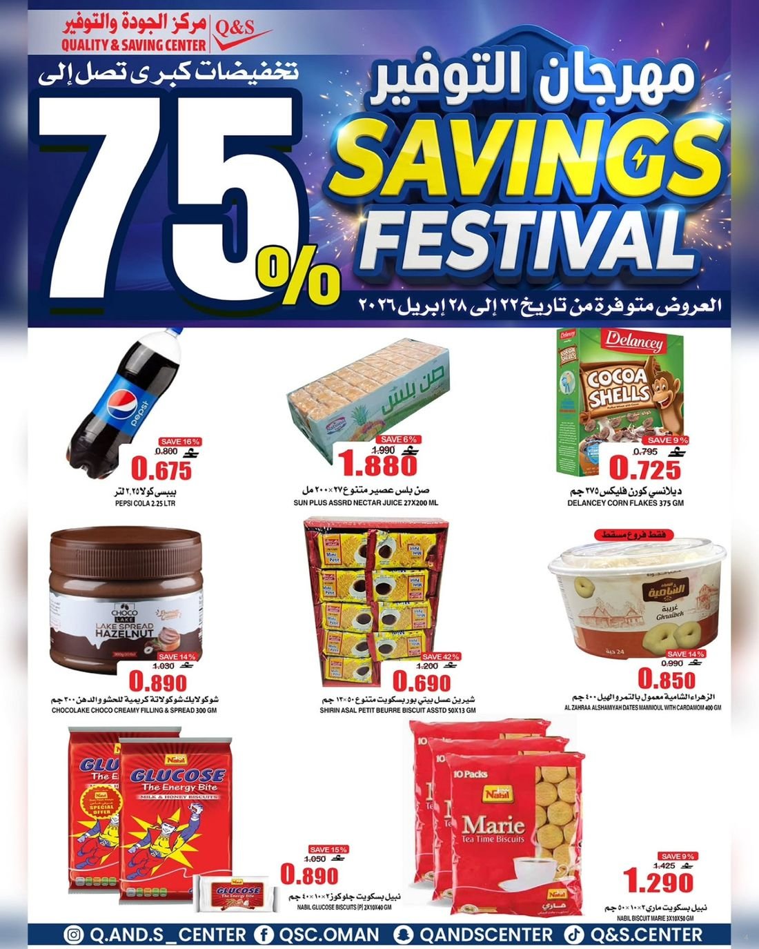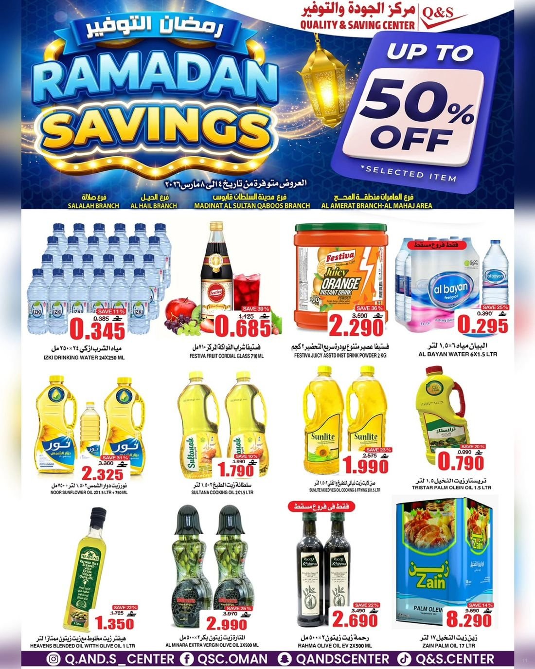 عروض الغذائيات ولوازم المنزل من مركز الجودة والتوفير Quality and Saving Center Amerat تشمل عروض مركز الجودة والتوفير مجموعة متنوعة من المواد الغذائية وحاجيا تالمنزل إضافة إلى بعض لوازم وحاجيات المنزل وبتنزيلات منافسة