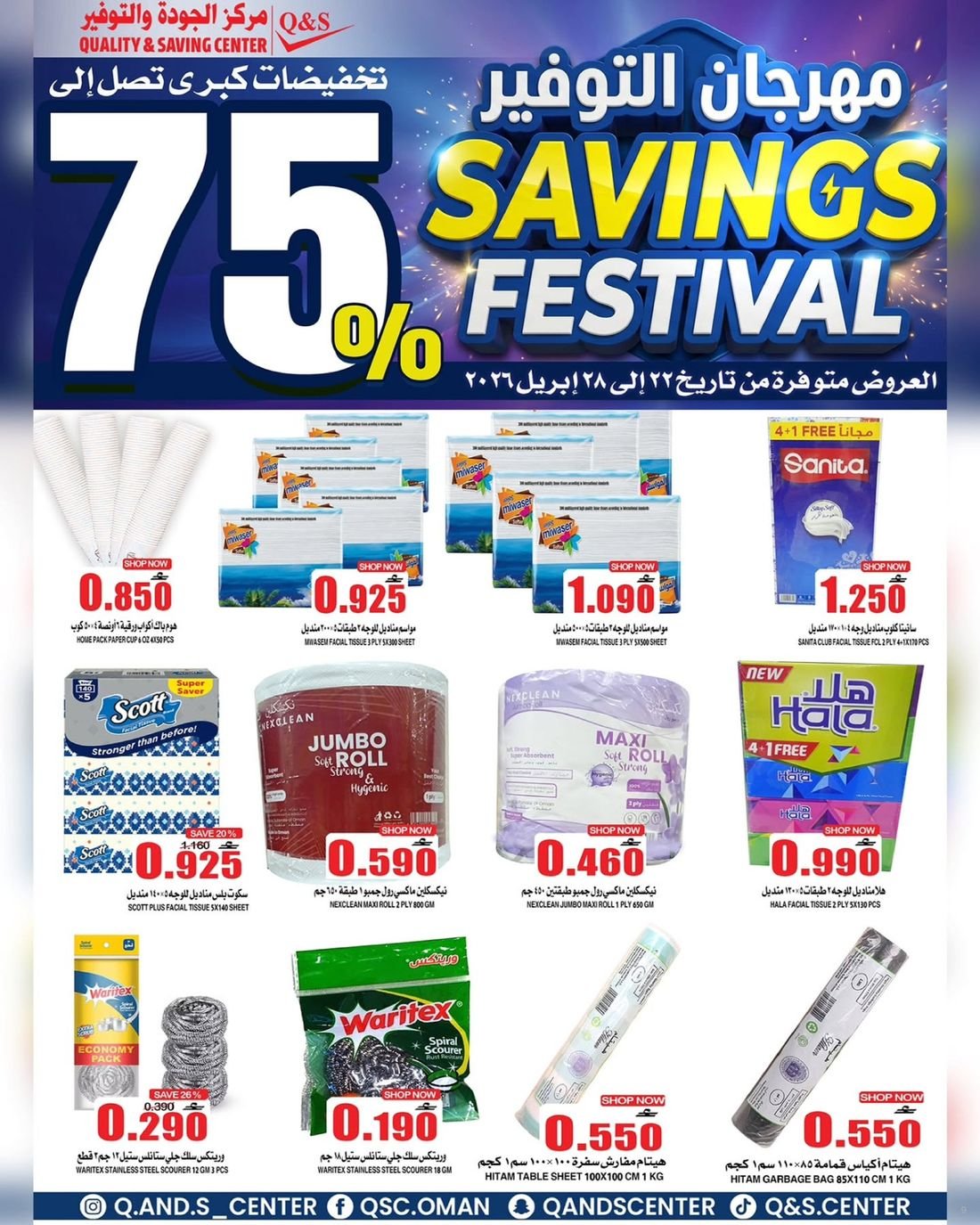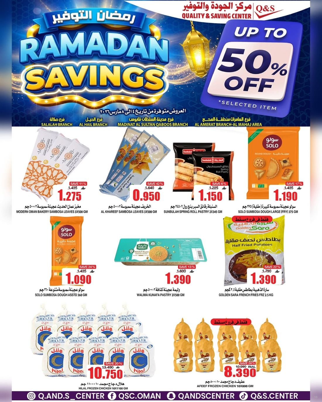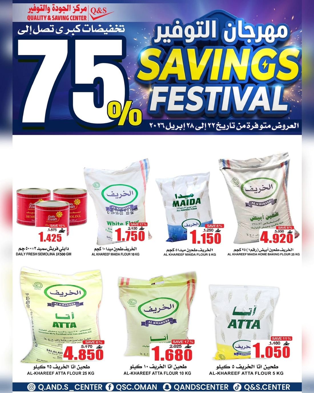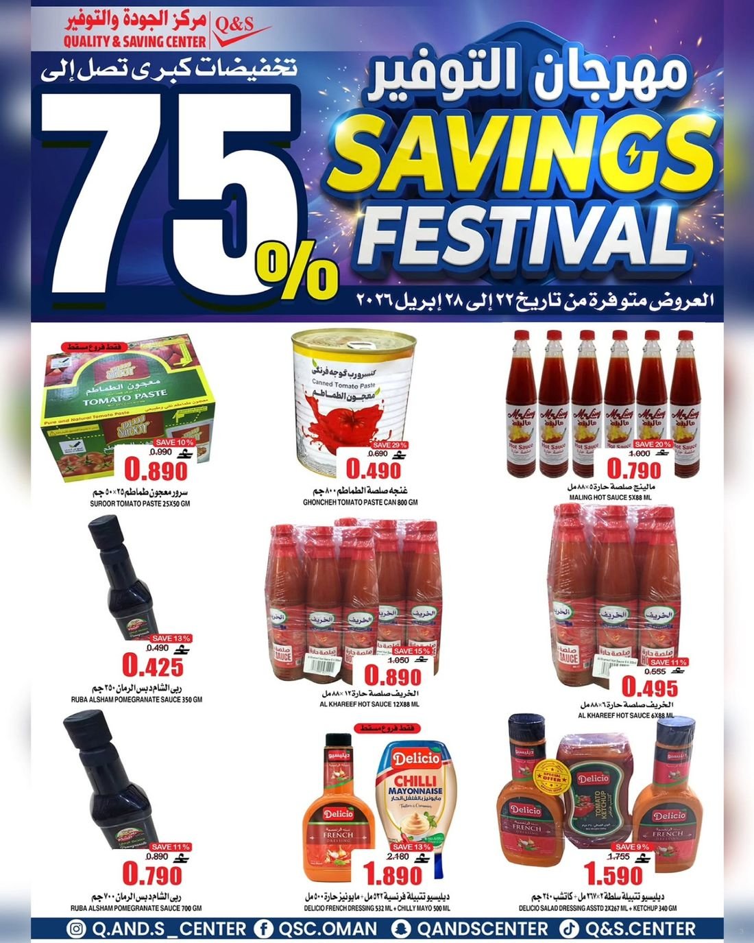عروض الغذائيات ولوازم المنزل من مركز الجودة والتوفير Quality and Saving Center Amerat تشمل عروض مركز الجودة والتوفير مجموعة متنوعة من المواد الغذائية وحاجيا تالمنزل إضافة إلى بعض لوازم وحاجيات المنزل وبتنزيلات منافسة