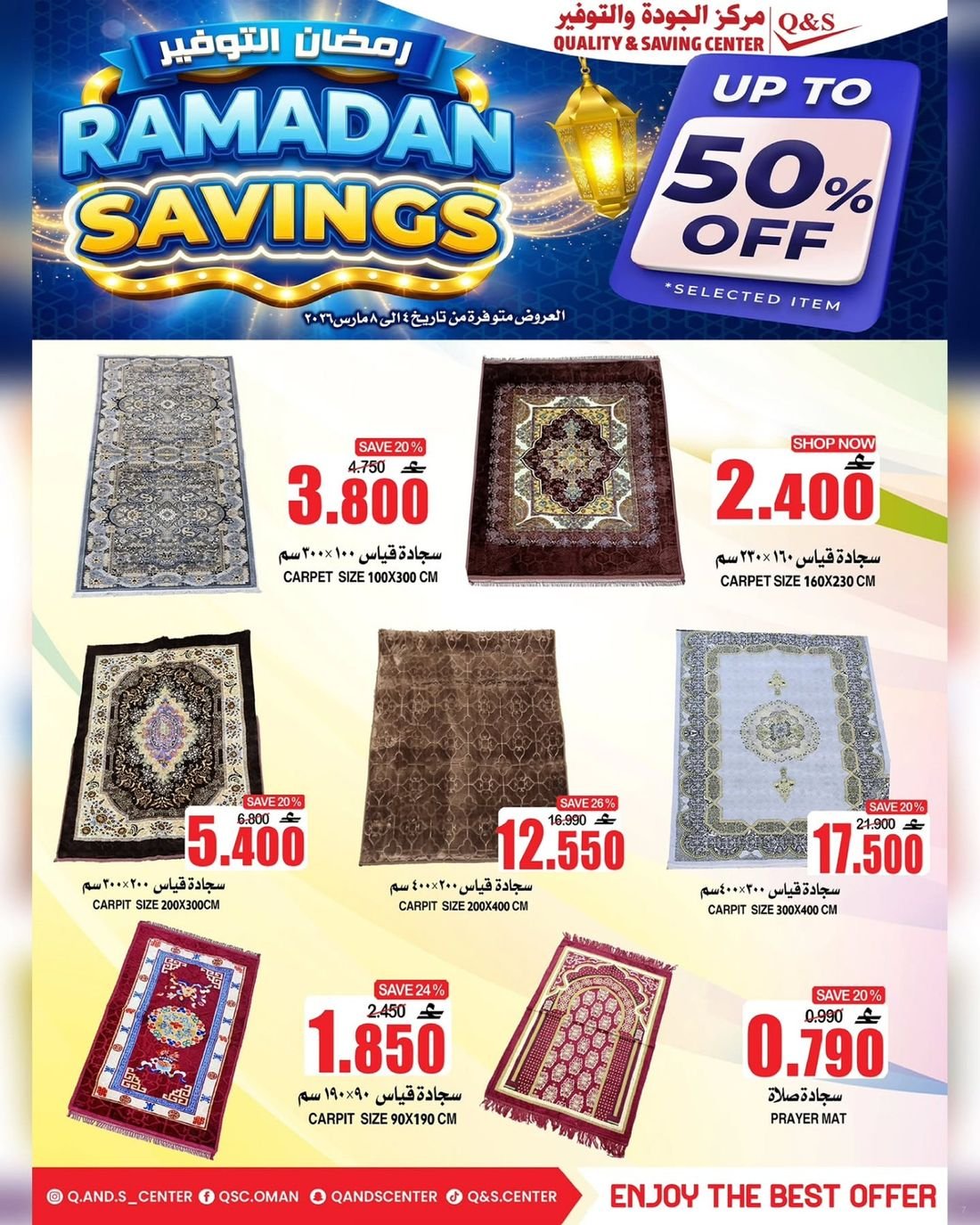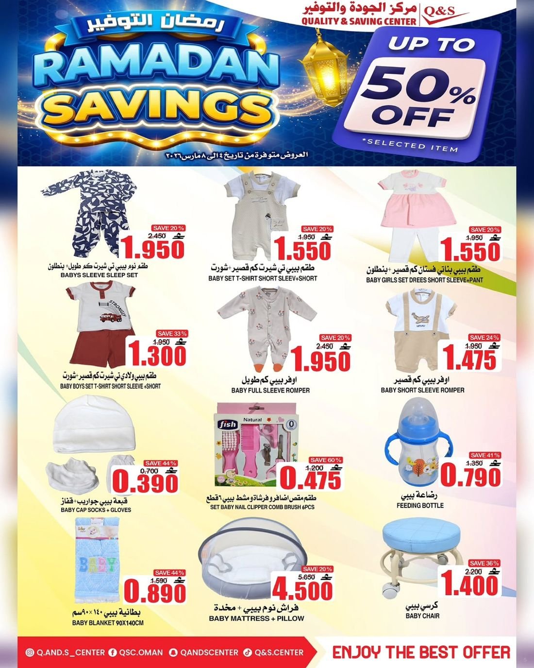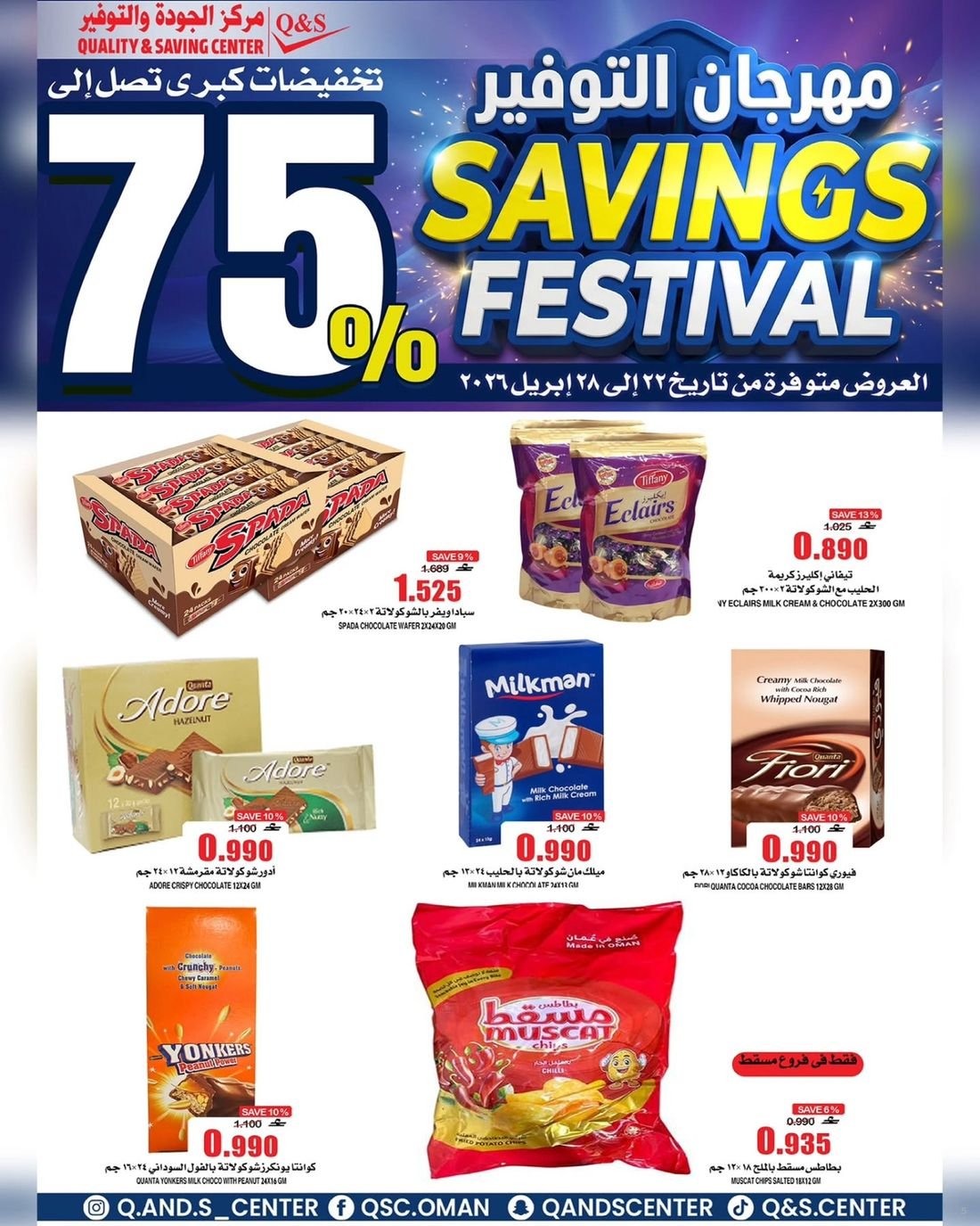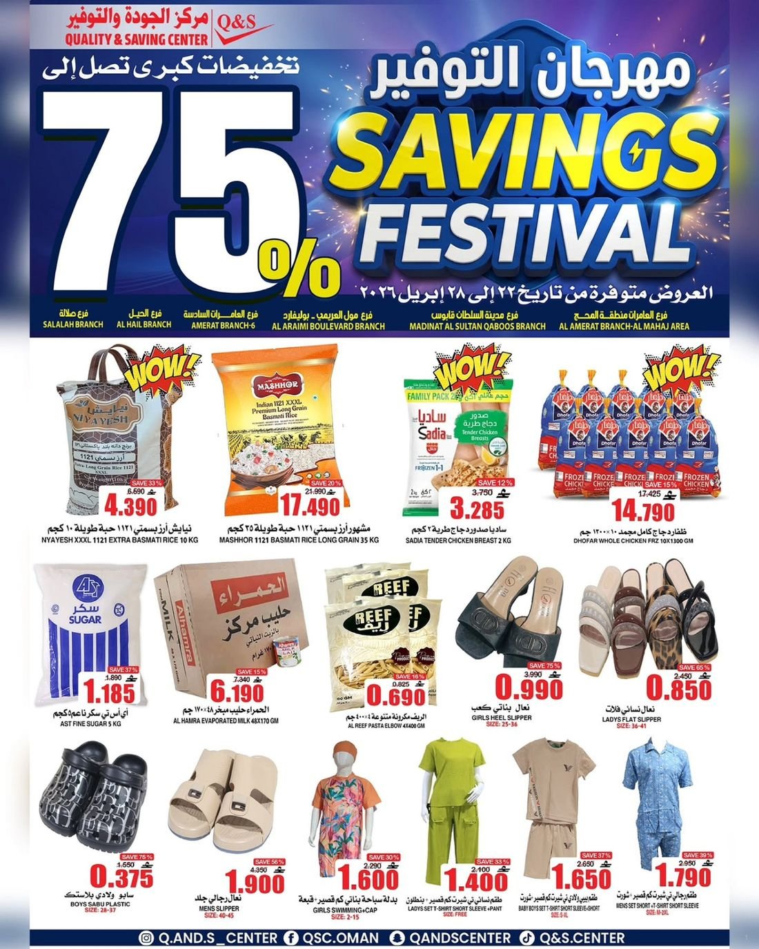 عروض الغذائيات ولوازم المنزل من مركز الجودة والتوفير Quality and Saving Center Amerat تشمل عروض مركز الجودة والتوفير مجموعة متنوعة من المواد الغذائية وحاجيا تالمنزل إضافة إلى بعض لوازم وحاجيات المنزل وبتنزيلات منافسة