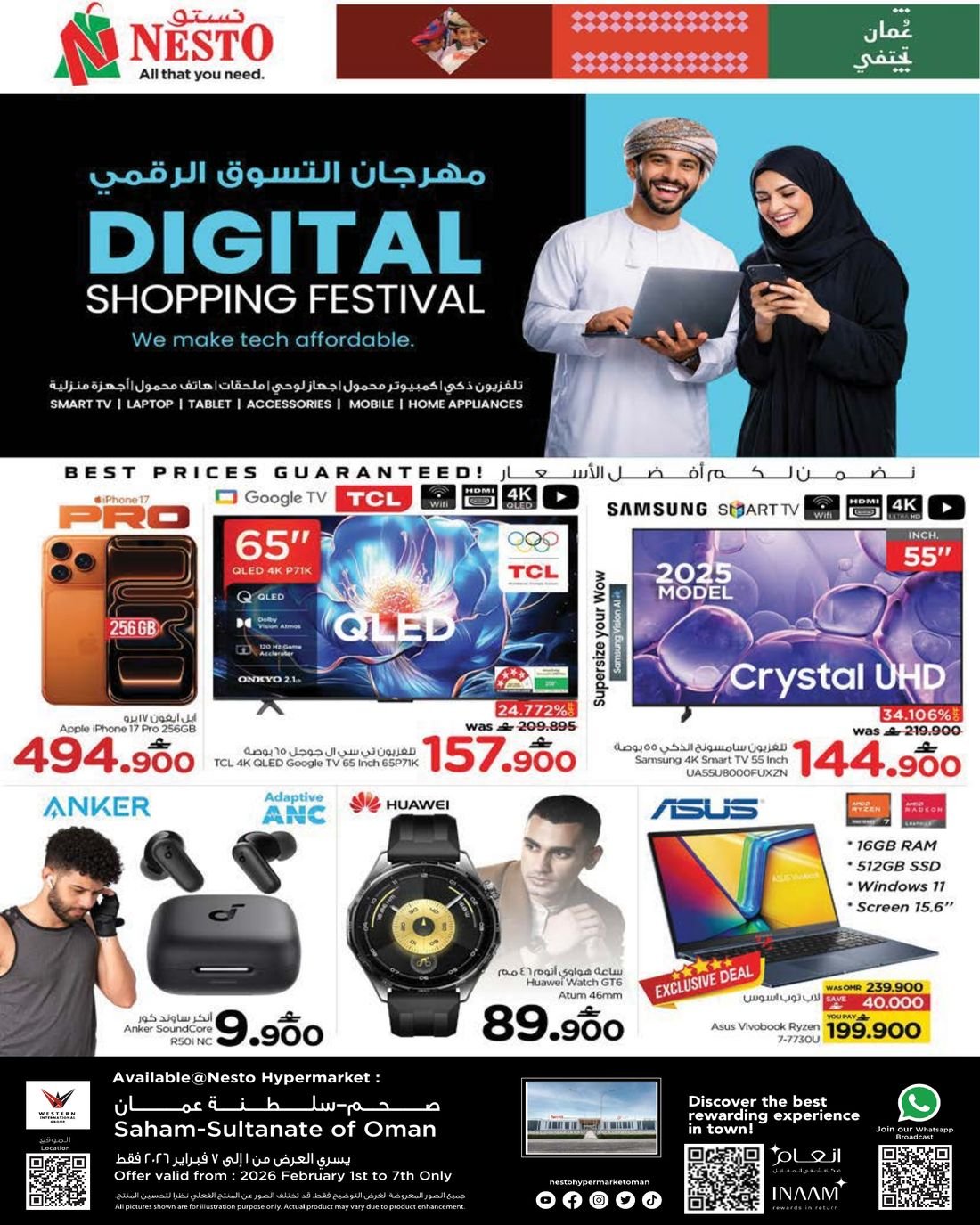 عروض الالكترونيات المتنوعة في ولاية صحم من نستو هايبر ماركت عمان ، يشمل العرض العديد من الاجهزة الالكترونية المتنوعة وبإسعار مخفضة ، زوروا الان نستو هايبرماركت صحم واستفيدوا من فرص العروض القيمة .