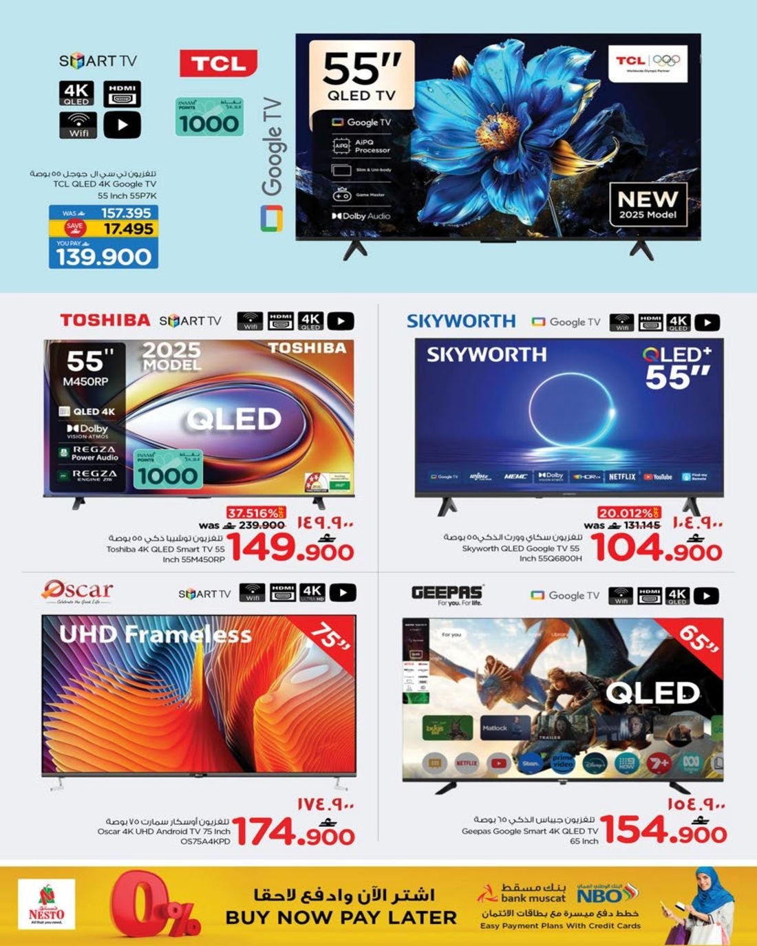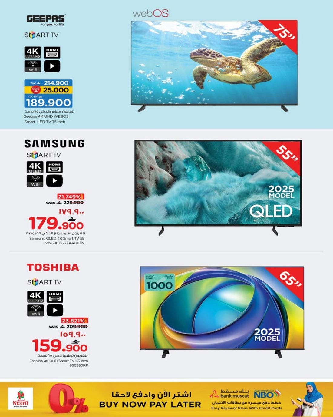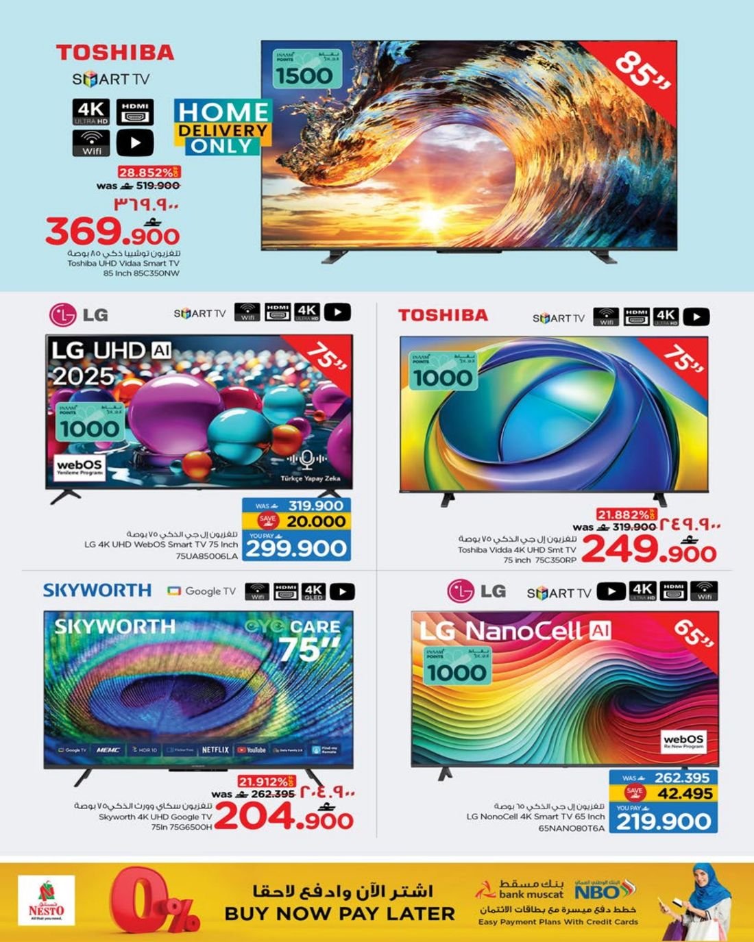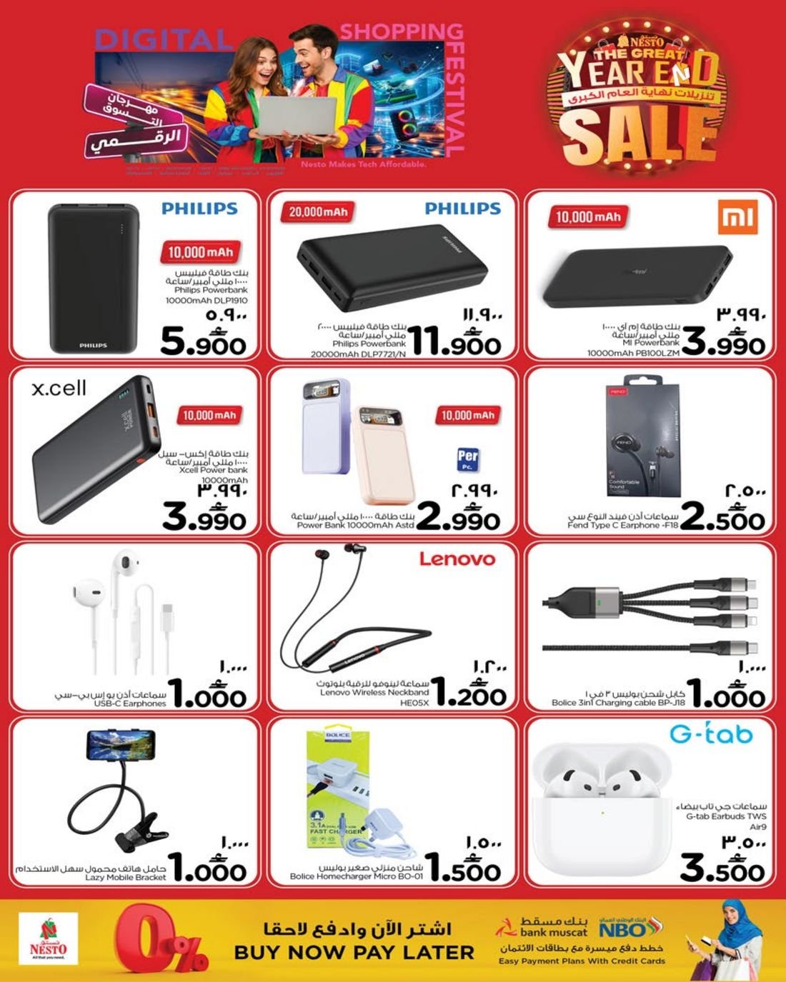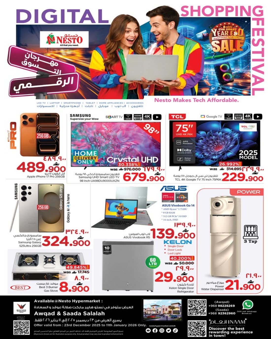 عروض الالكترونيات المتنوعة من نستو هايبر ماركت عمان فرع ولاية صلالة ، تسوق الان العديد من الاجهزة الالكترونية وبإسعار مخفضة من نستو هايبرماركت صلالة في عوقد والسعادة.