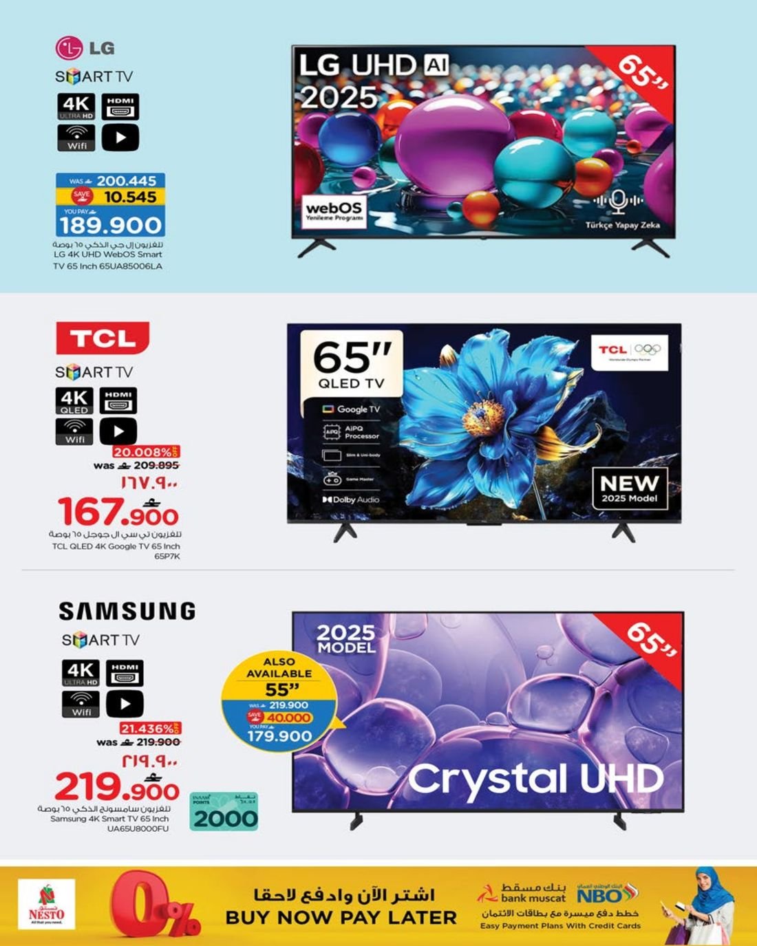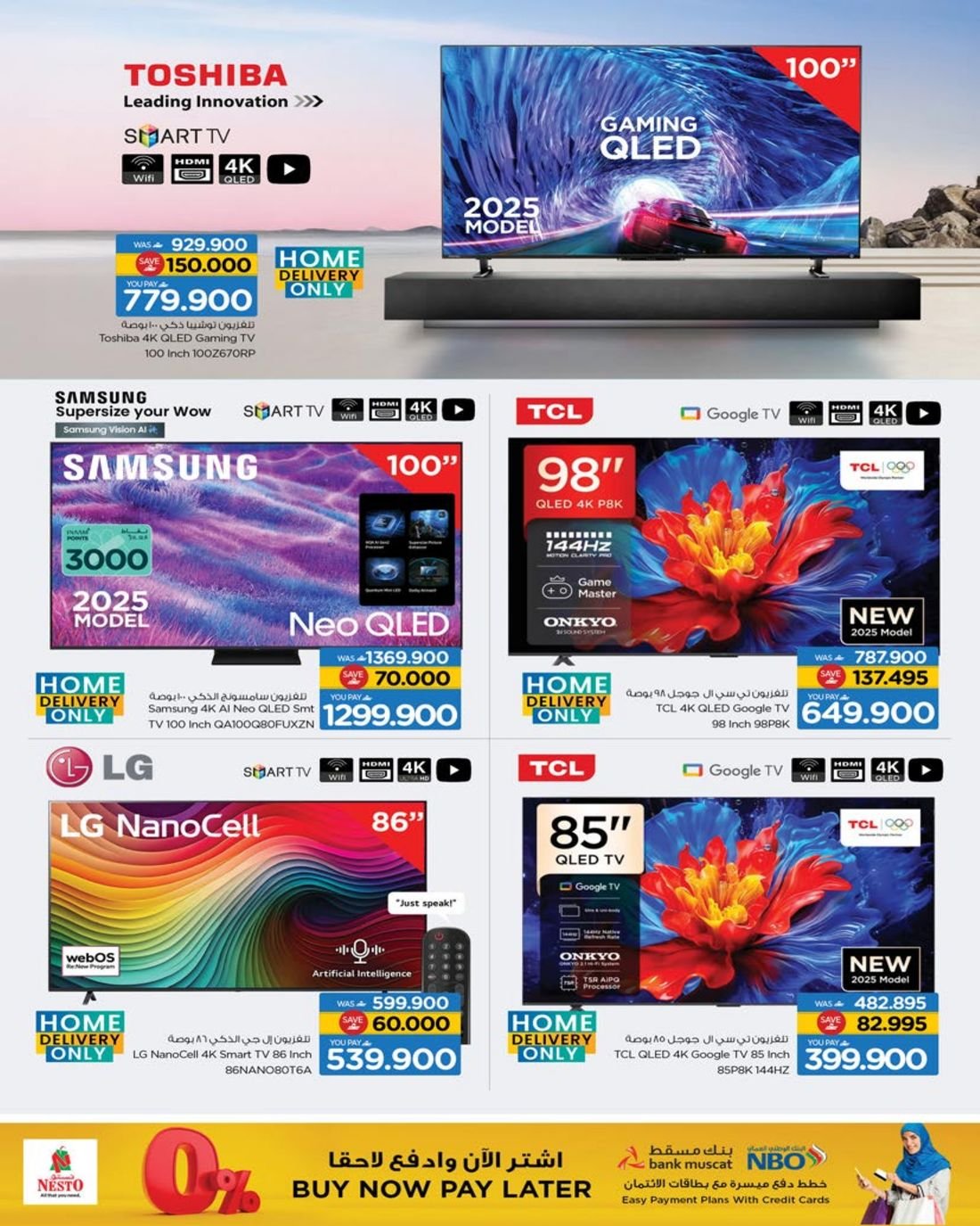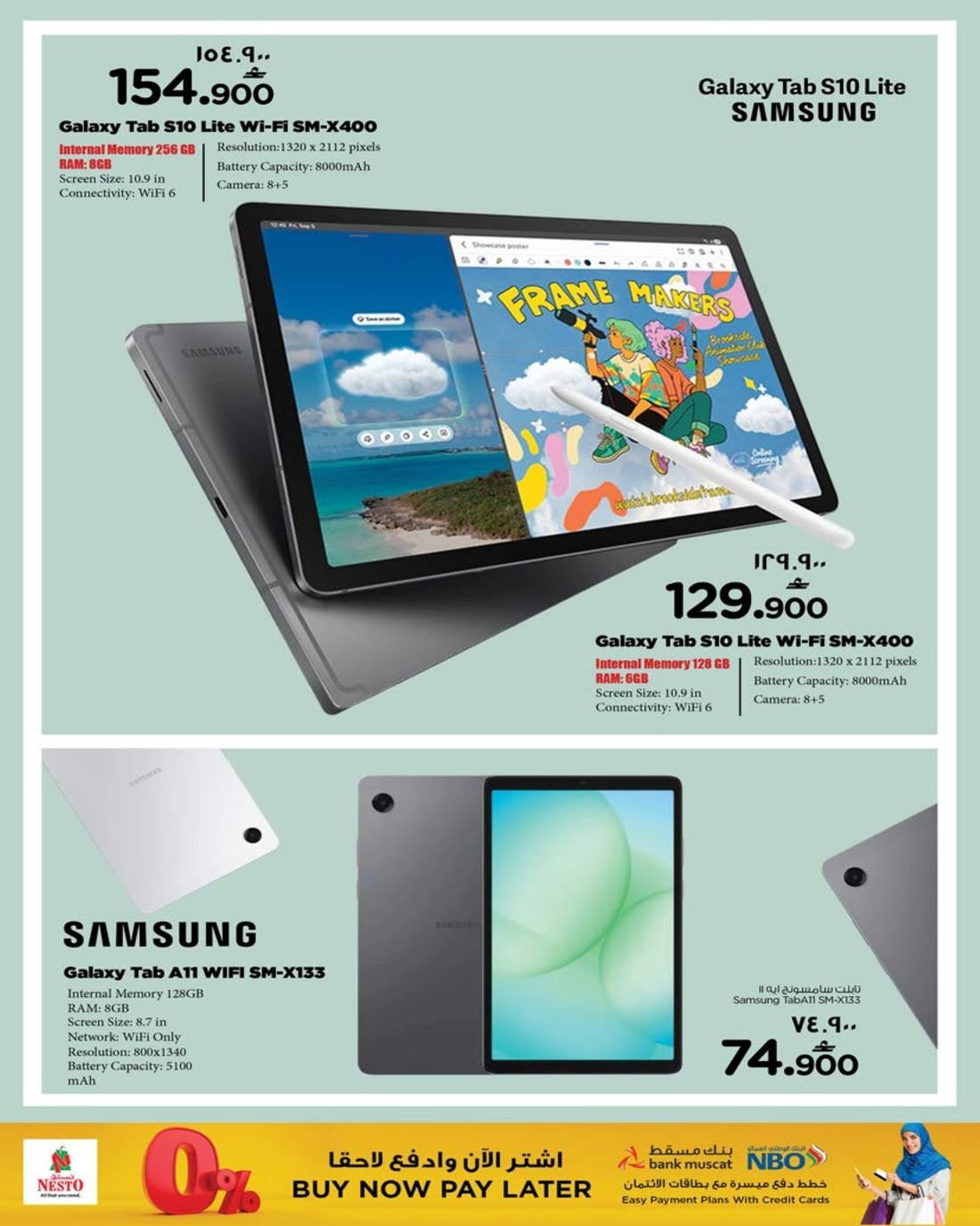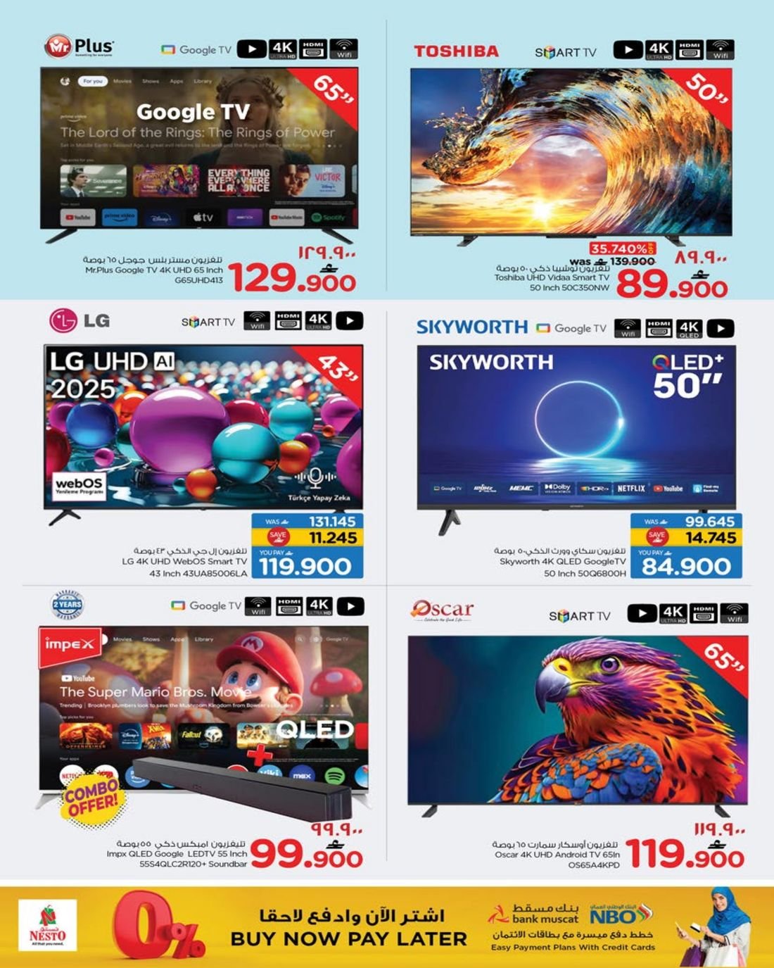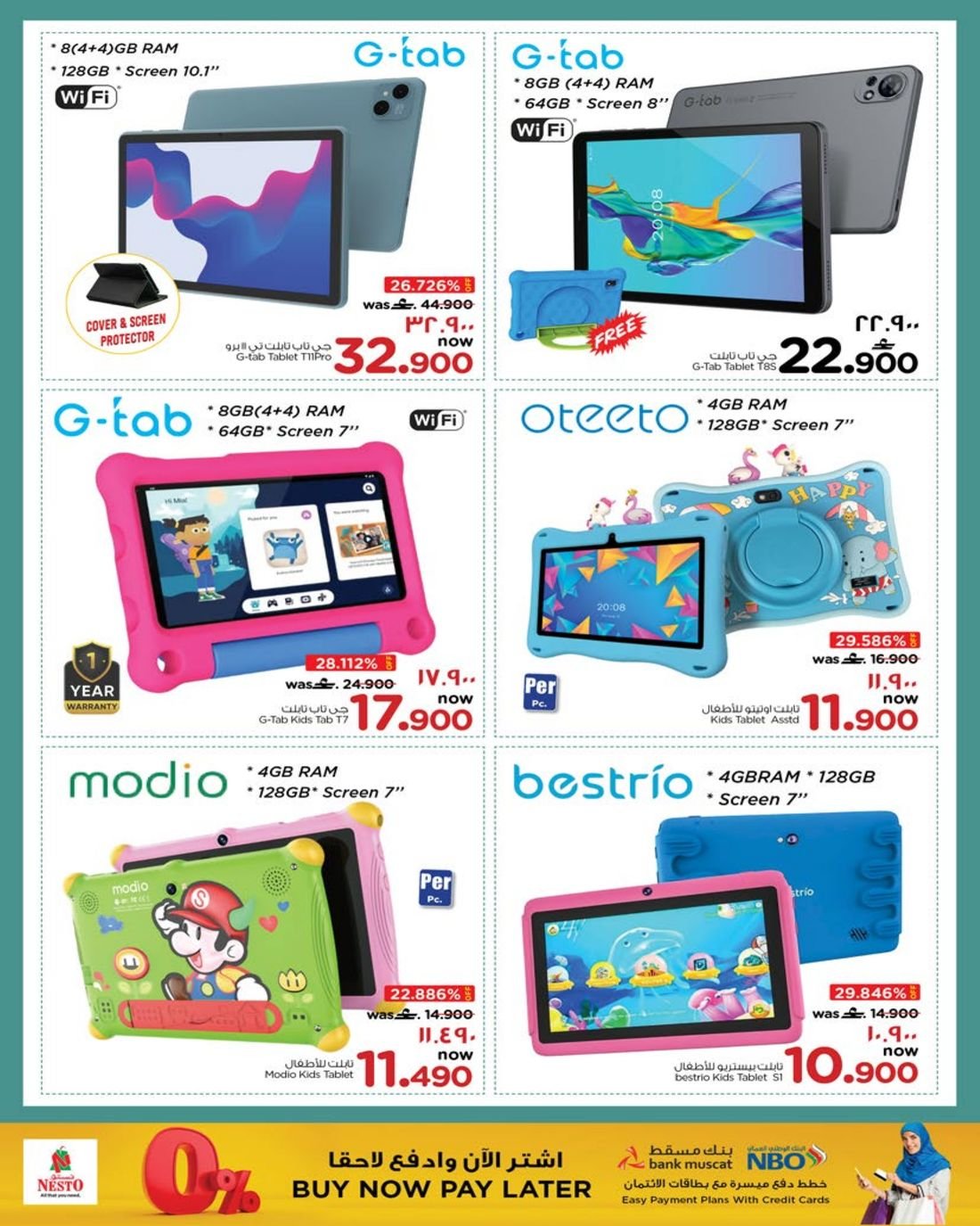 عروض الالكترونيات المتنوعة من نستو هايبر ماركت عمان فرع ولاية صلالة ، تسوق الان العديد من الاجهزة الالكترونية وبإسعار مخفضة من نستو هايبرماركت صلالة في عوقد والسعادة.