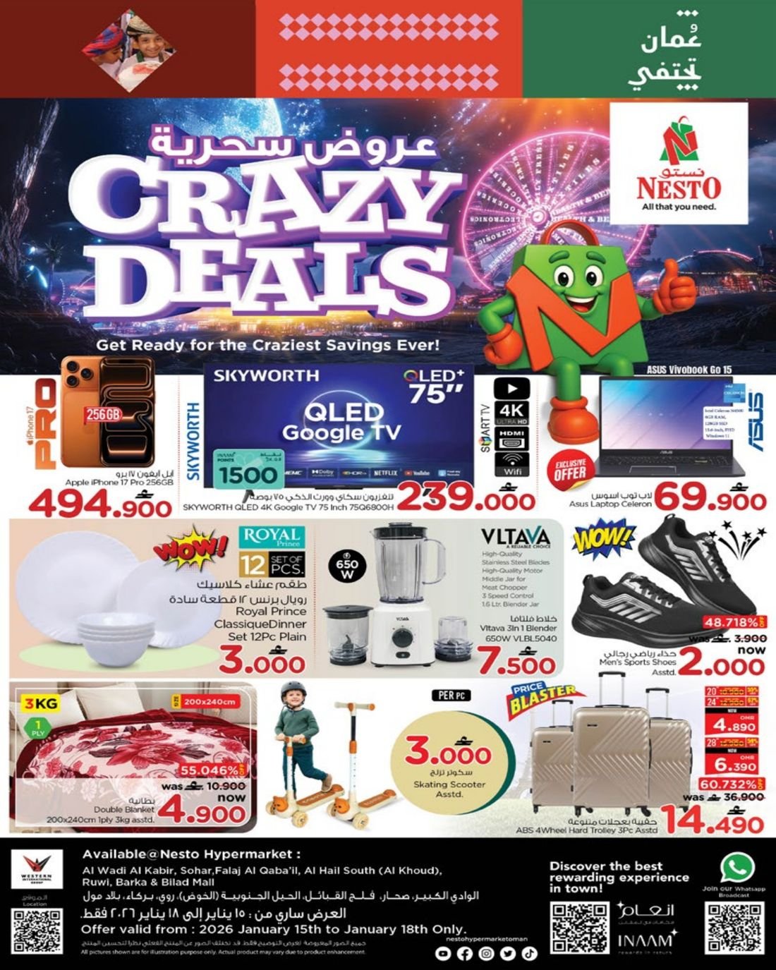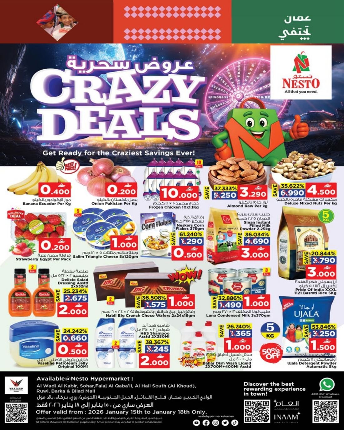 يقدم نستو المعبيلة وروي والخوض ووادي الكبير وصحار وبركاء وفلج القبائل عروض لوازم المنزل ، تسوق العديد من المواد الغذائية والمنتجات الطازجة وبإسعار مخفضة ،لاتدعو الفرصة تفوتكم وبادروا بالتوجه إلى نستو عمان .