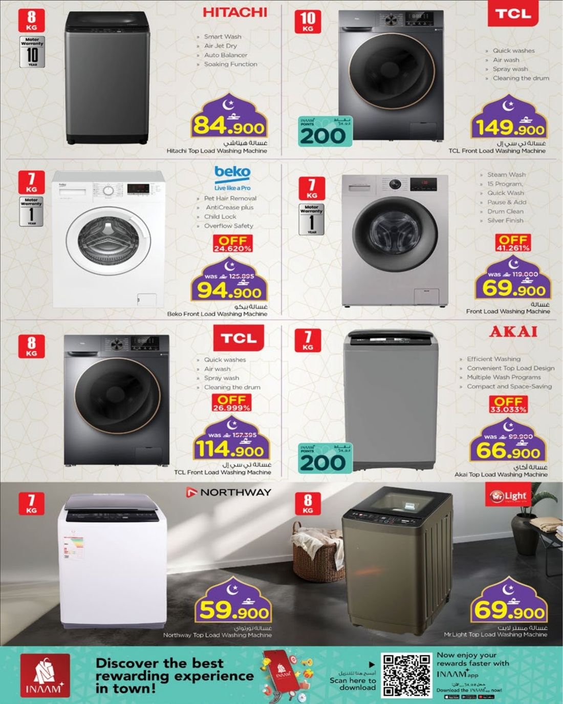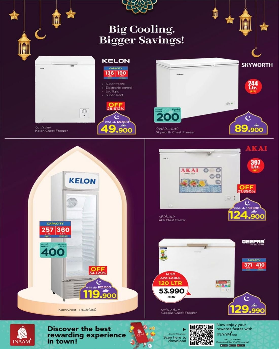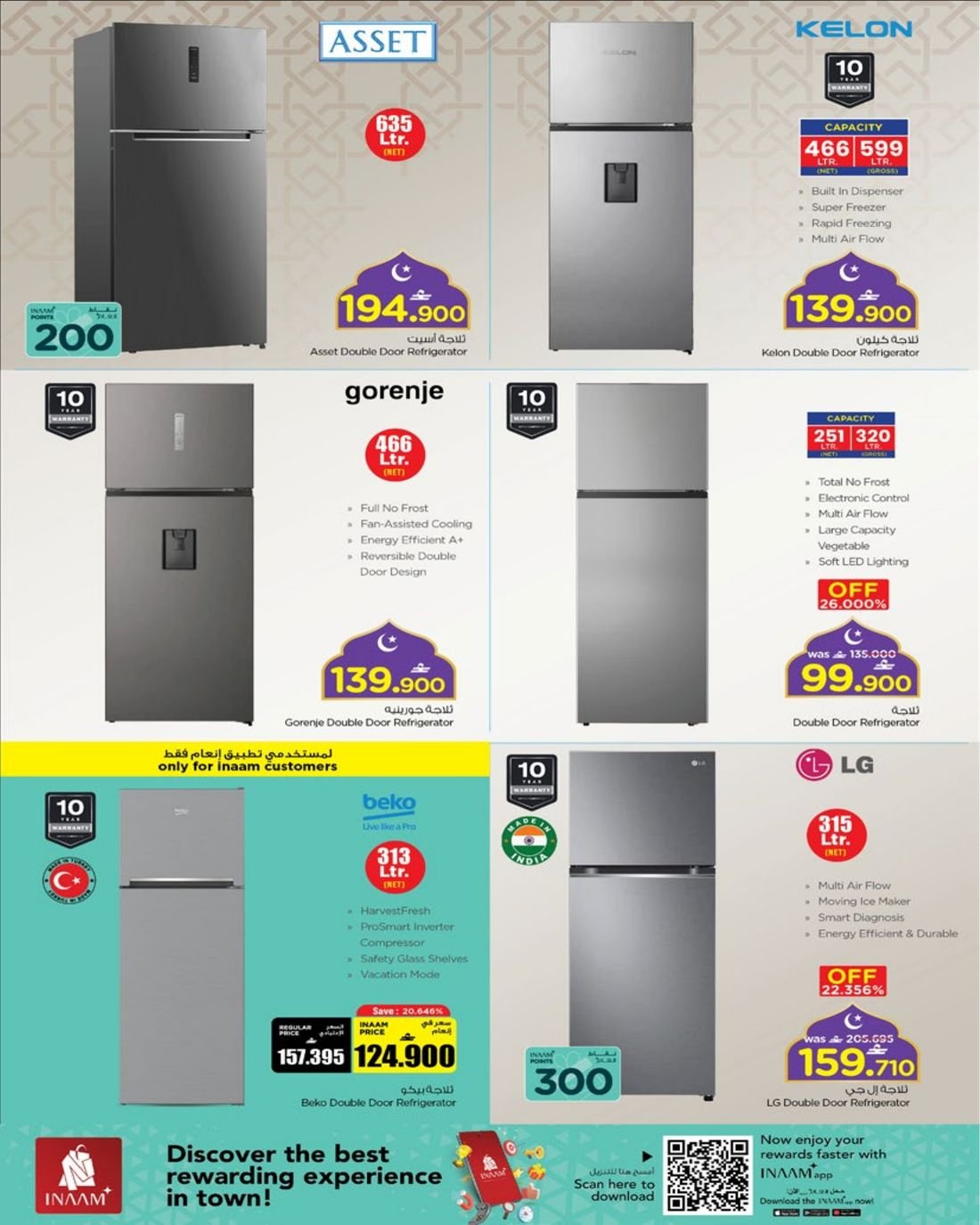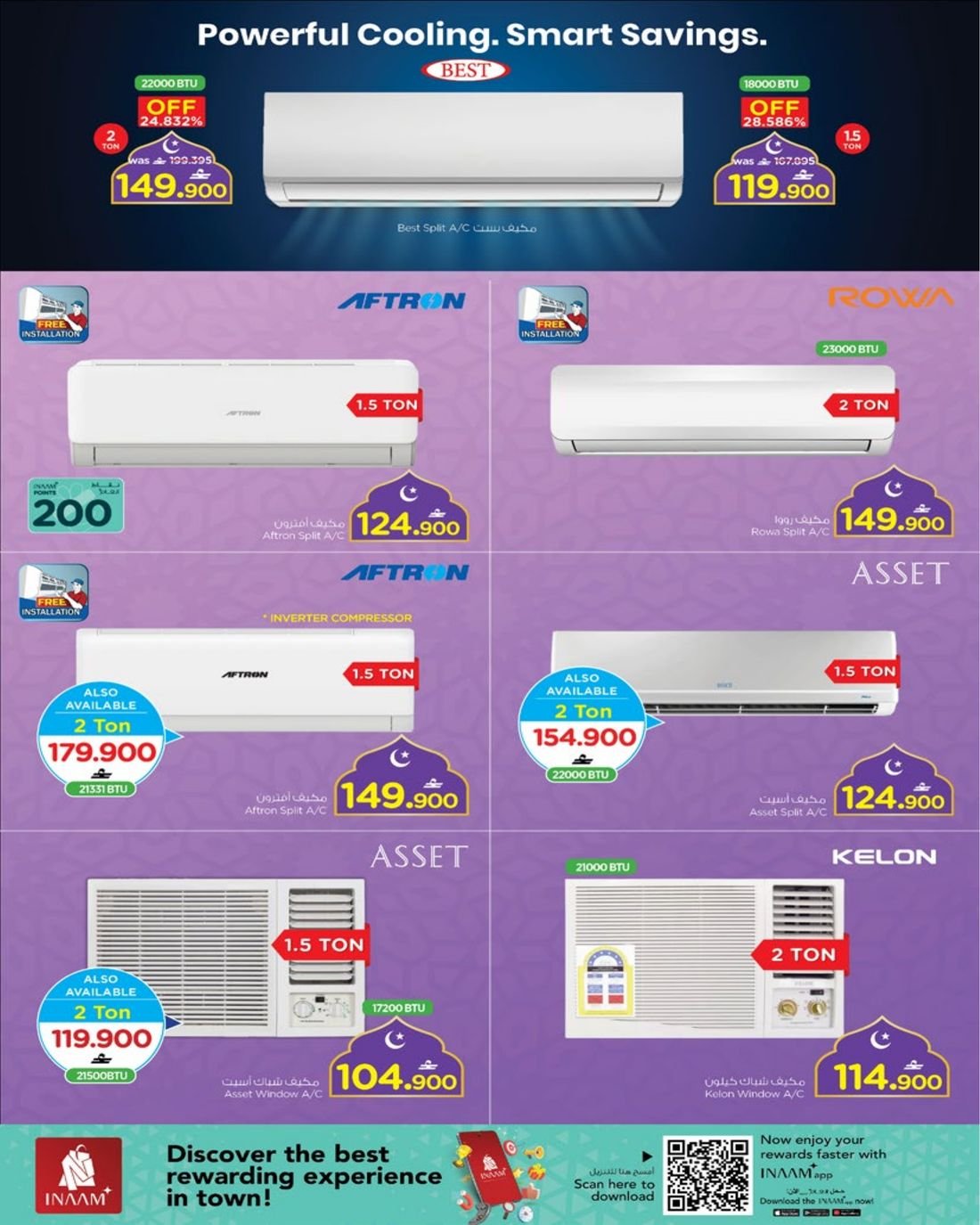 كما يشمل العرض ايضا تشكيلة واسعة من المكيفات من نوع سبليت وويندو بماركات متنوعة .