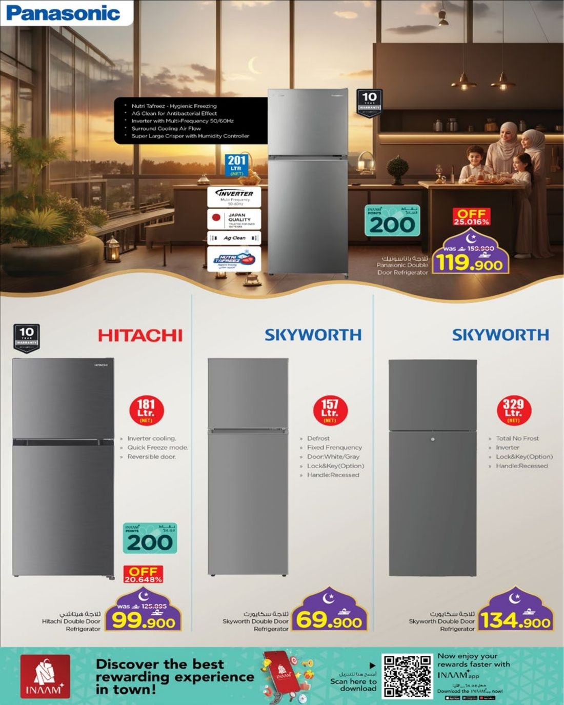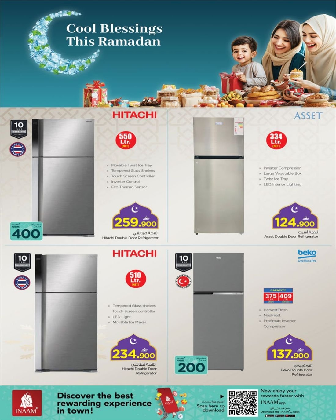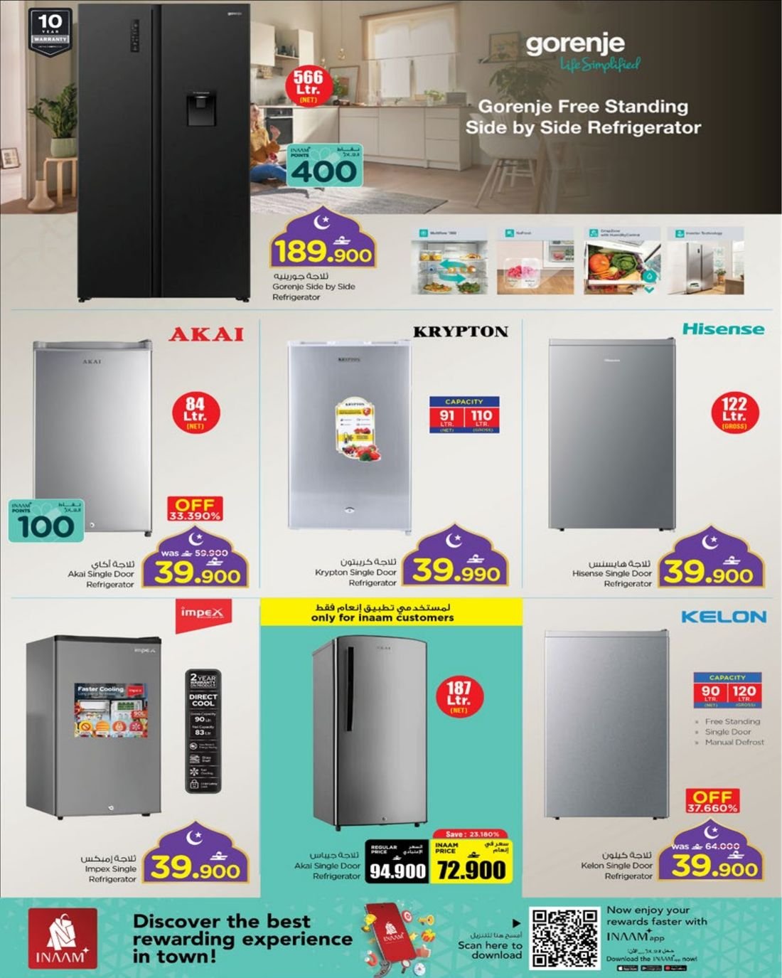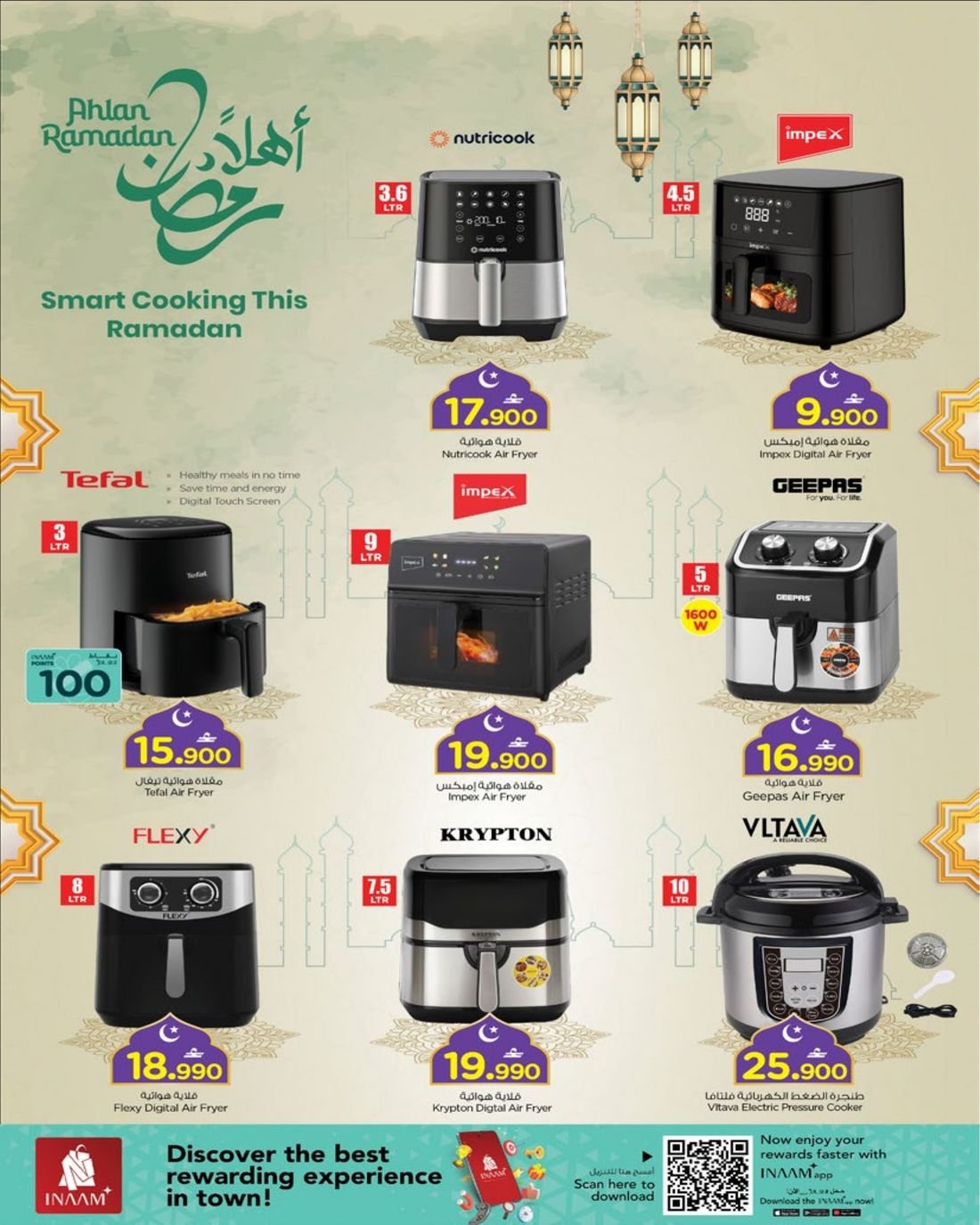 كما يشمل العرض ايضا تشكيلة واسعة من المكيفات من نوع سبليت وويندو بماركات متنوعة .