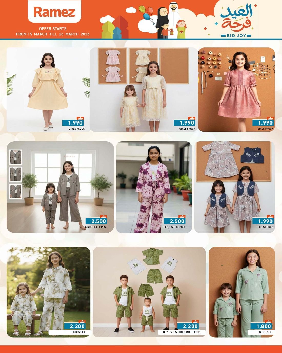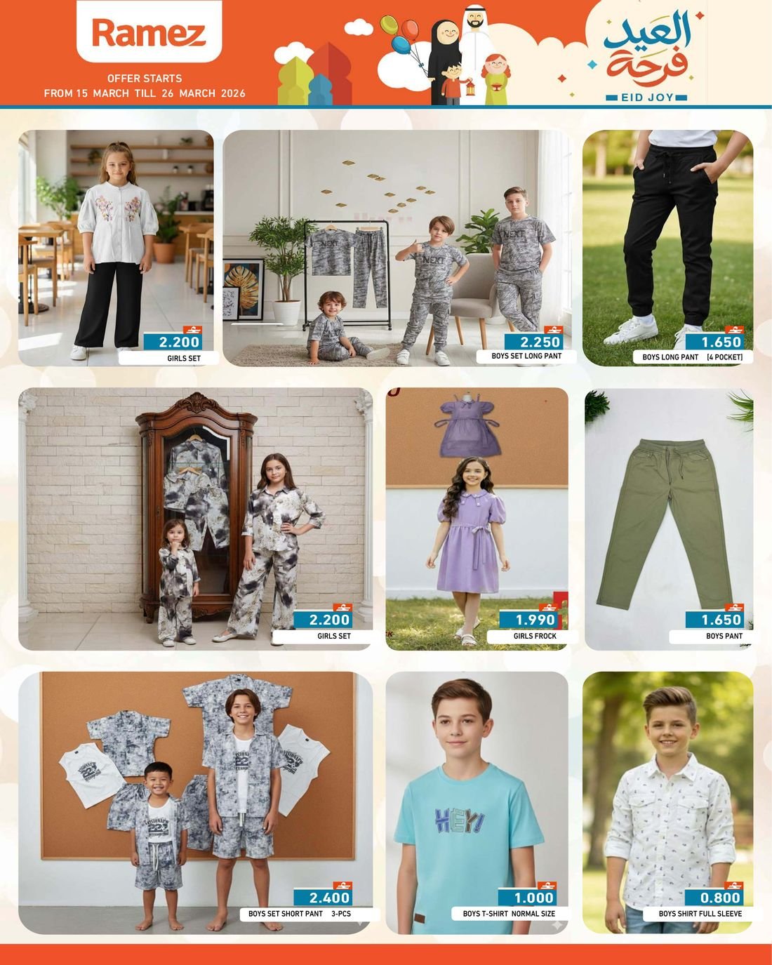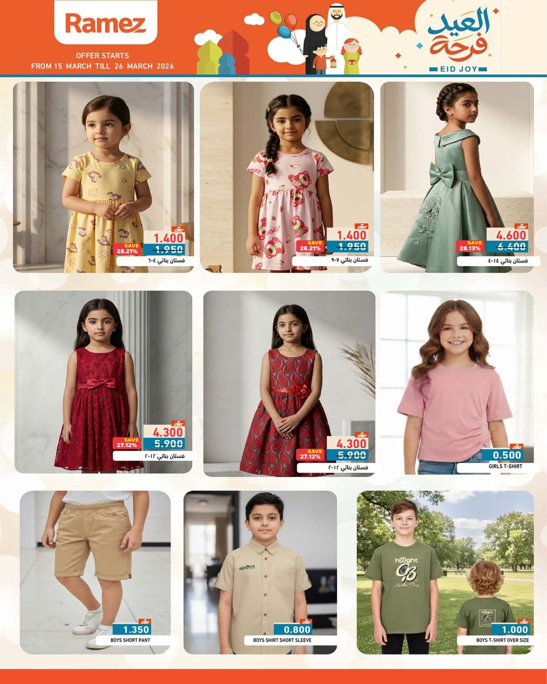 عروض الملابس المتنوعة من اسواق رامز عمان في جميع فروعه في السلطنة ، العروض تشمل ملابس الاطفال والملابس النسائية وبالوان واحجام مختلفة، تسوق الآن الملابس الجاهزة بمقاسات وموديلات مختلفة وبإسعار مخفضة من أسواق رامز عمان.