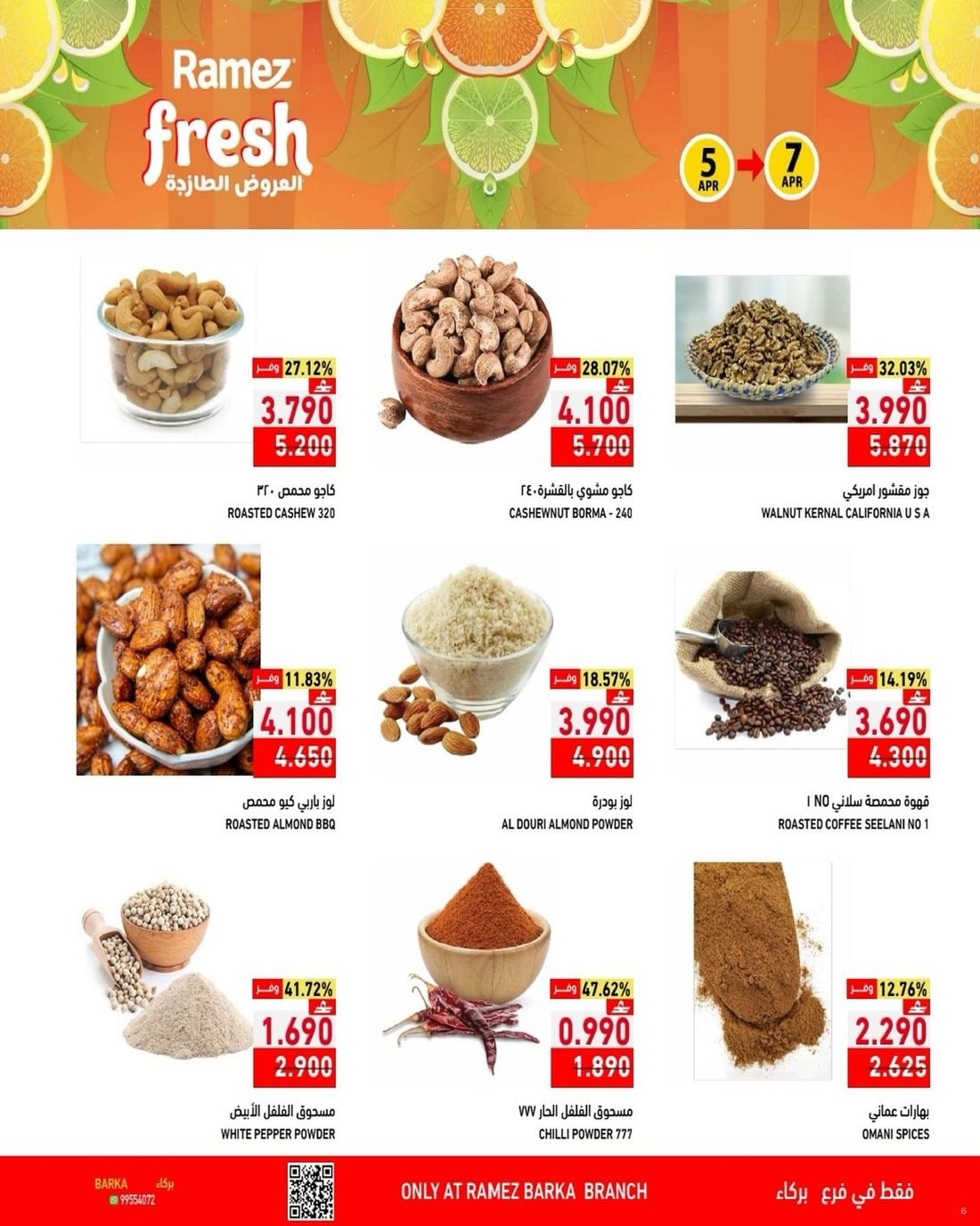 عروض الافتتاح المميزة من اسواق رامز فرع ولاية بركاء ، تسوق الان العديد من المنتجات الغذائية الطازجة اضافة الى المواد الغذائية المتنوعة ضمن عروض رامز في بركاء كما تشمل العروض المنظفات واداوت التنظيف بانواعها والاواني المنزلية ومستلزمات المطبخ .