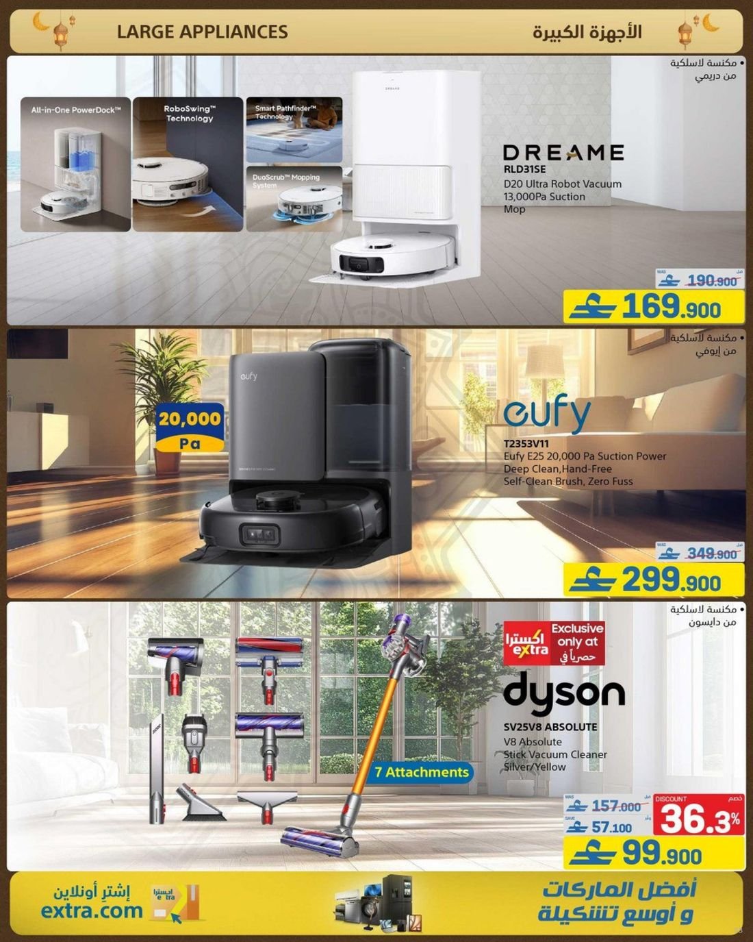 إذا كنت تبحث عن تحسين منزلك بأحدث الأجهزة المنزلية الذكية، فإن اكسترا تقدم عروضاً مميزة على المكيفات والثلاجات والغسالات والمكانس الكهربائية والمزيد. هذه العروض تضمن لك توفير المال مع الاستفادة من الأجهزة التي تجعل حياتك اليومية أكثر راحة وسهولة.
