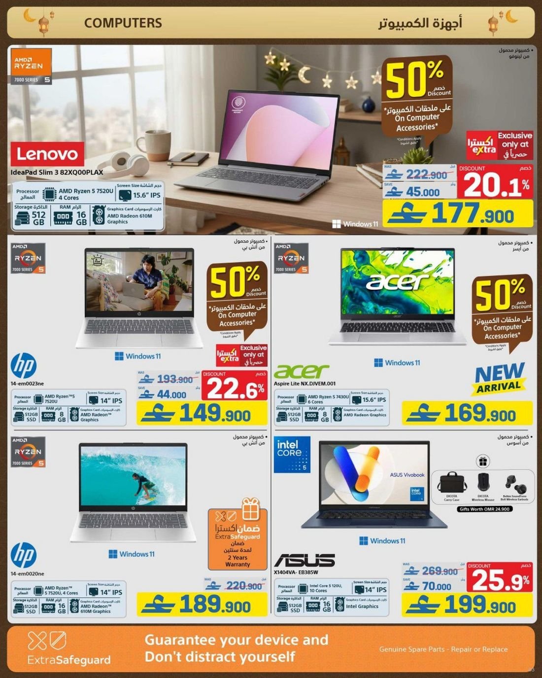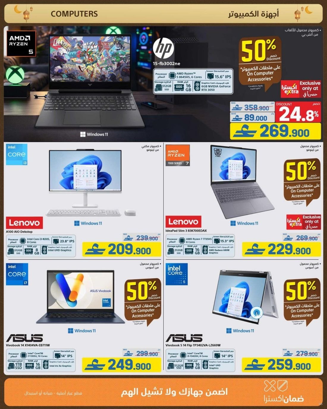 ولعشاق الألعاب، توفر اكسترا تخفيضات خاصة على أجهزة الألعاب وإكسسواراتها، مما يجعل من السهل تجهيز نفسك بتجربة لعب غامرة. كما تتضمن العروض أجهزة الكمبيوتر المحمولة من الشركات العالمية الموثوقة مثل ديل وإتش بي، مما يساعد الطلاب والمهنيين على العمل بكفاءة أكبر.