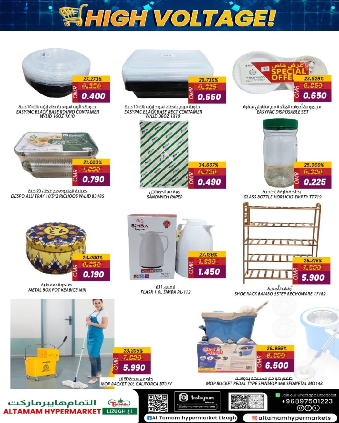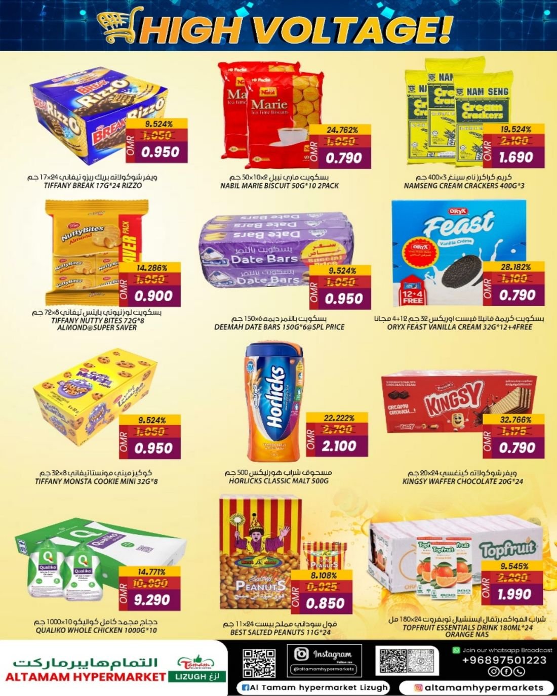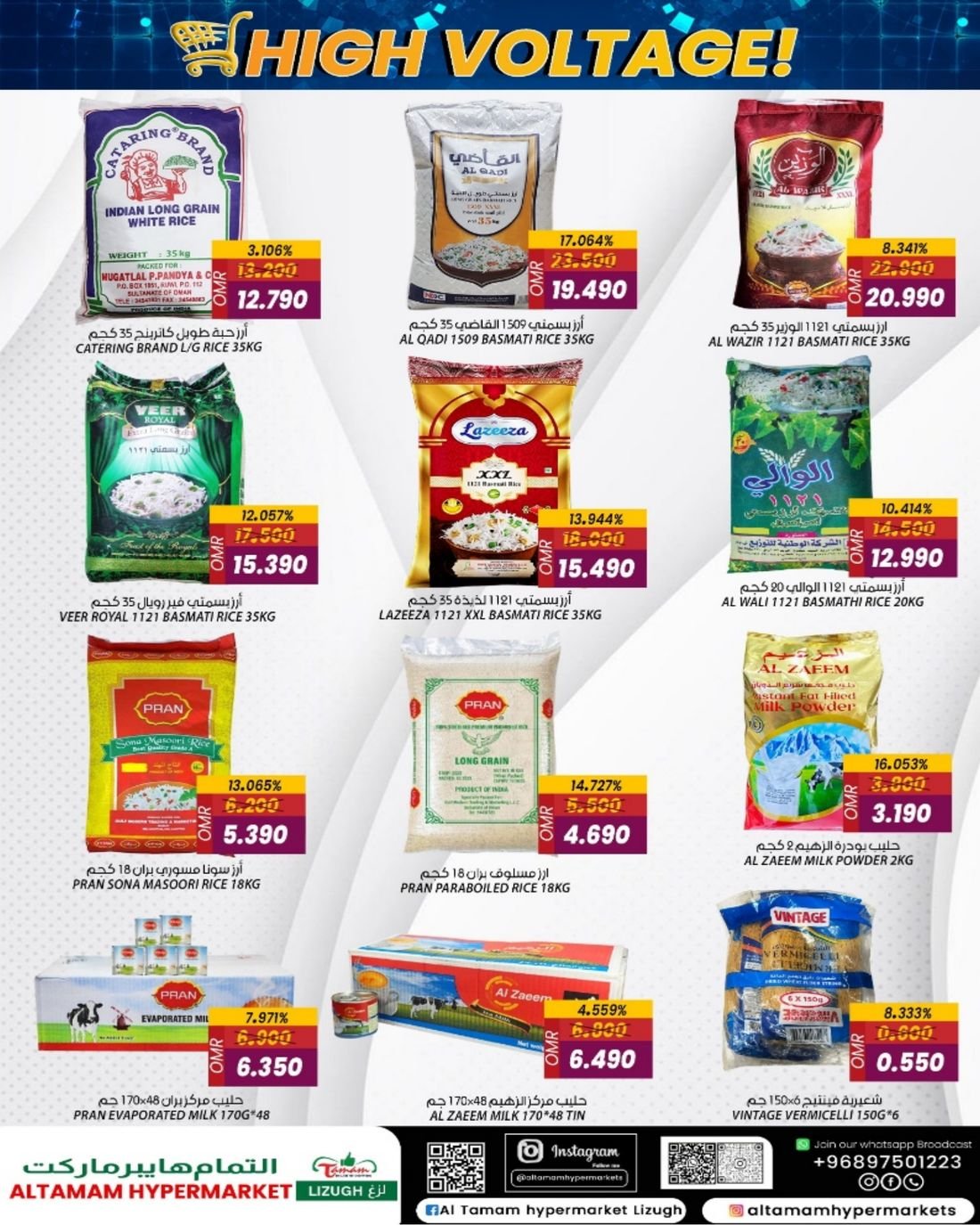 عروض الغذائيات والالكترونيات ولوازم المنزل من التمام هايبر ماركت ولاية سمائل لزغ ، تخفيضات كبرى من التمام ماركت تشمل المواد الغذائية المتنوعة ولوازم وحاجيات المنزل المتنوعة والاجهزة المنزلية الحديثة . .