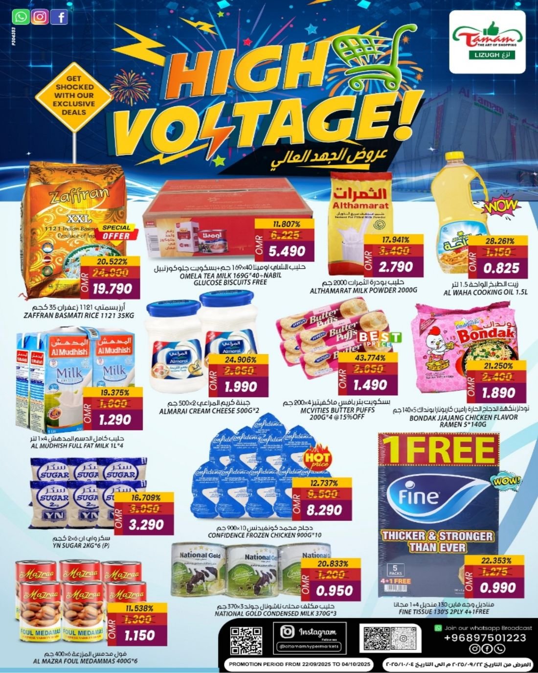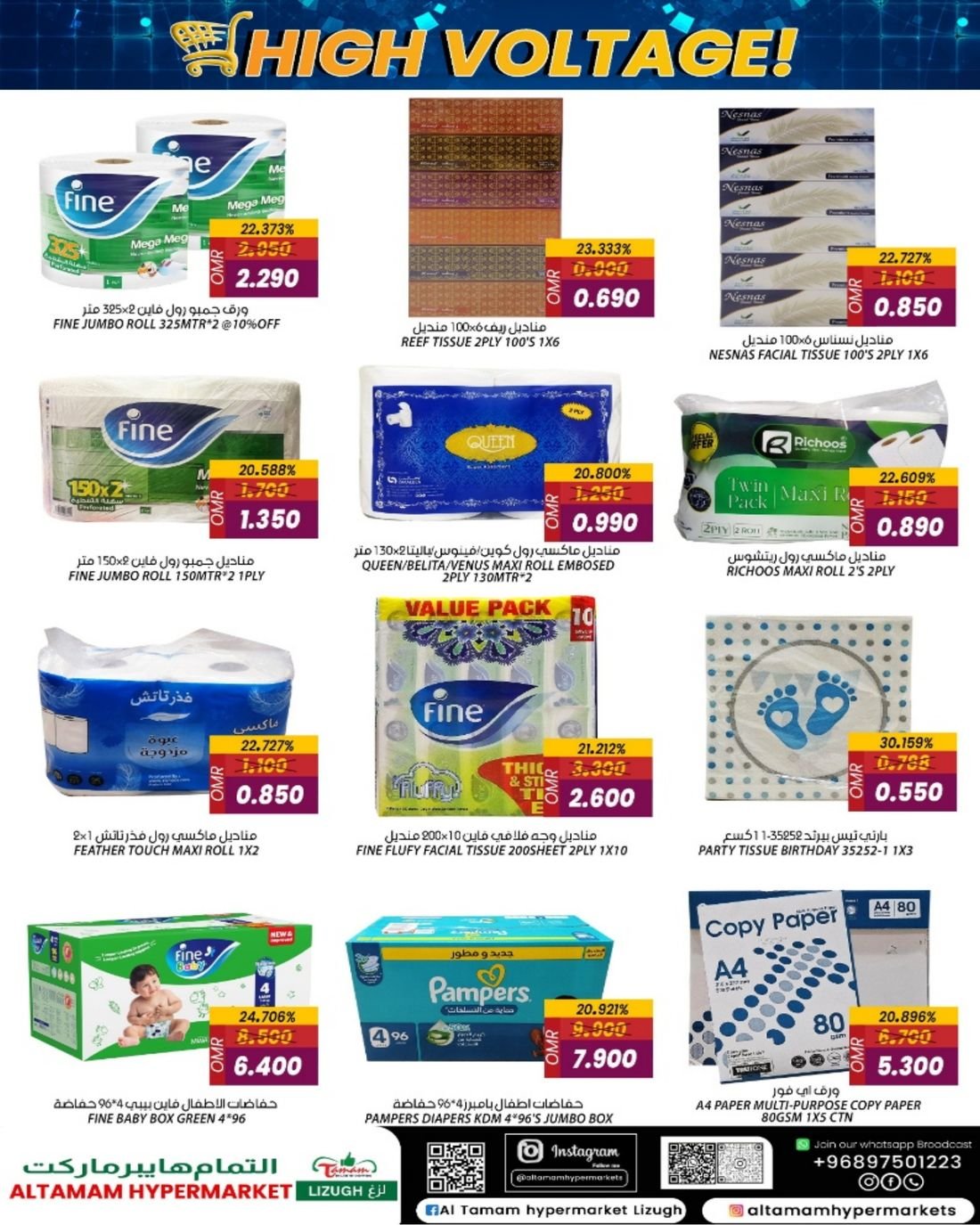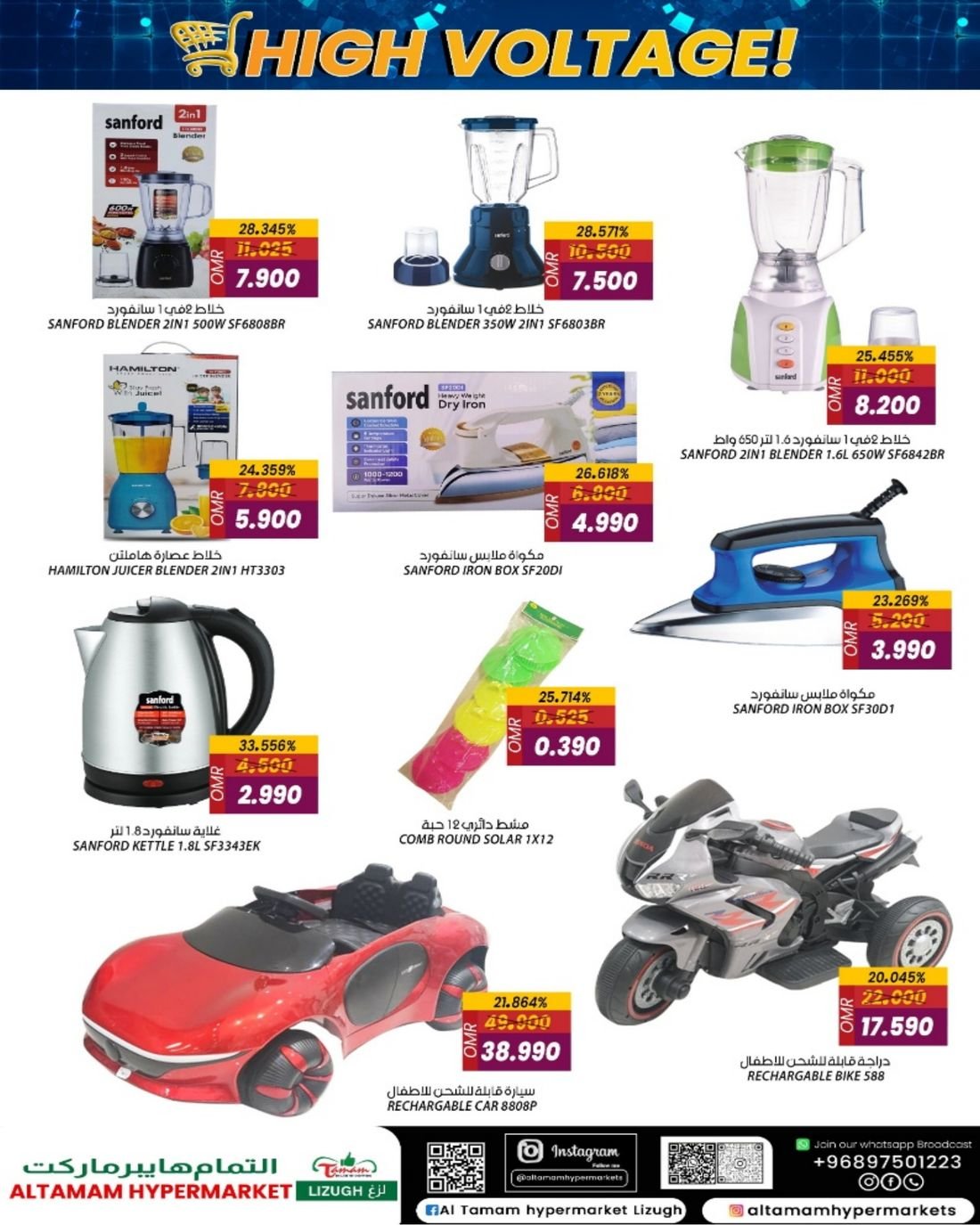 عروض الغذائيات والالكترونيات ولوازم المنزل من التمام هايبر ماركت ولاية سمائل لزغ ، تخفيضات كبرى من التمام ماركت تشمل المواد الغذائية المتنوعة ولوازم وحاجيات المنزل المتنوعة والاجهزة المنزلية الحديثة . .