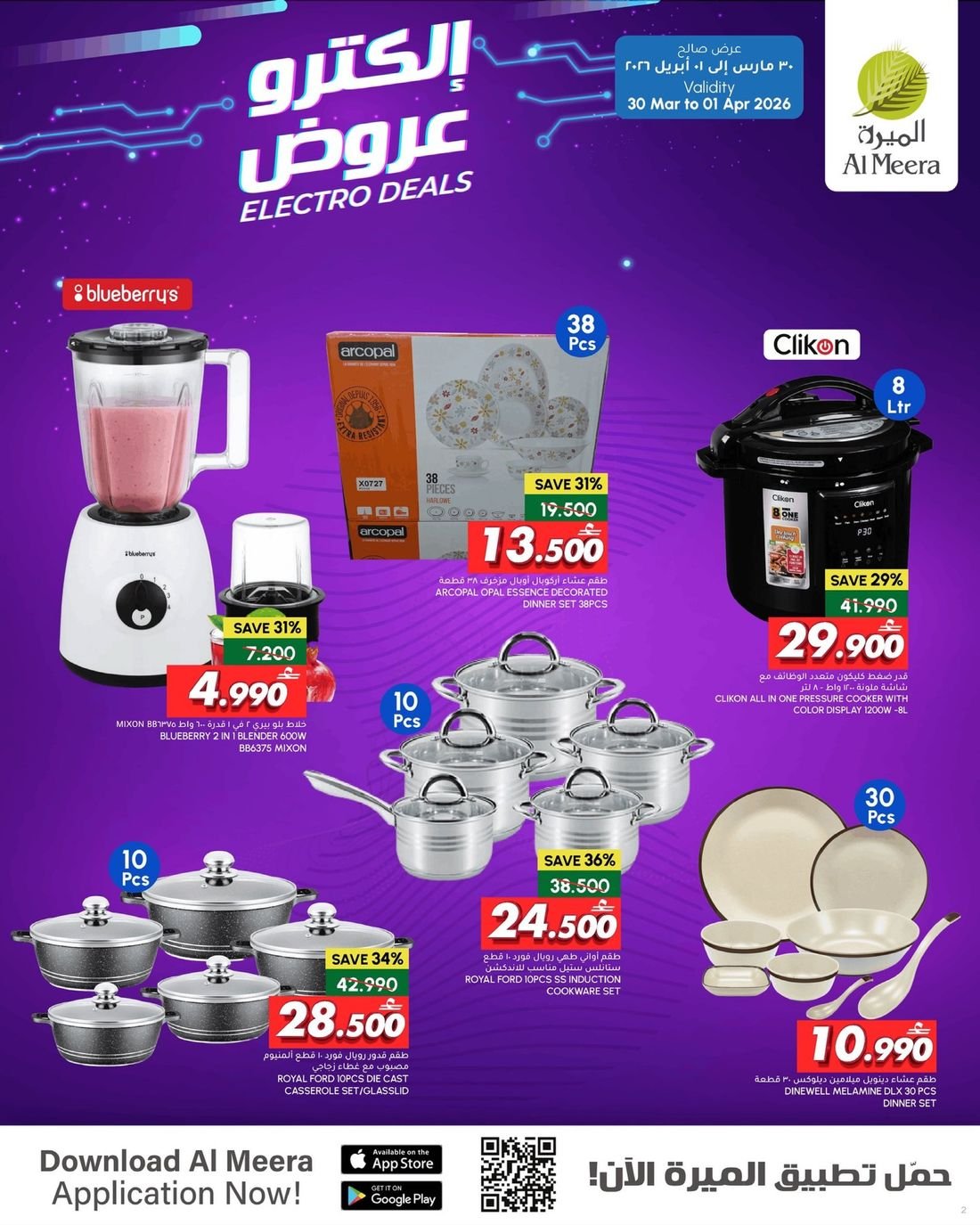 عروض الاواني والاجهزة المنزلية المتنوعة مقدمة من الميرة ماركت عمان في فروع محددة في السلطنة ، تسوق الان العديد من اواني المطبخ بانواعها والالكترونيات المتنوعة وبإسعار مخفضة ضمن تخفيضات الميرة ماركت عمان .