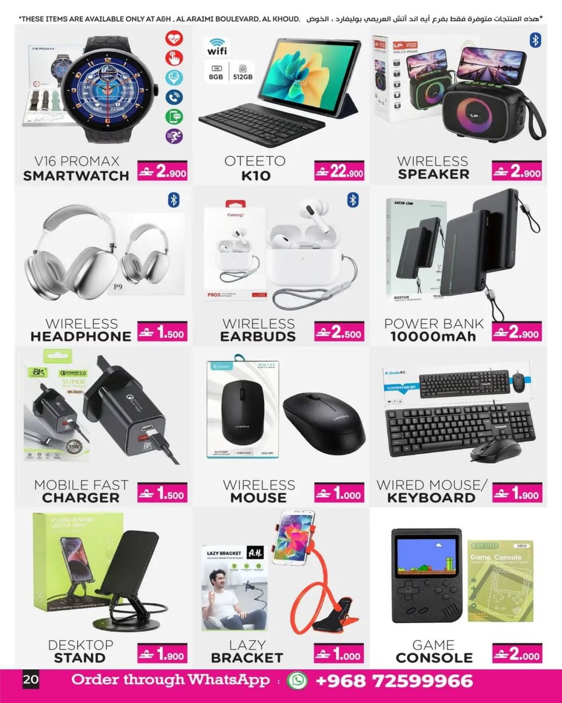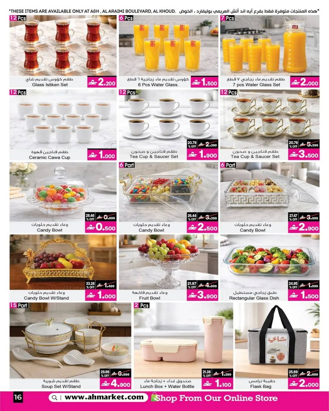 عروض الالكترونيات والهواتف ولوازم المنزل من ايه اند اتش مسقط الخوض وصحار، تسوق الآن مجموعة واسعة من الالكترونيات والهواتف والهدايا المتنوعة والمفروشات والأثاث المنزلي والاجهزة الرياضية وتجهيزات الاكساء والحمامات إضافة إلى بعض لوازم المنزل وبإسعار مخفضة ، زوروا الان احد الفروع في مسقط الخوض وصحار واستفيدوا من العروض .