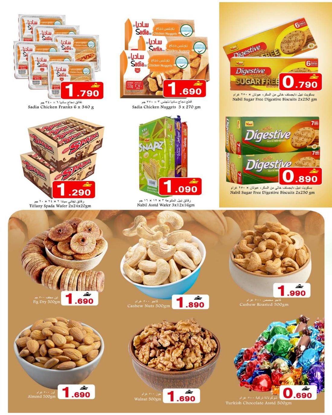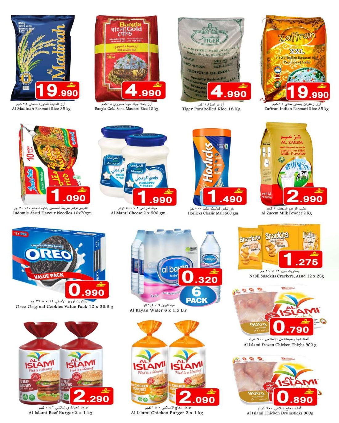 • المنتجات الغذائية: خضروات وفواكه طازجة، مواد بقالة، أطعمة مجمدة، منتجات الألبان، المشروبات، والمخبوزات.
