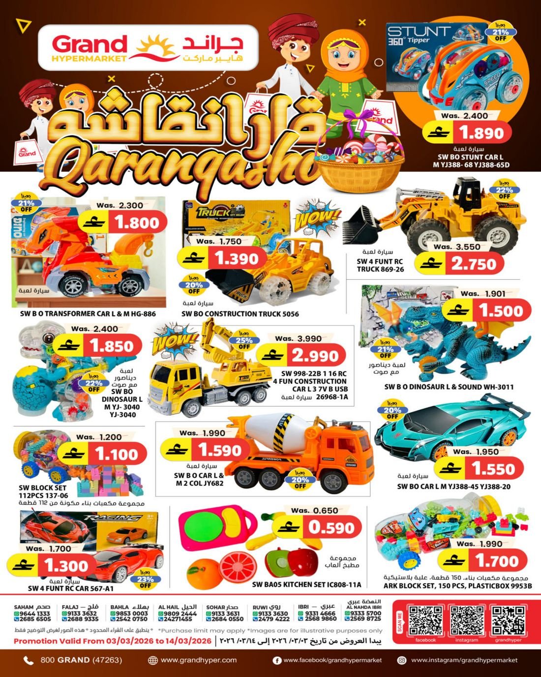 العروض متوفرة في جراند هايبر ماركت فروع الحيل وروي وبهلاء وصحار وصحم وعبري .