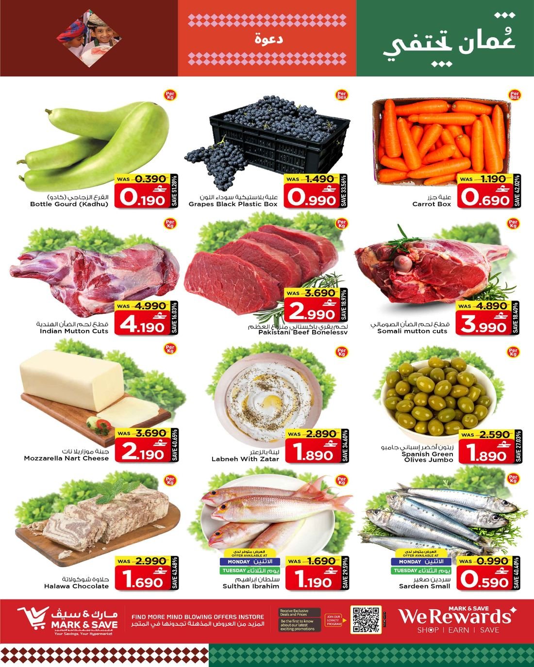 العروض الاسبوعية من جراند هايبر ماركت فرع ولاية صحار ، تسوق الان المنتجات الغذائية المتنوعة من جراند عمان ضمن تخفيضات اسبوعية تستمر لثلاثة ايام متتالية في فروعه في صحار ،تشمل العروض الخضروات والفواكه المتنوعة اضافة الى اللحوم والاسماك والمنتجات الغذائية الاخرى.