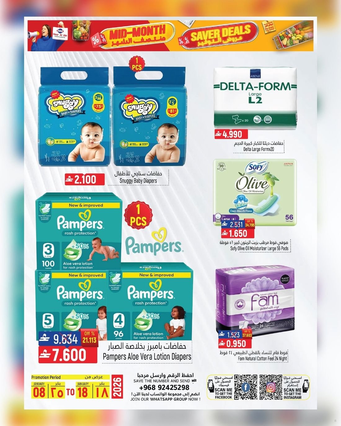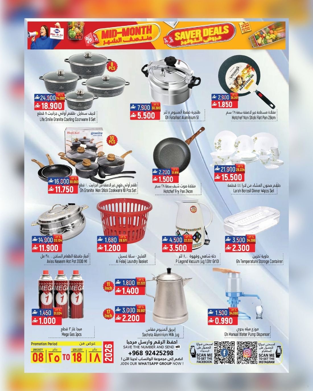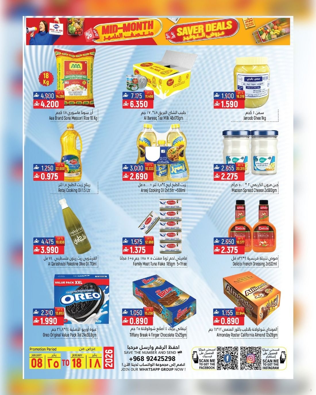 عروض قيمة على الغذائيات ولوازم المنزل في ولاية سناو من حور العين هايبر ماركت، تسوق الآن العديد من المواد الغذائية ولوازم المنزل وبأسعار مخفضة لاتدعو الفرصة تفوتكم وسارعو إلى زيارة حور العين هايبرماركت فرع سناو للاستفادة من العروض القيمة .