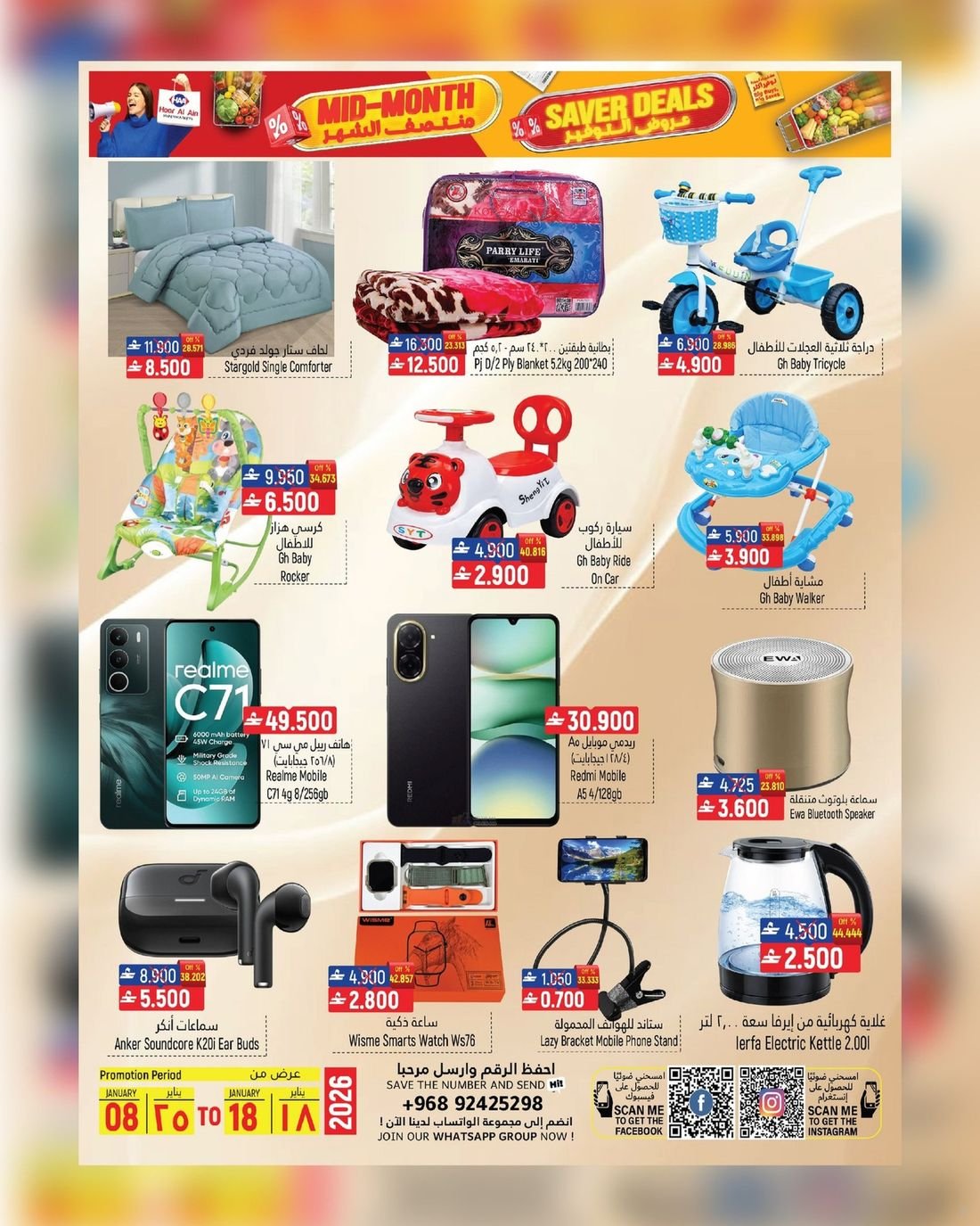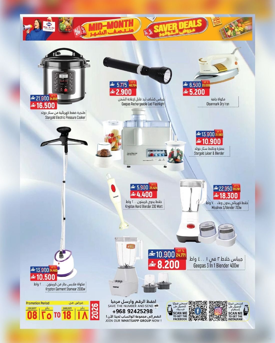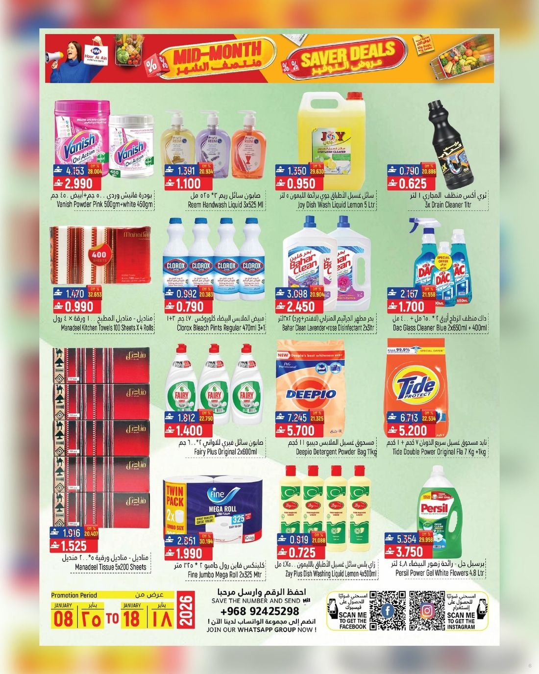 عروض قيمة على الغذائيات ولوازم المنزل في ولاية سناو من حور العين هايبر ماركت، تسوق الآن العديد من المواد الغذائية ولوازم المنزل وبأسعار مخفضة لاتدعو الفرصة تفوتكم وسارعو إلى زيارة حور العين هايبرماركت فرع سناو للاستفادة من العروض القيمة .