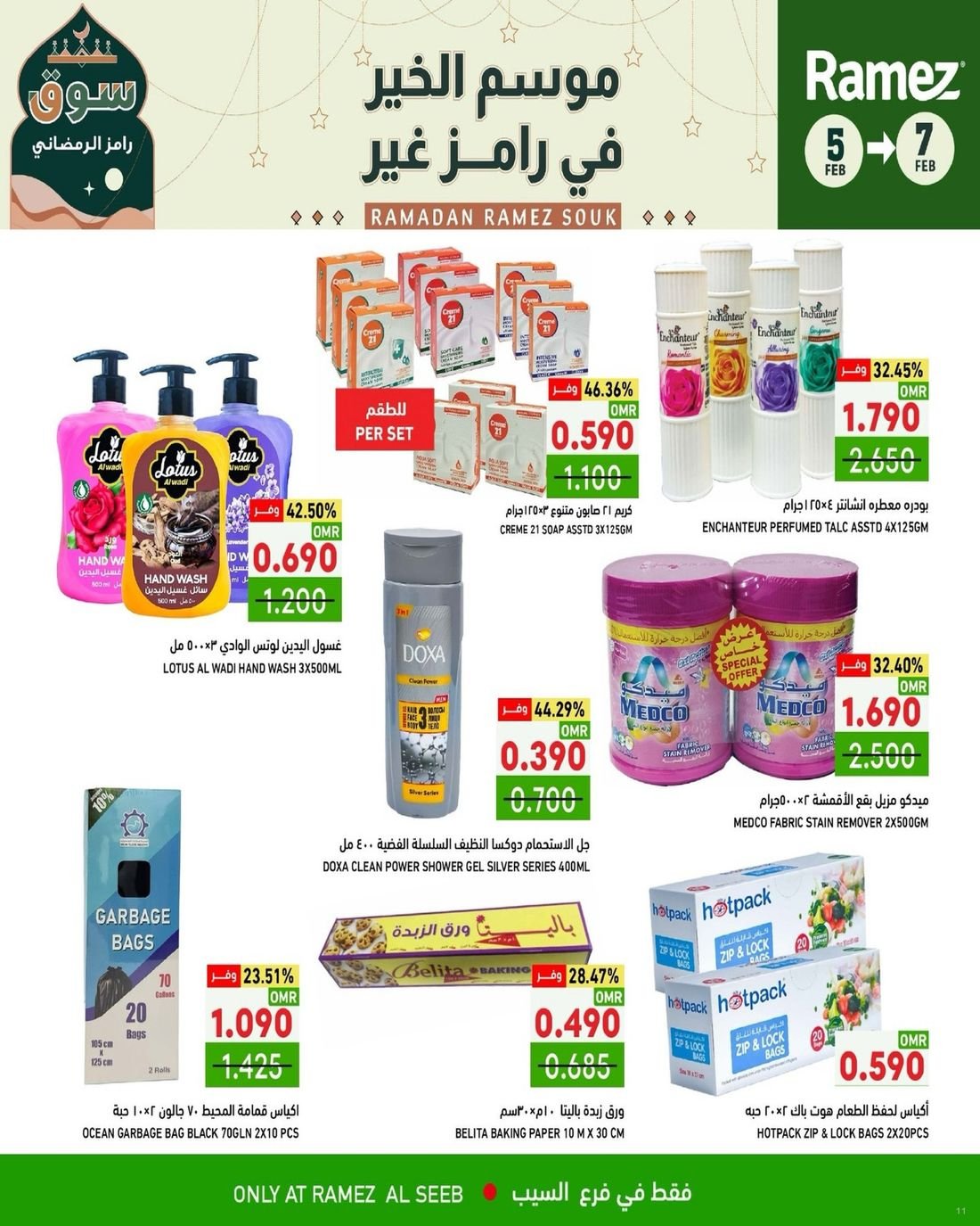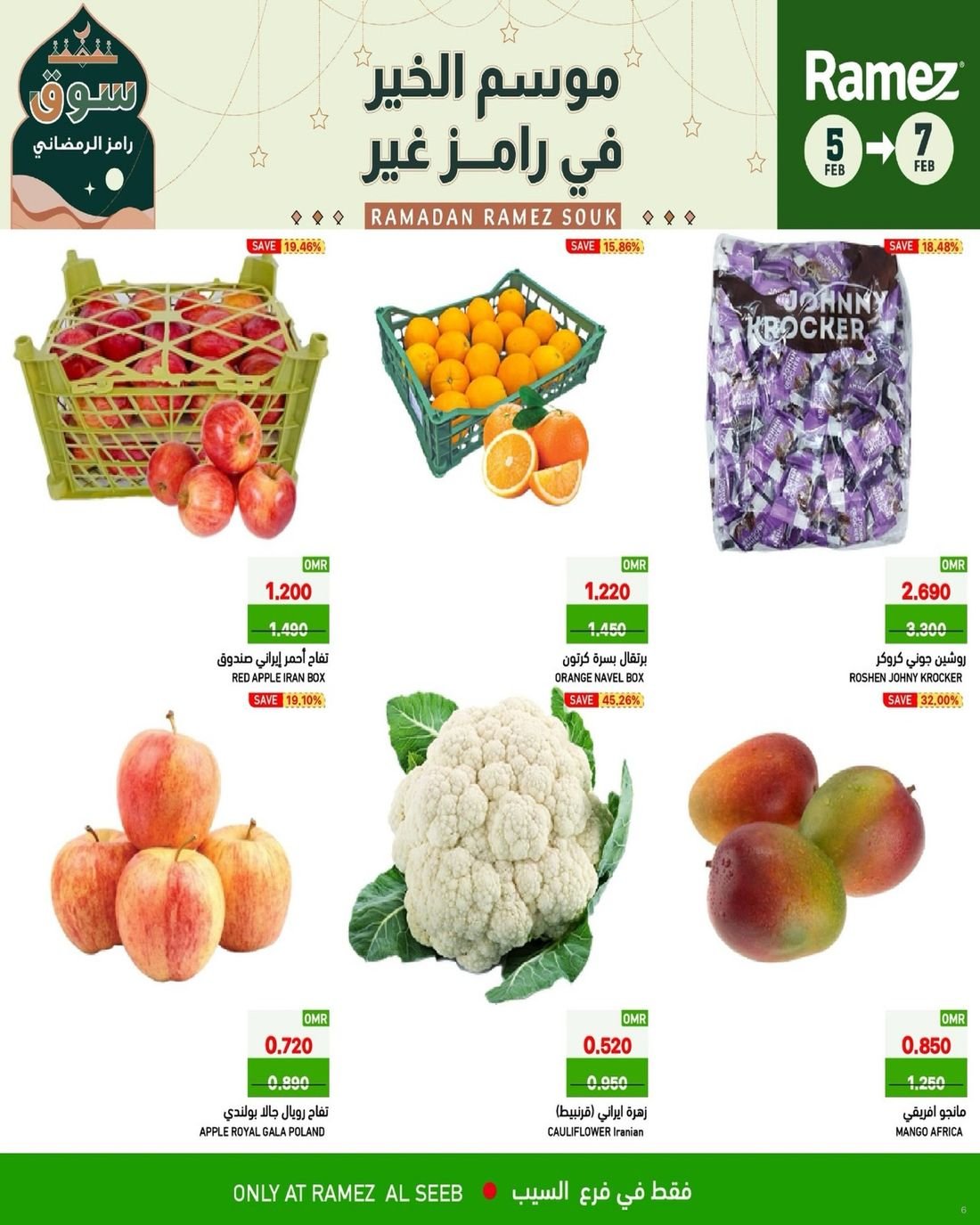 عروض متنوعة من اسواق رامز عمان فرع مسقط ولاية السيب ، تسوق الان من رامز السيب العديد من المنتجات المتنوعة إضافة إلى بعض لوازم المنزل وبإسعار مخفضة ، زوروا الان أسواق رامز واستفيدوا من العروض .