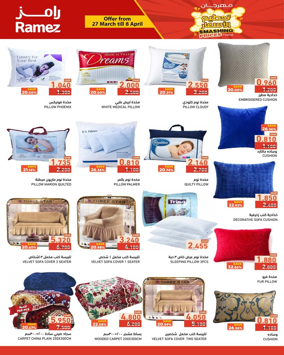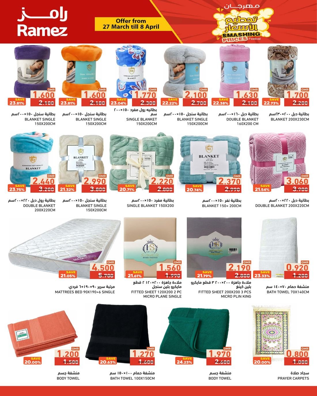 العروض متوفرة في فروع رامز السيب والغبرة وصحار وصلالة والرستاق والملدة وصور وعبري .