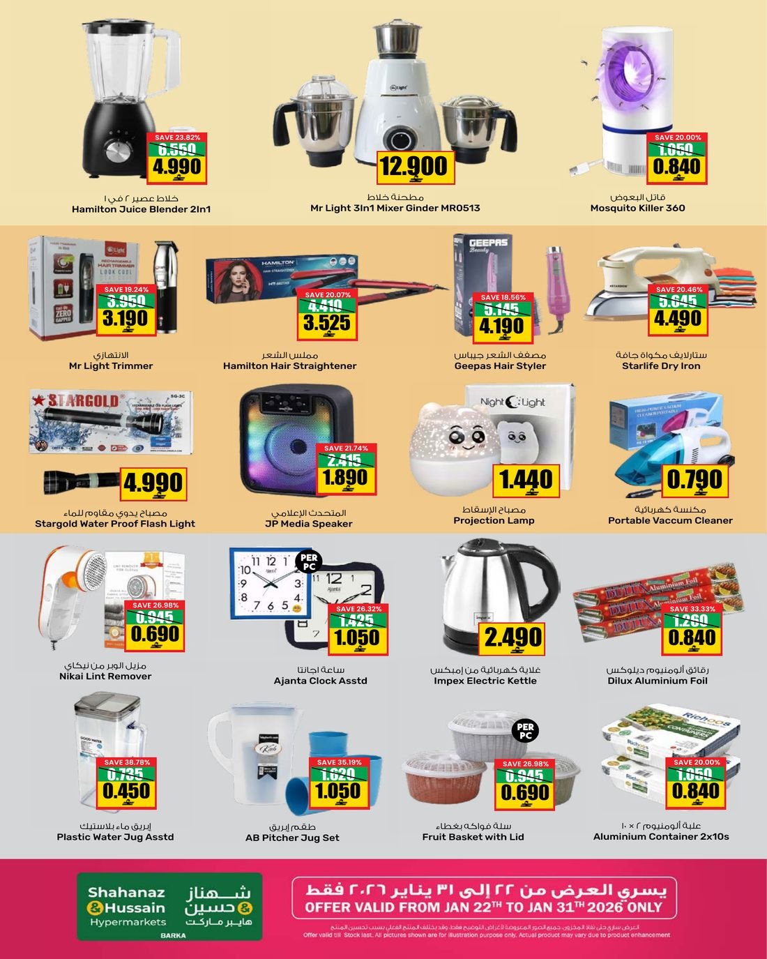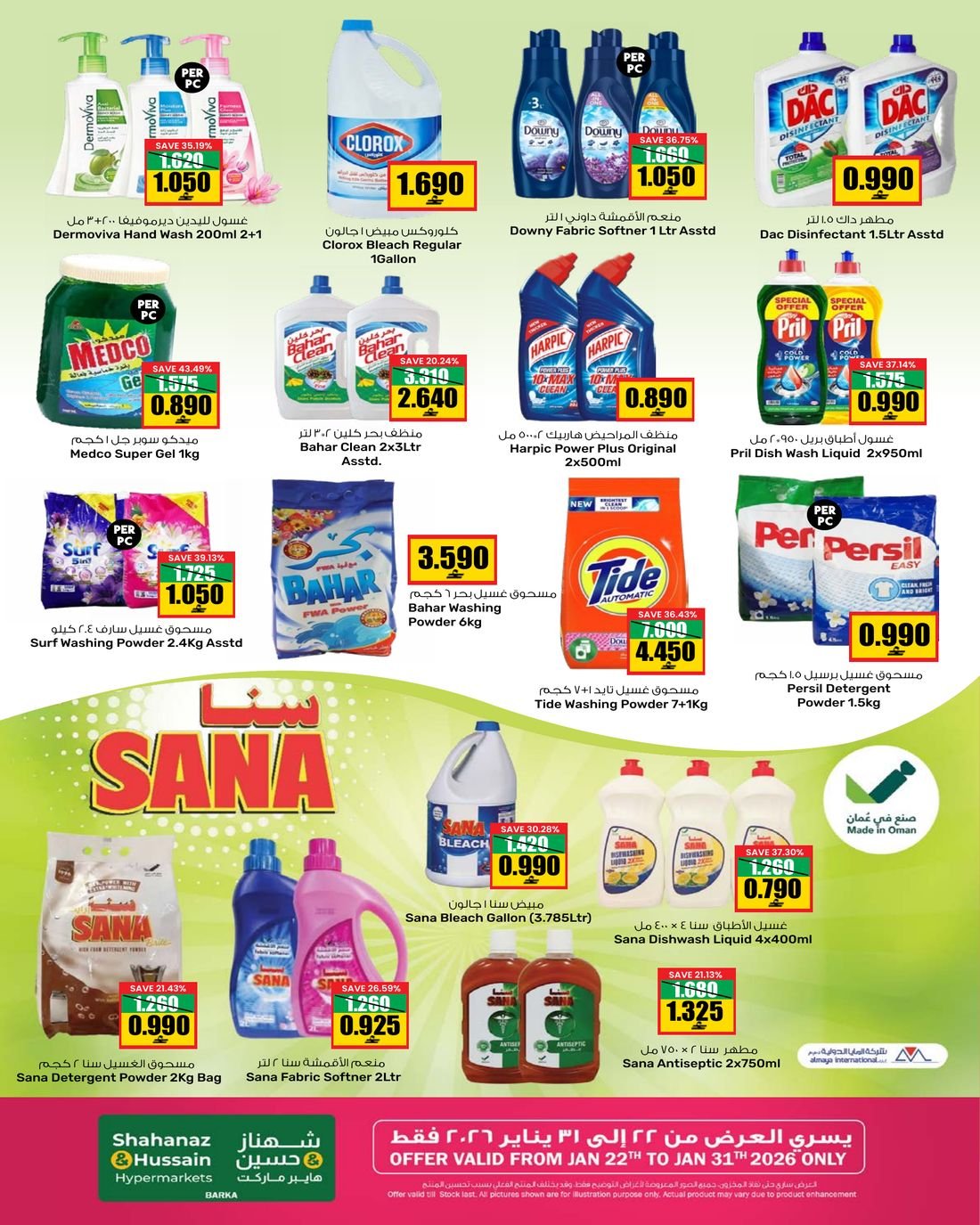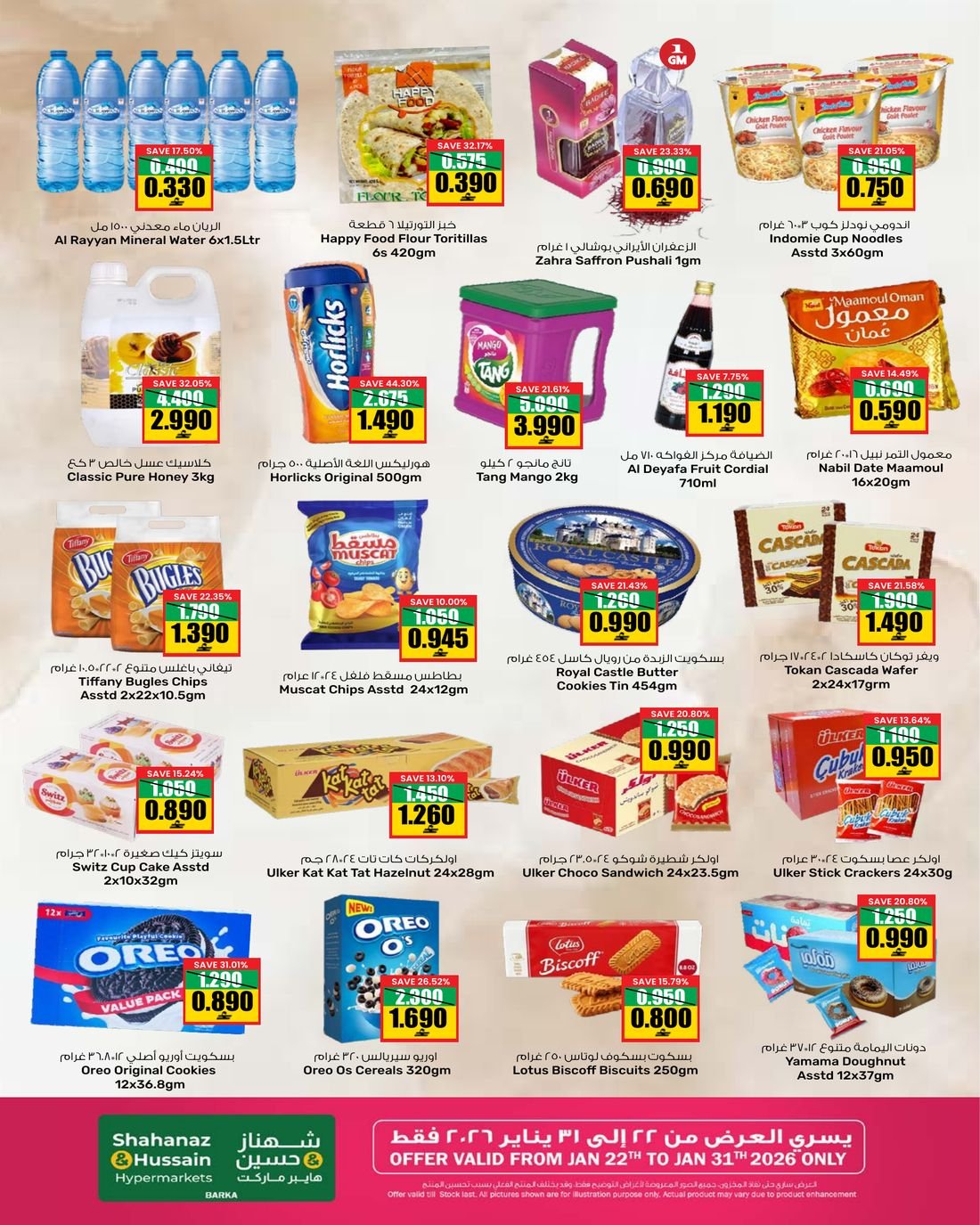 عروض الغذائيات ولوازم المنزل من شهناز وحسين هايبر ماركت بركاء ، يشمل العرض العديد من المواد الغذائية إضافة إلى بعض حاجيات المنزل ضمن التخفيضات المستمرة من شهناز وحسين هايبر ماركت .