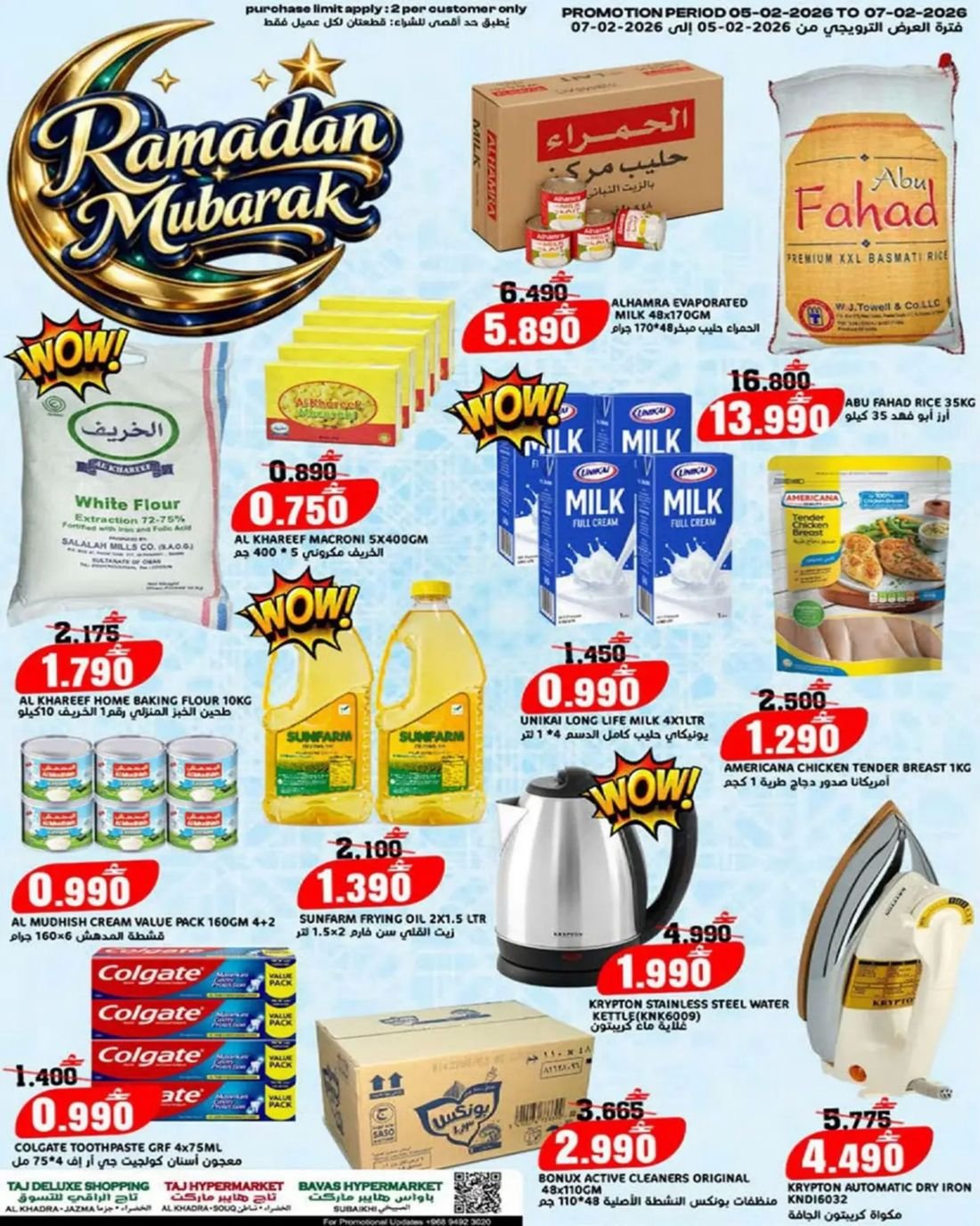 عروض الغذائيات ولوازم المنزل من تاج هايبر ماركت في ولاية السويق ، تخفيضات كبيرة على مجموعة من المواد الغذائية المتنوعة وبإسعار مخفضة تجدونها في تاج هايبر ماركت .
