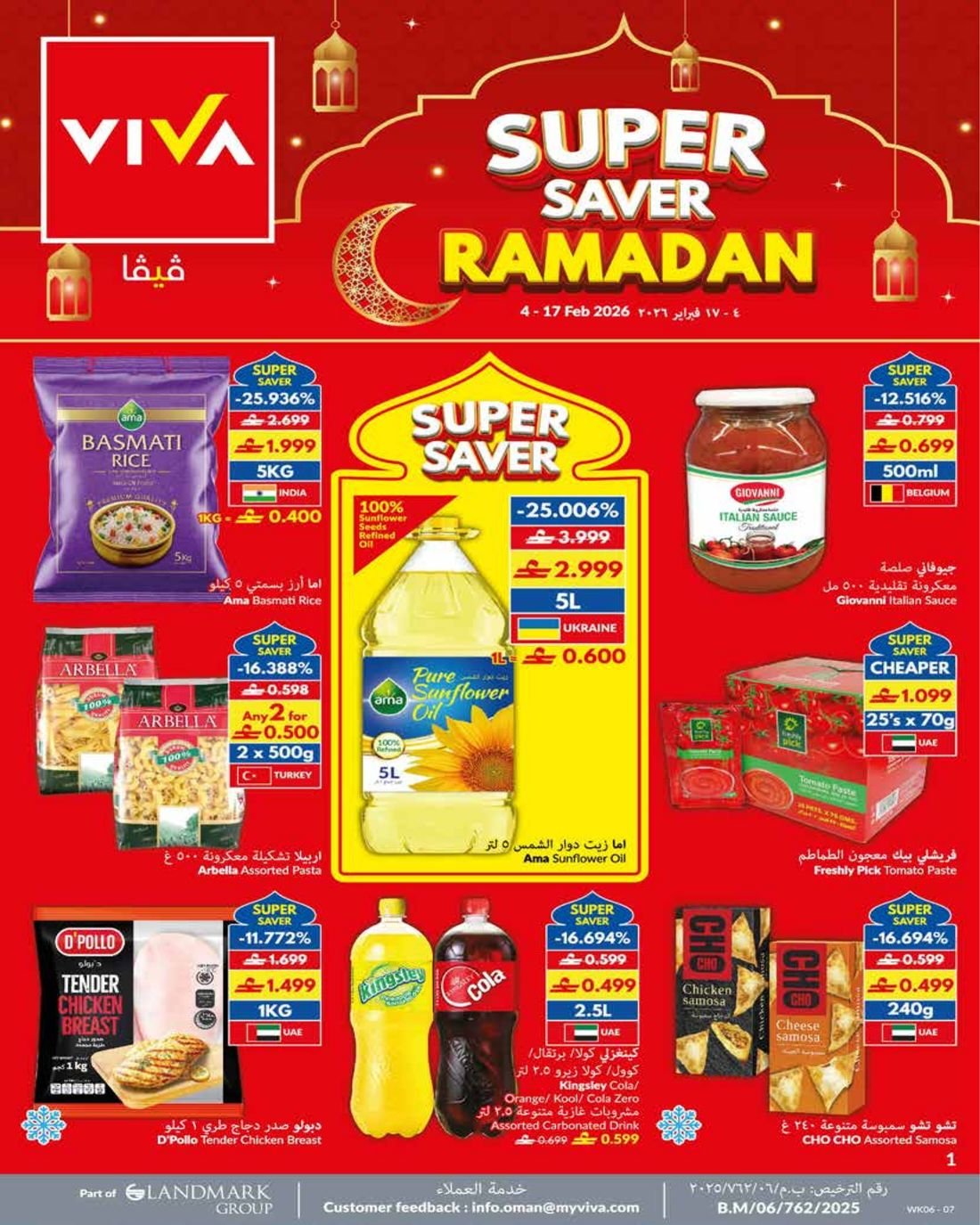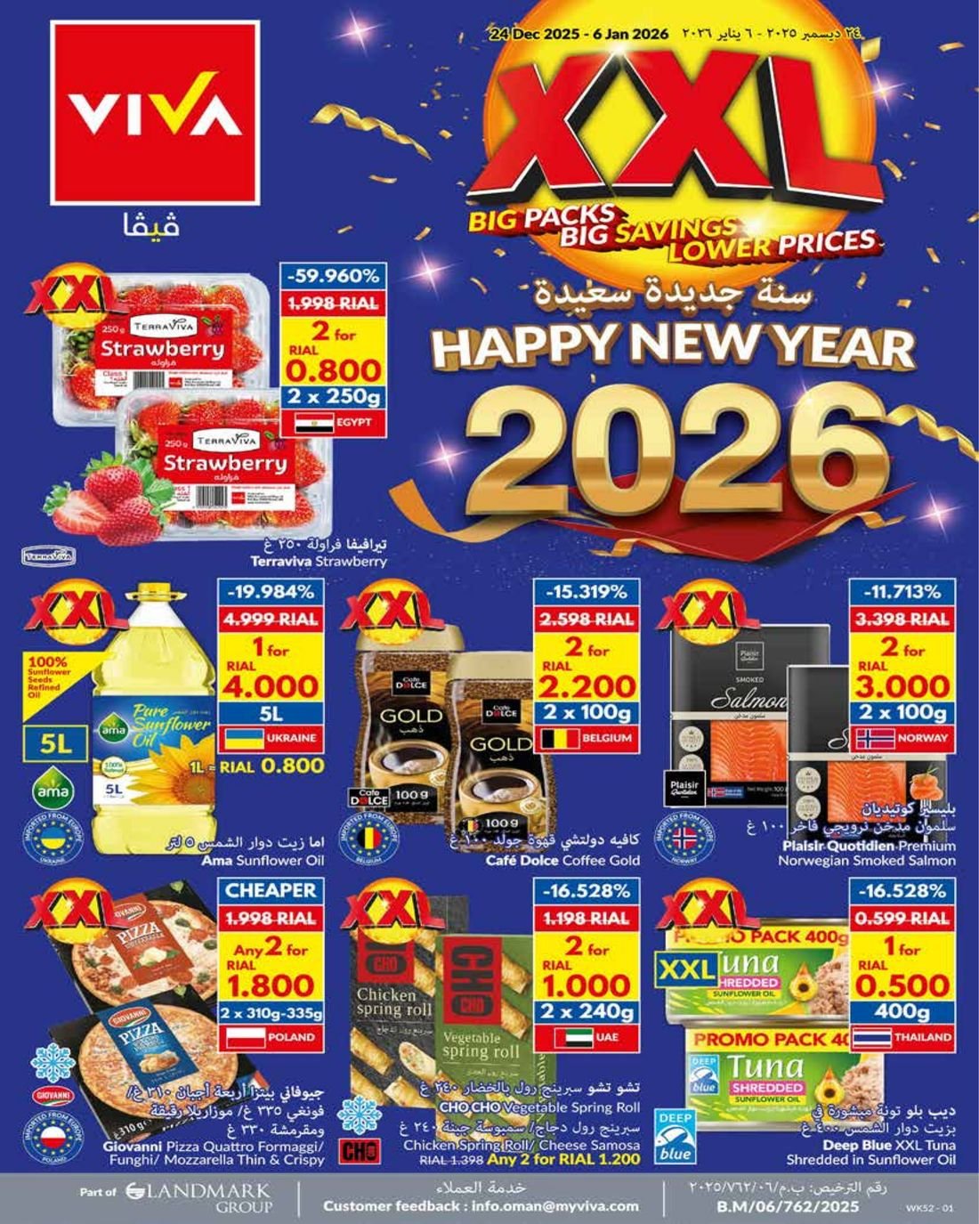 تسري عروض فيفا سوبرماركت فروع الخوير – العذيبة – الخوض – السيب (ممشى النهدي) – صحار (الواحة مول) .
