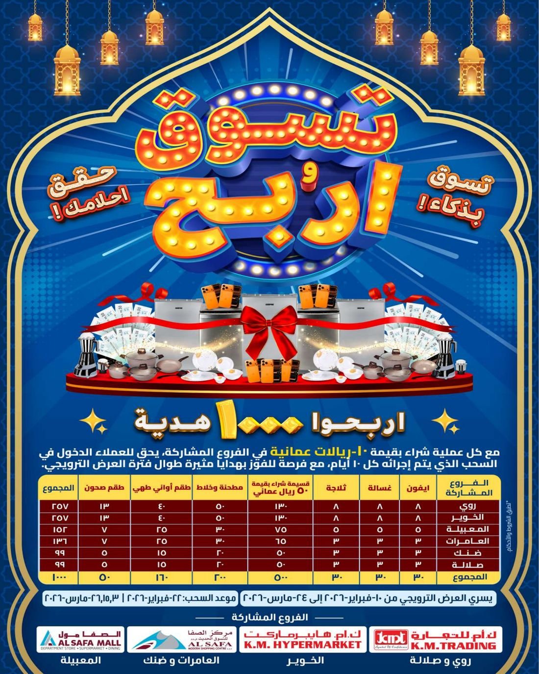 عروض الالكترونيات المتنوعة والاواني من ك ام هايبرماركت الخوير والصفا مول المعبيلة والصفا للتسوق العامرات ، ضمن تخفيضات تشمل العديد من لوازم التخييم والرحلات والمزيد من العروض الاخرى بانتظاركم.