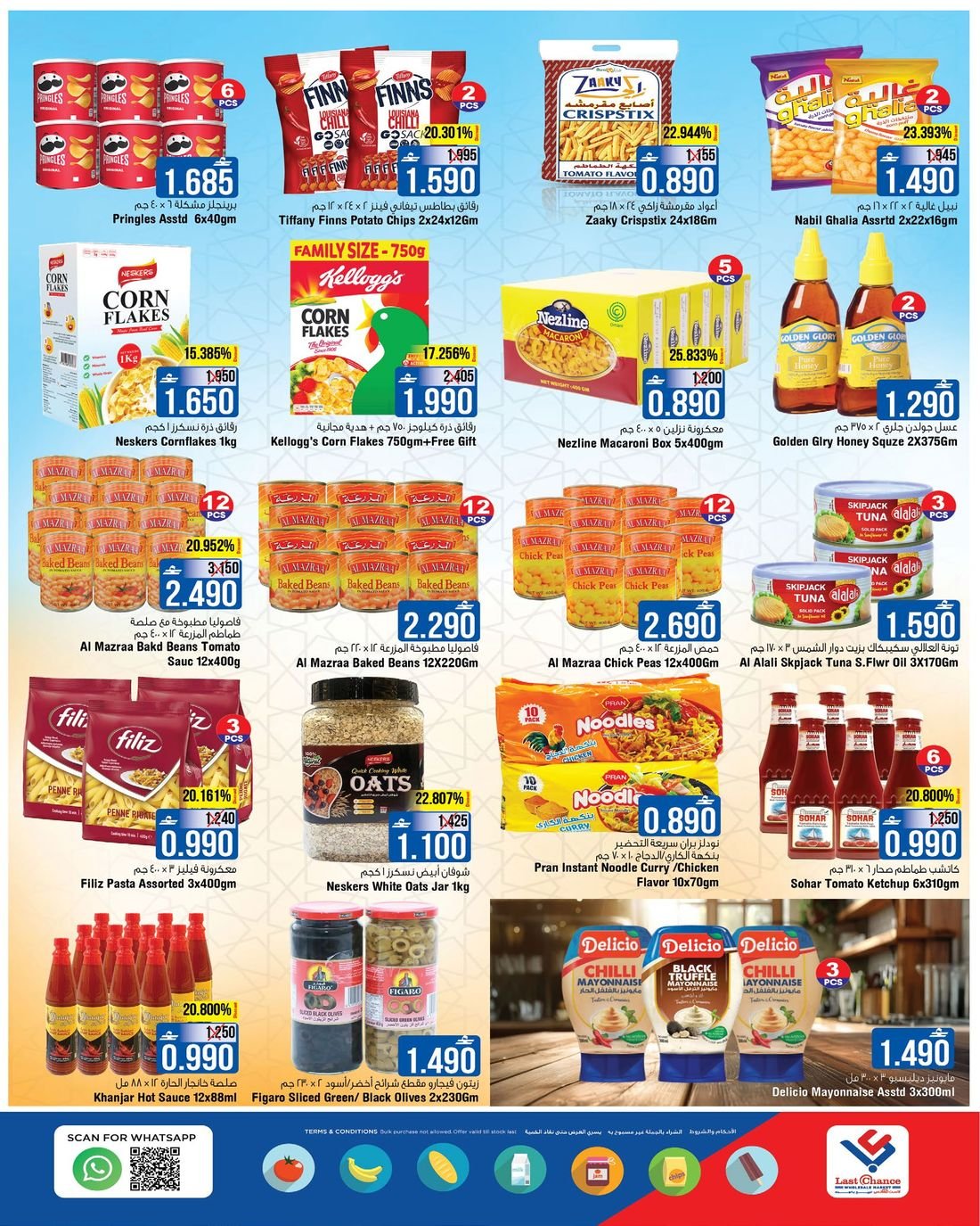 عروض الغذائيات ولوازم المنزل من لاست تشانس هايبر ماركت عمان ولاية بركاء على مجموعة مميزة من المواد الغذائية والملابس المتنوعة اضافة الى بعض لوازم وحاجيات المنزل ضمن تخفيضات لاست تشانس في ولاية بركاء .