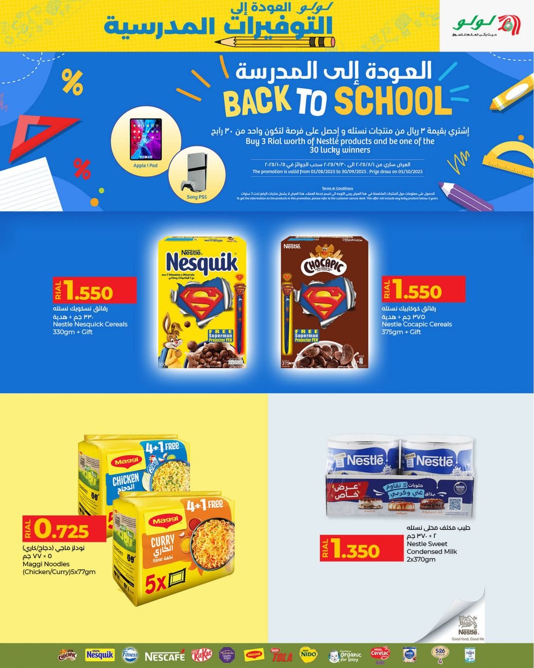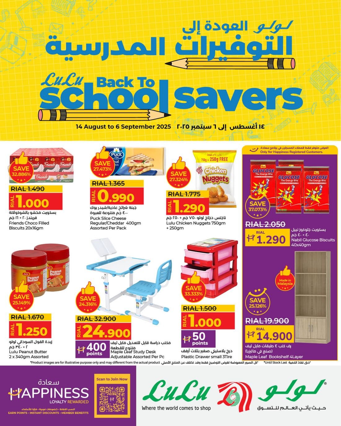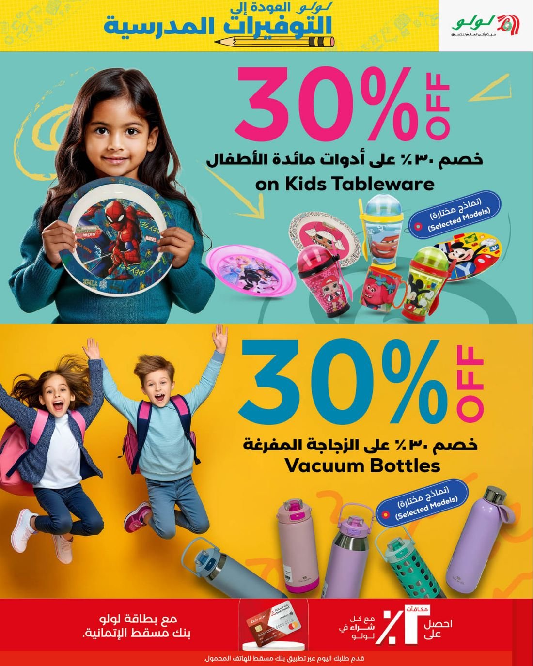 عروض القرطاسية والحقائب والملابس المدرسية مقدمة من لولو هايبر ماركت عمان تشمل العروض الحقائب والملابس المدرسية وكل مايحتاجه الطلاب خلال دراسته والمقدمة من لولو هايبر ماركت عمان في جميع فروعه في السلطنة ، والعديد من التخفيضات القيمة الأخرى .