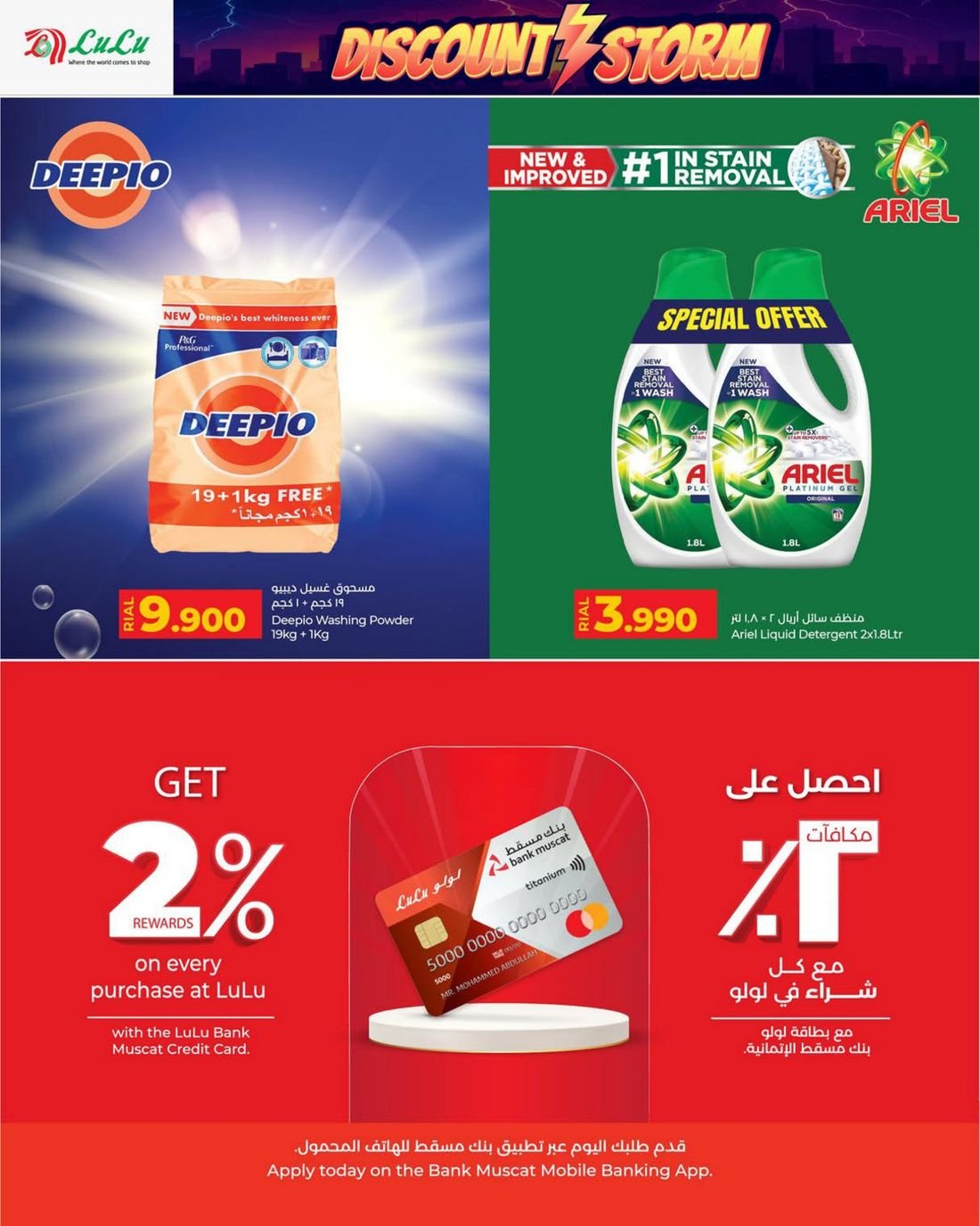 أما في قسم المنظفات، فيوفر تشكيلة شاملة من منتجات النظافة والعناية بالمنزل، بما في ذلك مساحيق الغسيل والمعطرات ومنعمات الأقمشة، بالإضافة إلى مواد التعقيم وملمعات الأسطح، مع خصومات مغرية على عبوات التوفير الكبيرة.