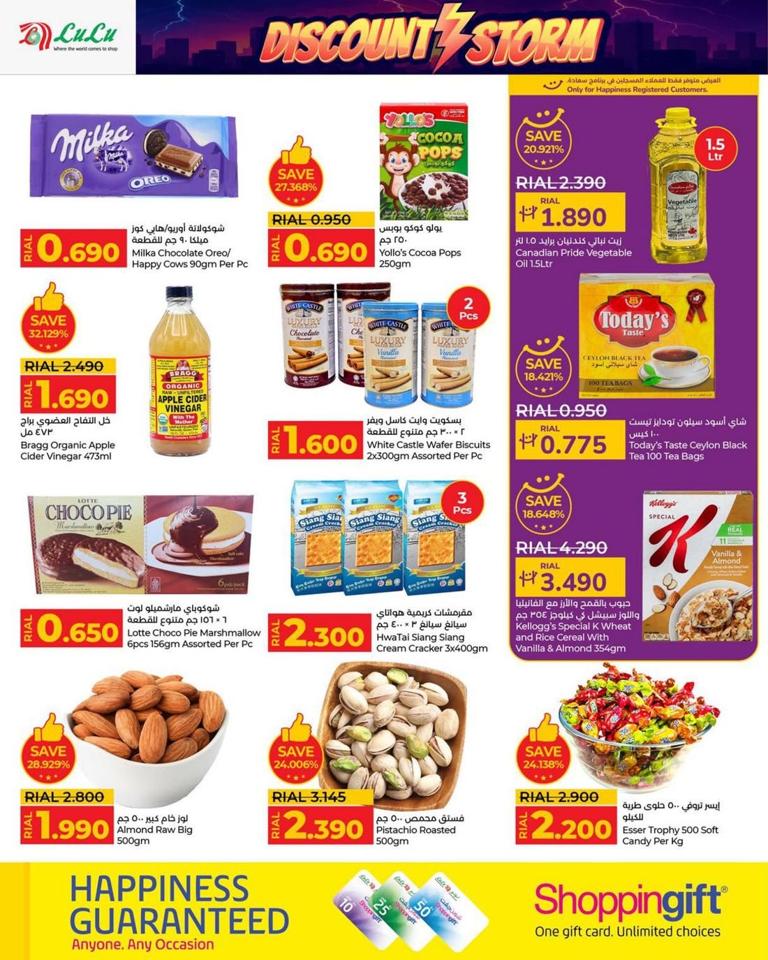 ففي قسم الغذائيات، تجد باقة واسعة من المنتجات الطازجة والمعلبة، تشمل المواد الأساسية مثل الأرز والسكر والزيت والدقيق، بالإضافة إلى البقوليات والمعلبات والمقبلات، مع عروض أسبوعية خاصة على الماركات المحلية والعالمية.