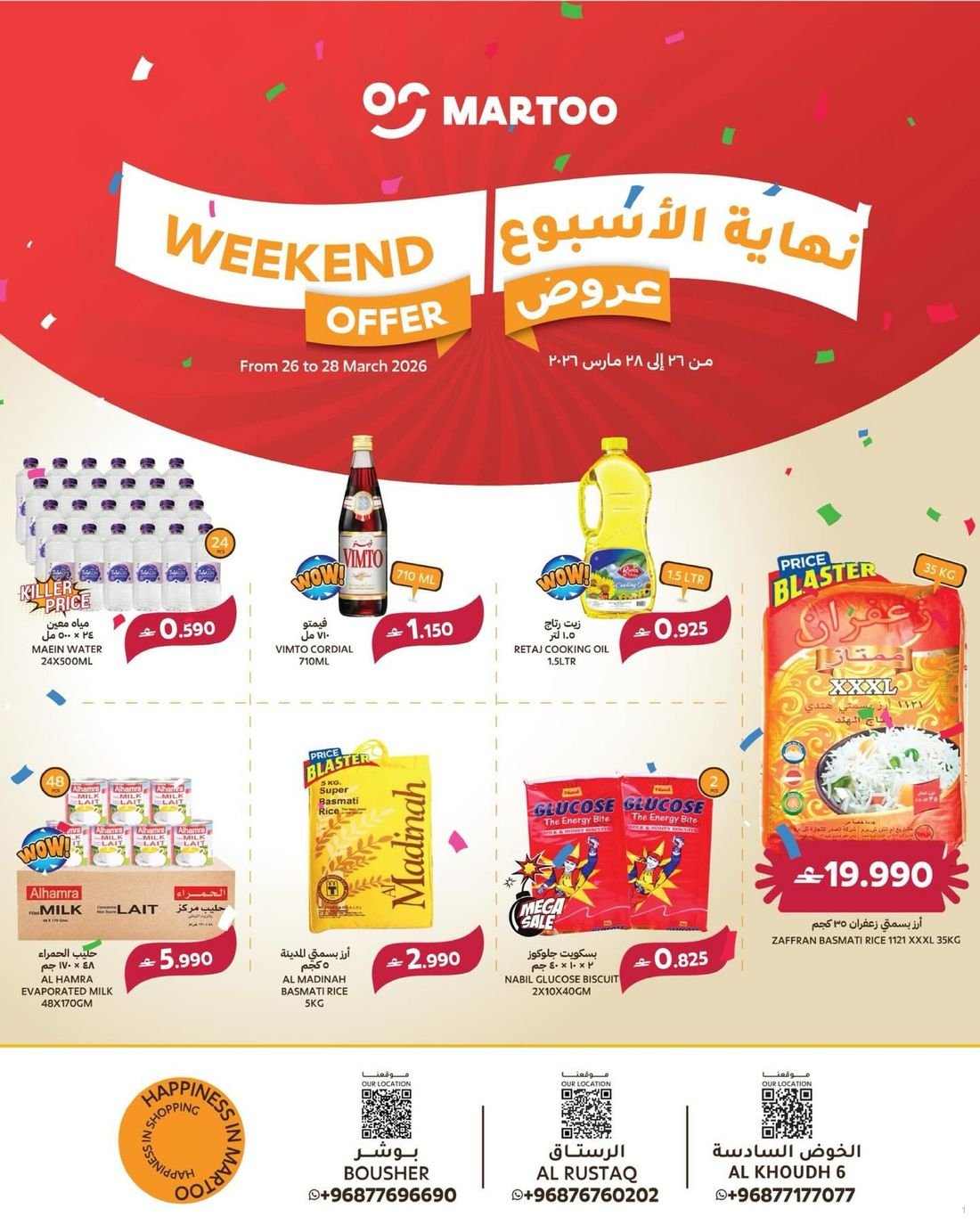 العرض متوفر في فروع مارتوو هايبر ماركت في الخوض السادسة وبوشر والرستاق .
