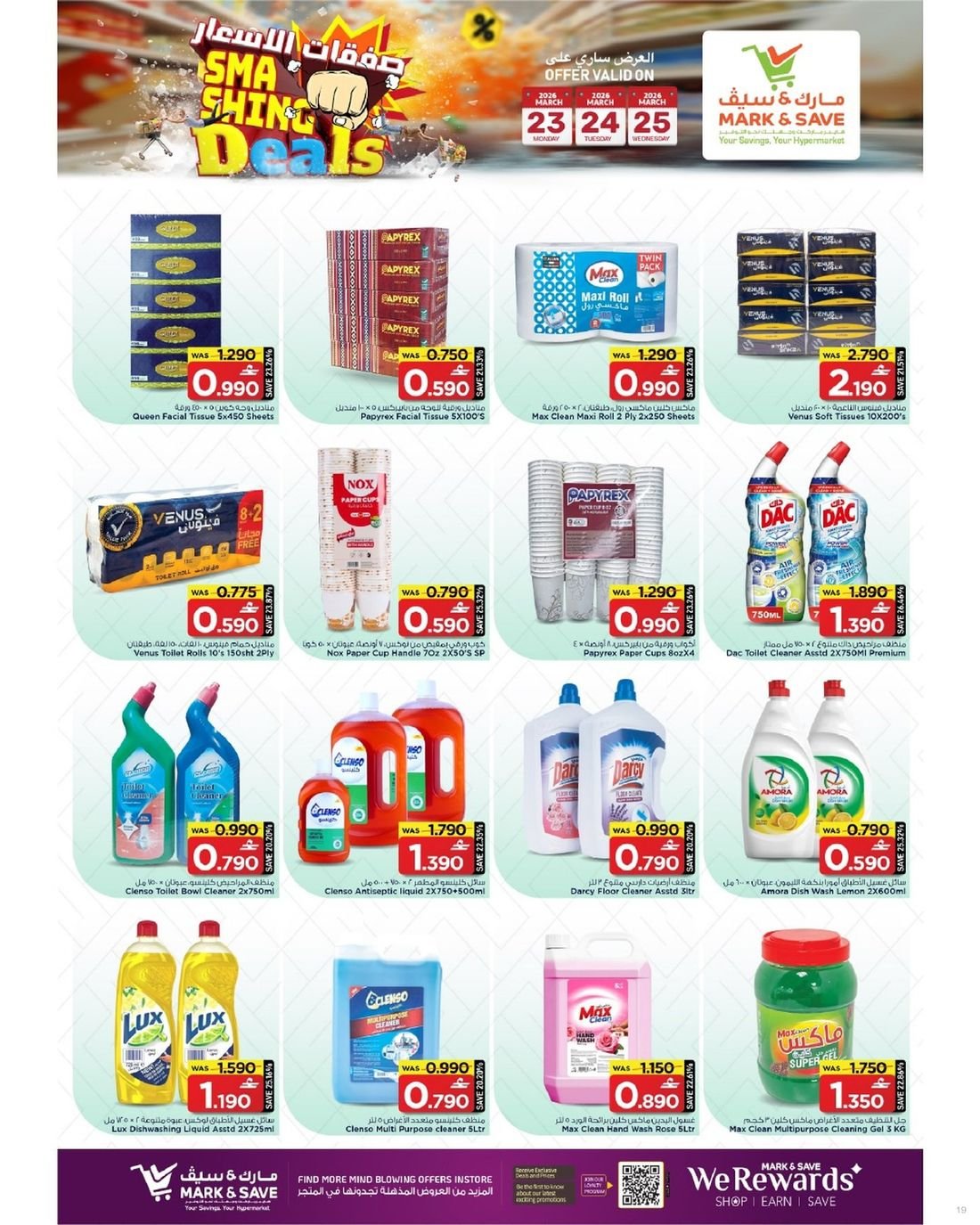 يتميز مارك اند سيف بتقديم مجموعة متنوعة من المواد الغذائية الأساسية، والمنظفات المنزلية، ومستلزمات المنزل بأسعار معقولة.