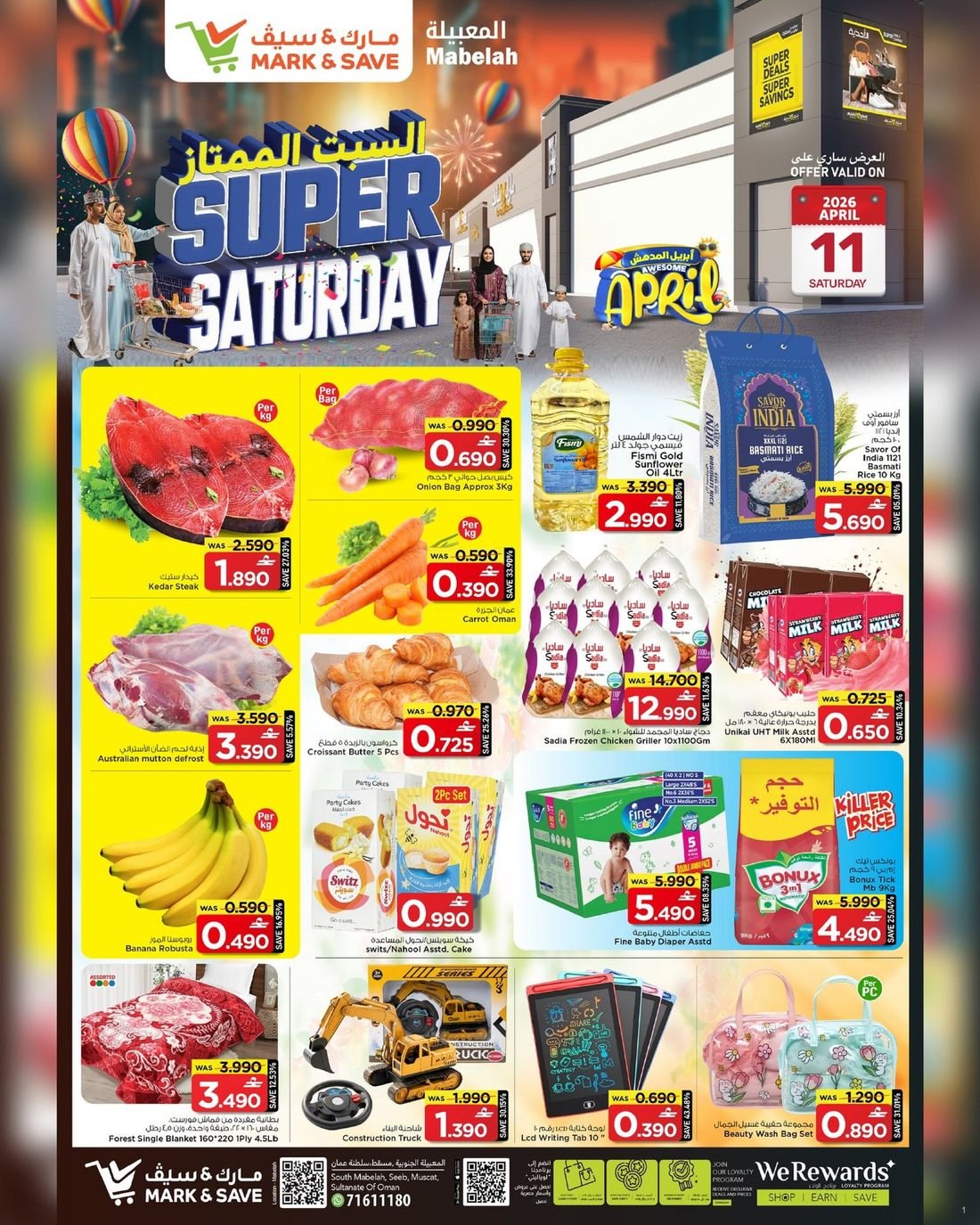 عروض الغذائيات المتنوعة ولوازم المنزل من مارك اند سيف في فرعه في المعبيلة ، تسوق الان من مارك اند سيف افضل المنتجات والمواد الغذائية المتنوعة وبارخص الاسعار ضمن العروض الاسبوعية المميزة لديهم .