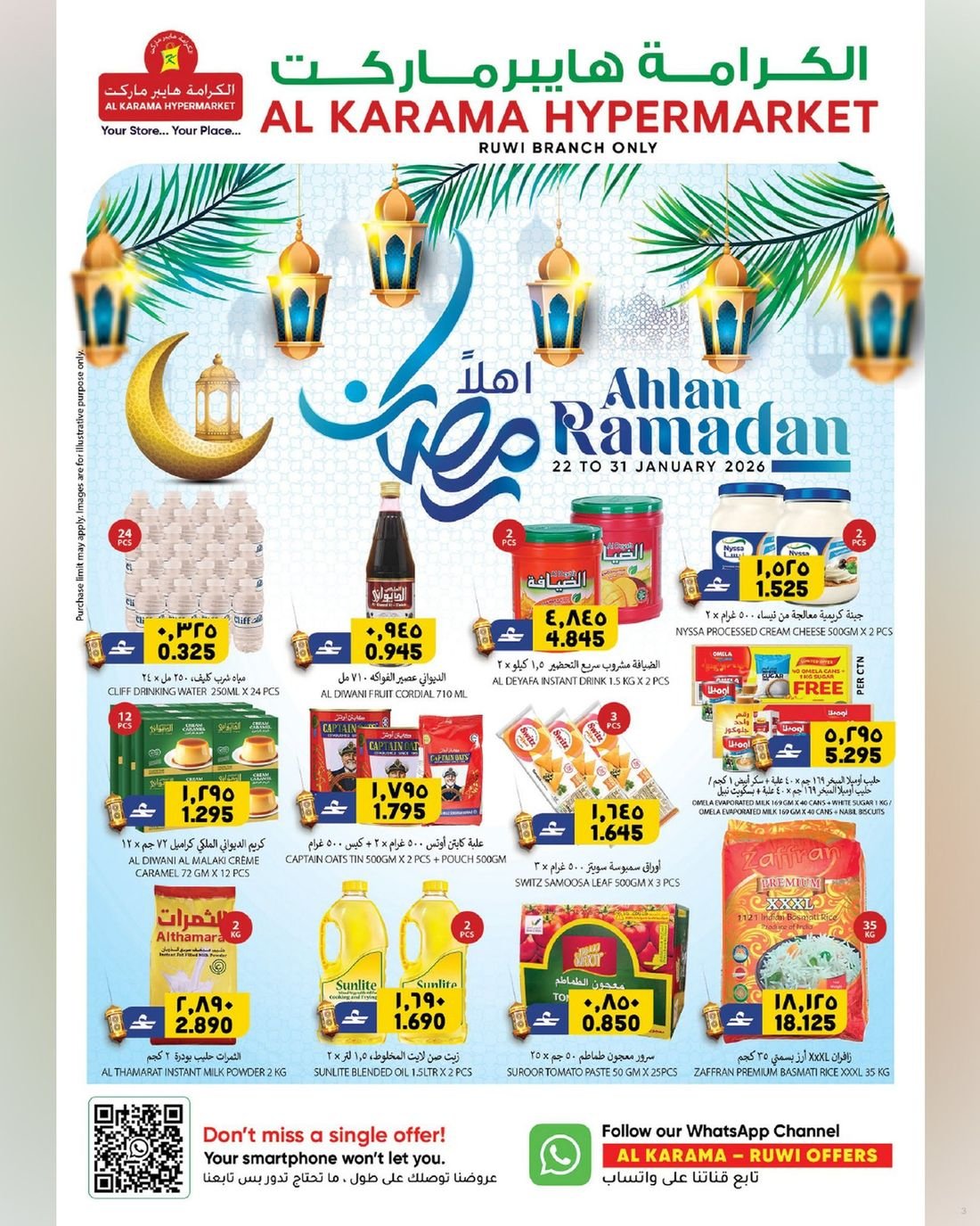 عرض الغذائيات ولوازم المنزل في مسقط روي مقدم من الكرامة هايبرماركت ضمن تخفيضات تشمل العديد من اصناف االمواد الغذائية وبإسعار مخفضة ، زوروا الان الكرامة هايبرماركت روي واستفيدوا من العروض .