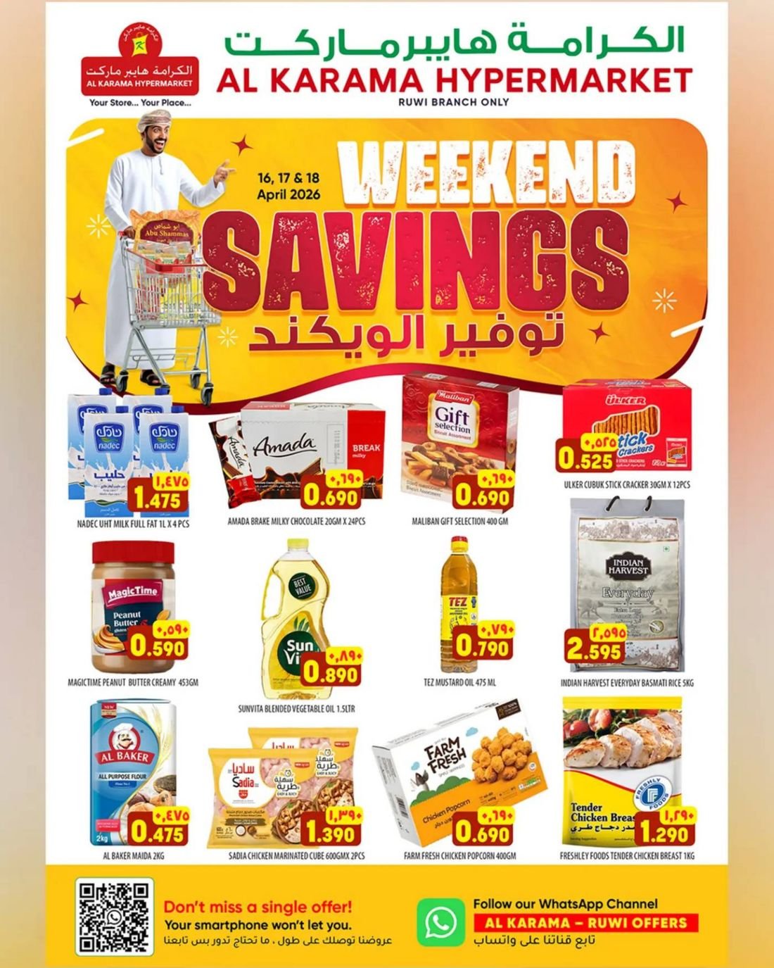 عرض الغذائيات ولوازم المنزل في مسقط روي مقدم من الكرامة هايبرماركت ضمن تخفيضات تشمل العديد من اصناف االمواد الغذائية وبإسعار مخفضة ، زوروا الان الكرامة هايبرماركت روي واستفيدوا من العروض .