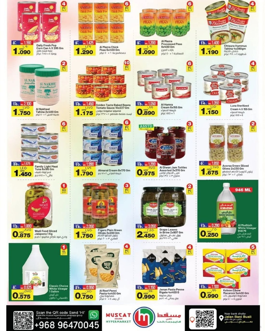 عروض المنتجات الغذائية ولوازم المنزل من مسقط هايبرماركت جعلان بني بوعلي ، تشمل العروض مجموعة من الغذائيات واحتياجات المنزل وبإسعار مخفضة تجدونها بانتظاركم في مسقط هايبرماركت جعلان بني بوعلي .