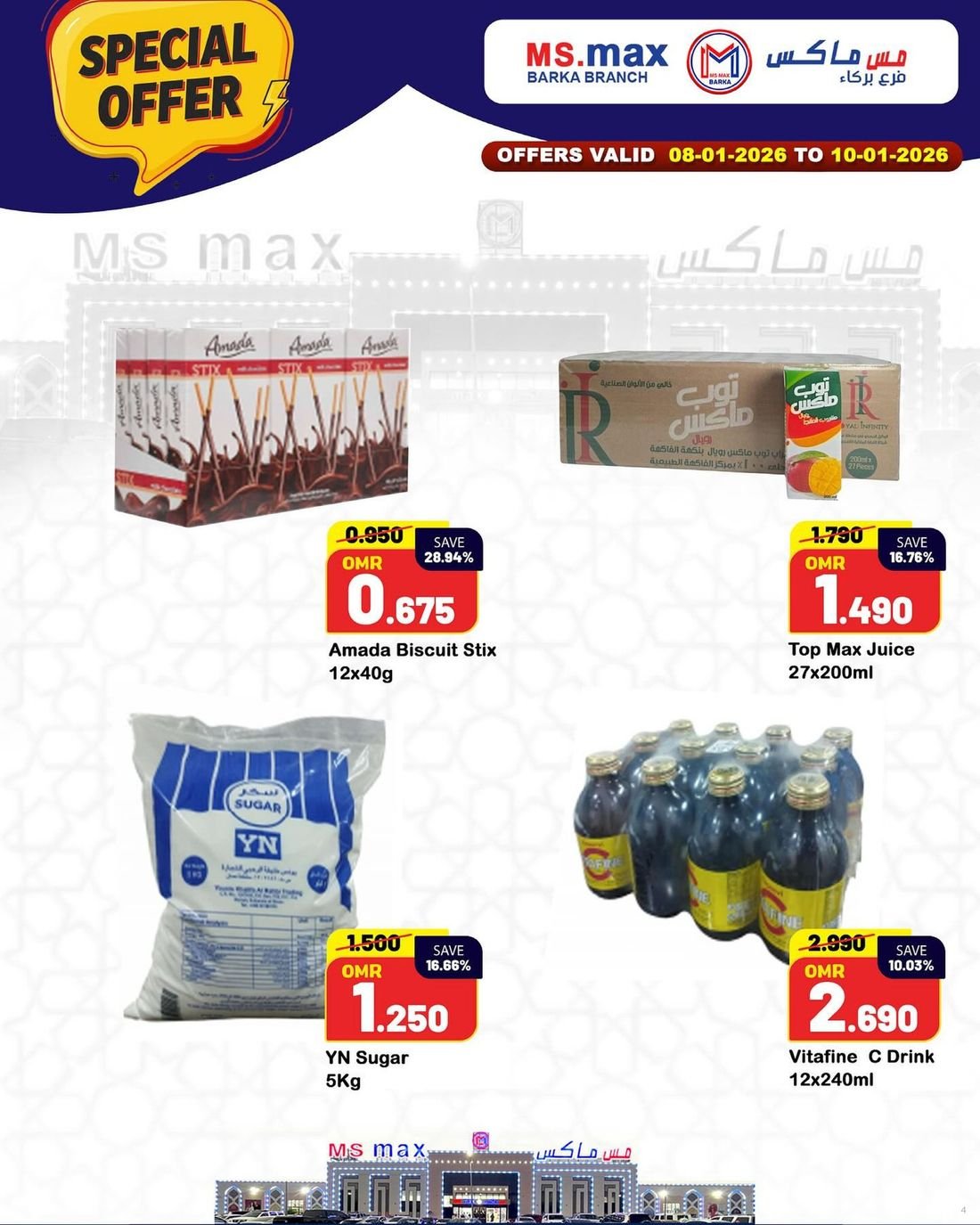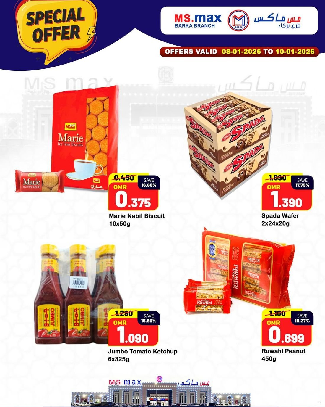 عروض الغذائيات ولوازم المنزل من مس ماكس عمان فرع ولاية بركاء على مجموعة مميزة من المواد الغذائية والملابس المتنوعة اضافة الى بعض لوازم وحاجيات المنزل ضمن تخفيضات مس ماكس في فرعهم في ولاية بركاء .