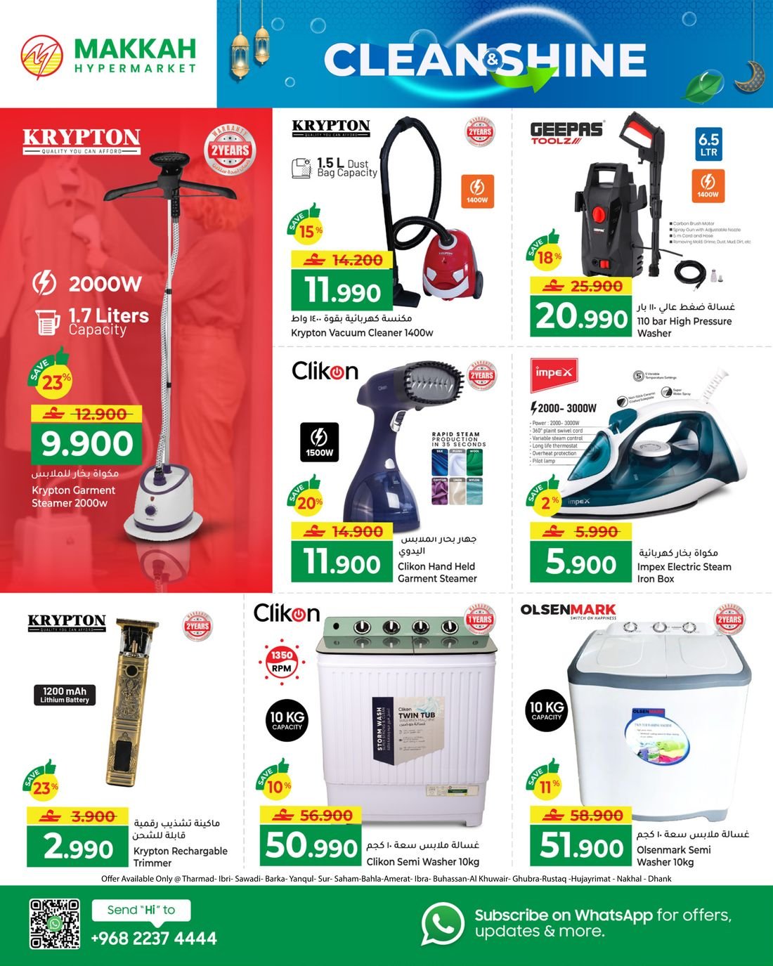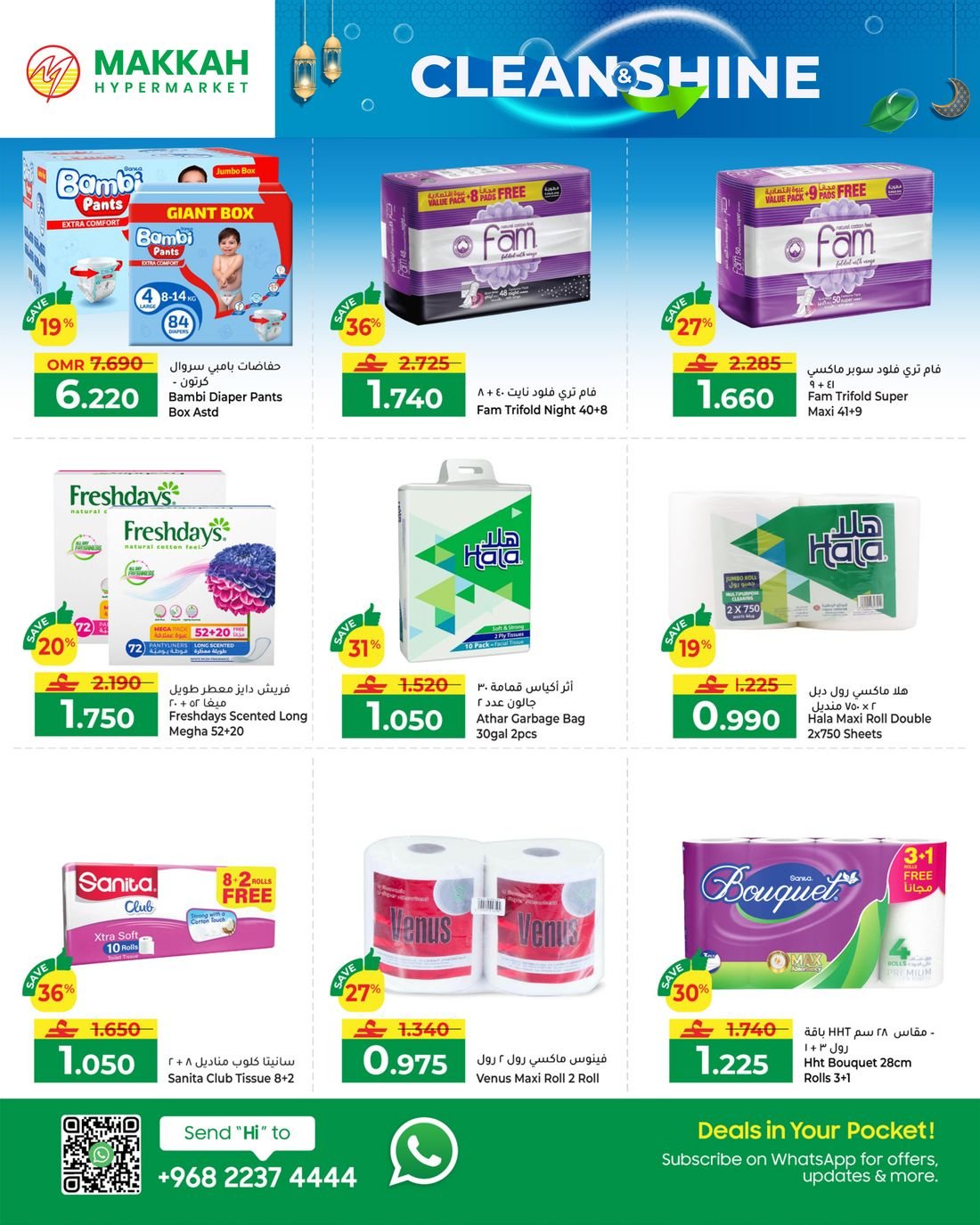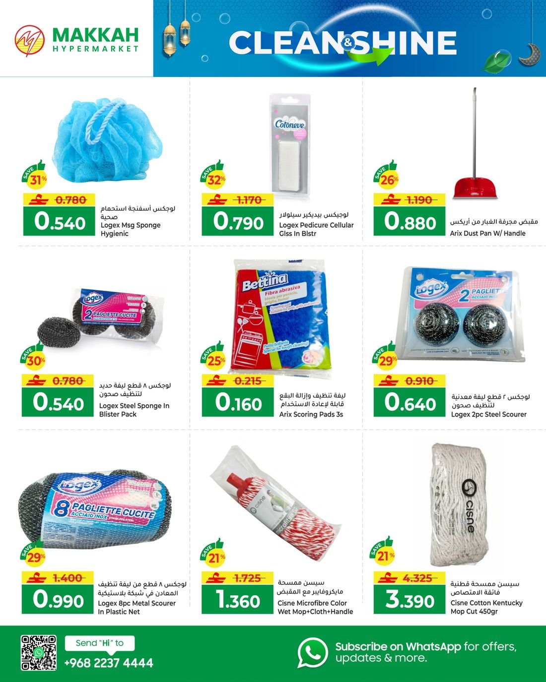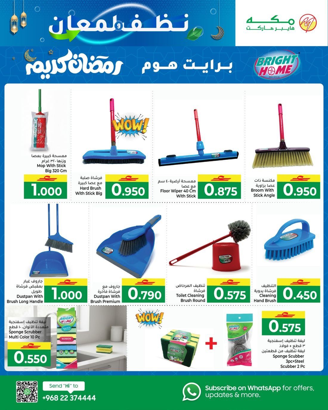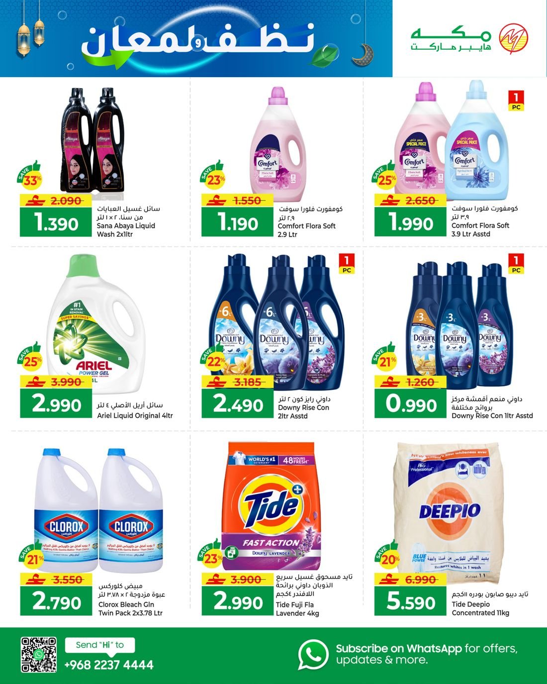 عروض المنظفات واجهزة ومواد التنظيف المتنوعة من مكة هايبر ماركت في العديد من فروعه في السلطنة على تشكيلة واسعة من منتجات التنظيف ومعداتها ، كما يشمل العرض تخفيضات على الغسالات ومكانس التنظيف الكهربائية والعديد من مستلزمات المنزل والمزيد من المنتجات وبتنزيلات منافسة