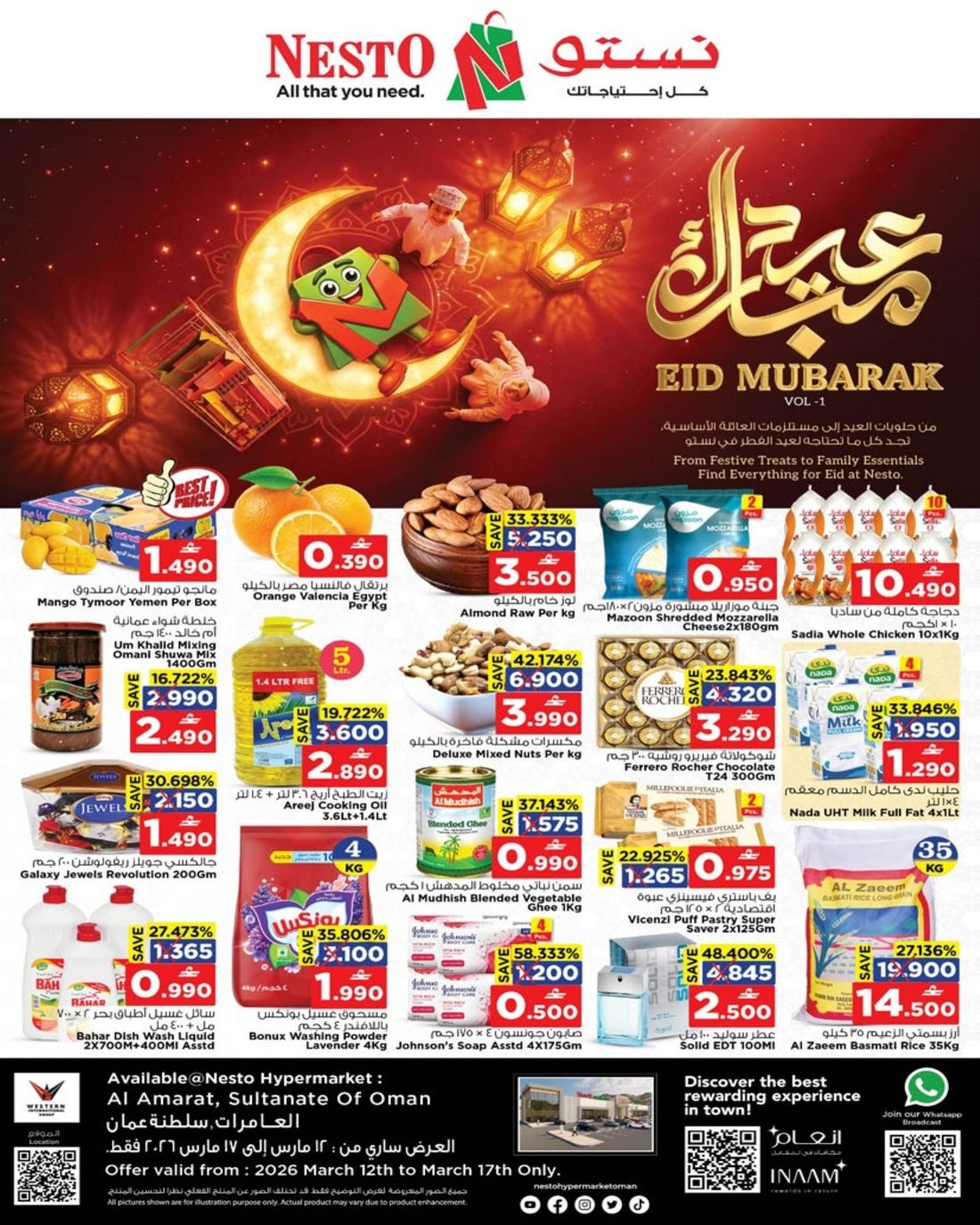 عروض متنوعة من نستو هايبر ماركت عمان فرع ولاية العامرات ، تشمل العروض العديد من المواد المتنوعة ولوازم المنزل والمقدمة من نستو العامرات وبإسعار مخفضة لاتدعو الفرصة تفوتكم .
