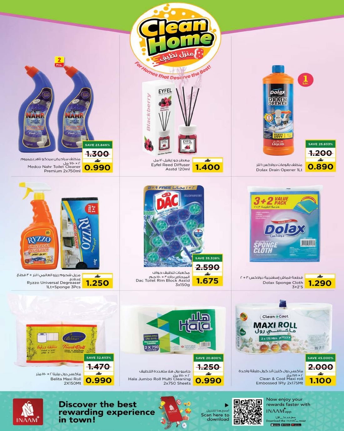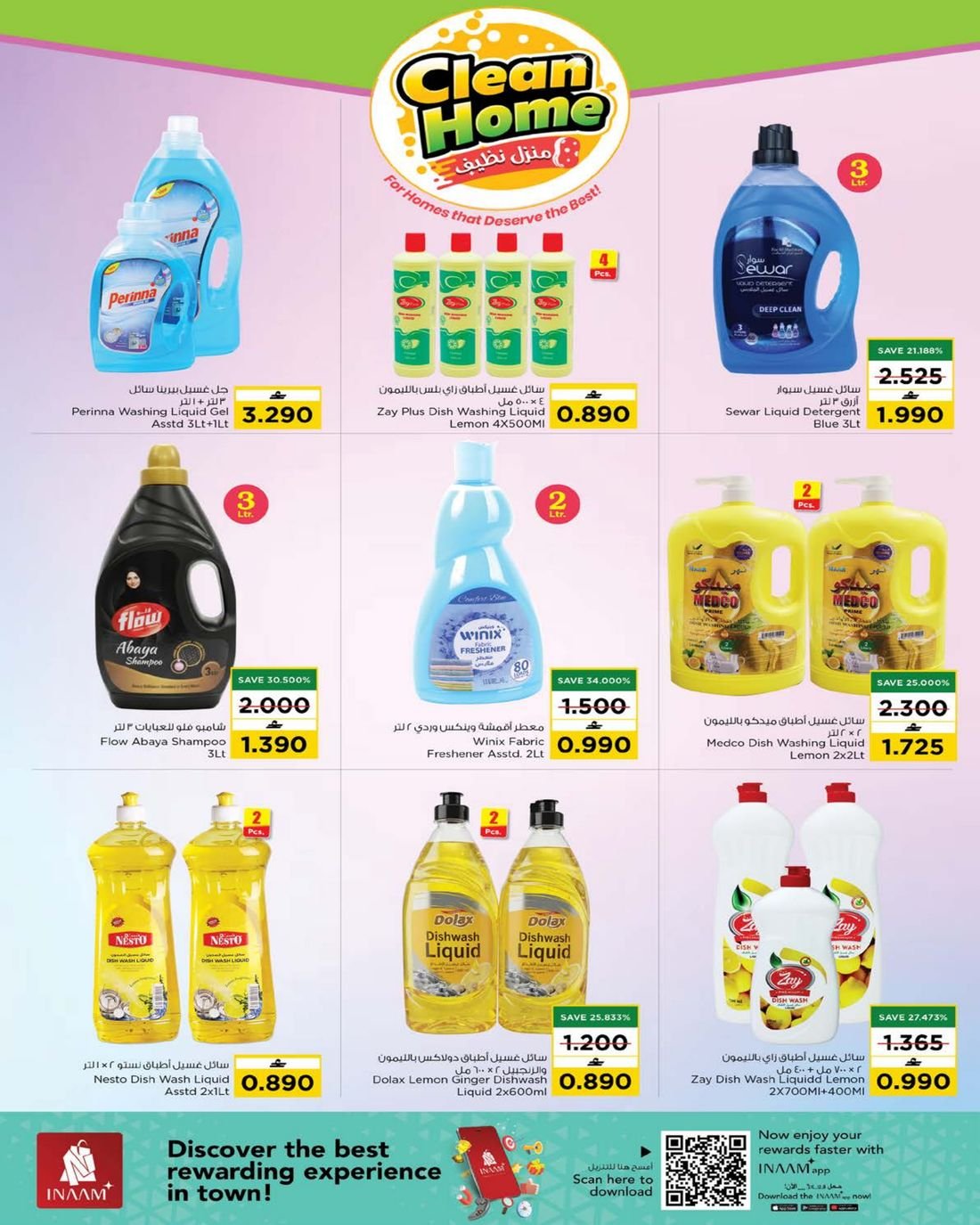 عروض المنظفات المتنوعة ولوازم المنزل من نستو هايبر ماركت عمان في فروعه في مسقط المعبيلة والوادي الكبير والانصب والعامرات وبركاء والحيل والمصنعة والسويق وصحم وصحار والفلج ، يشمل العرض العديد من مواد التنظيف والمنظفات وبإسعار منافسة والمقدمة من نستو هايبرماركت عمان والمزيد من العروض بانتظاركم .