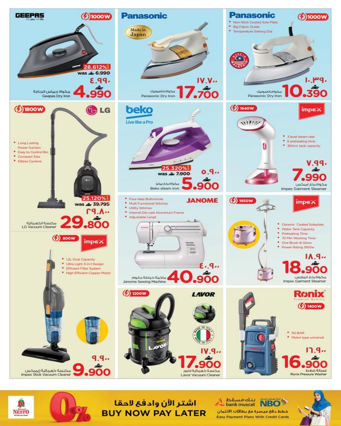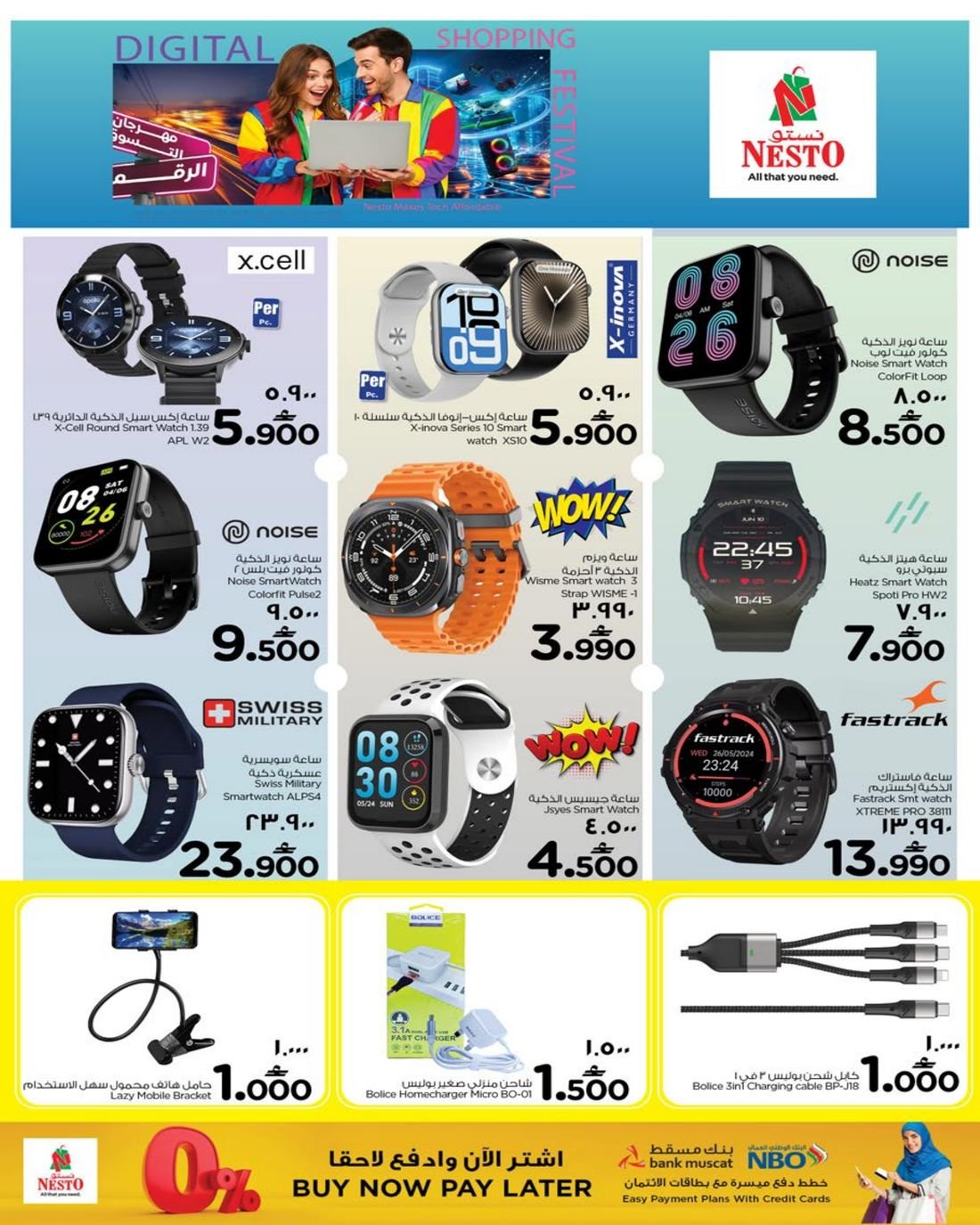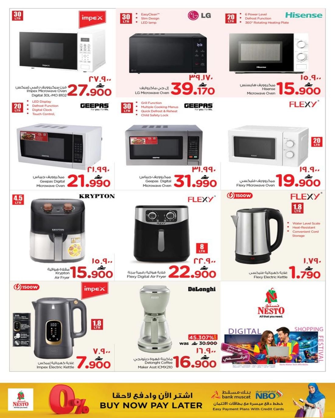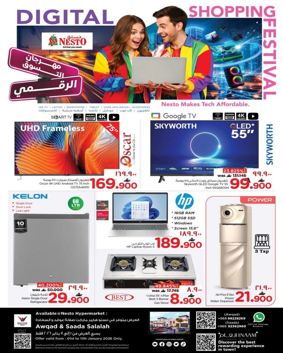 عروض الالكترونيات المتنوعة من نستو هايبر ماركت عمان فرع ولاية صلالة ، تسوق الان العديد من الاجهزة الالكترونية وبإسعار مخفضة من نستو هايبرماركت صلالة في عوقد والسعادة.
