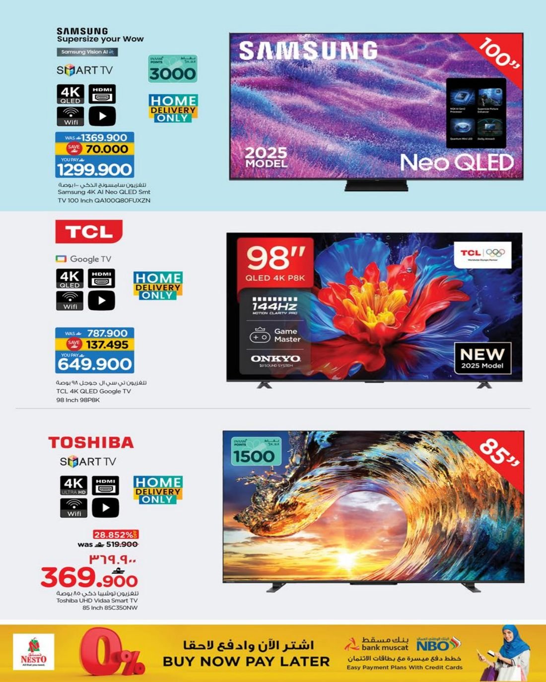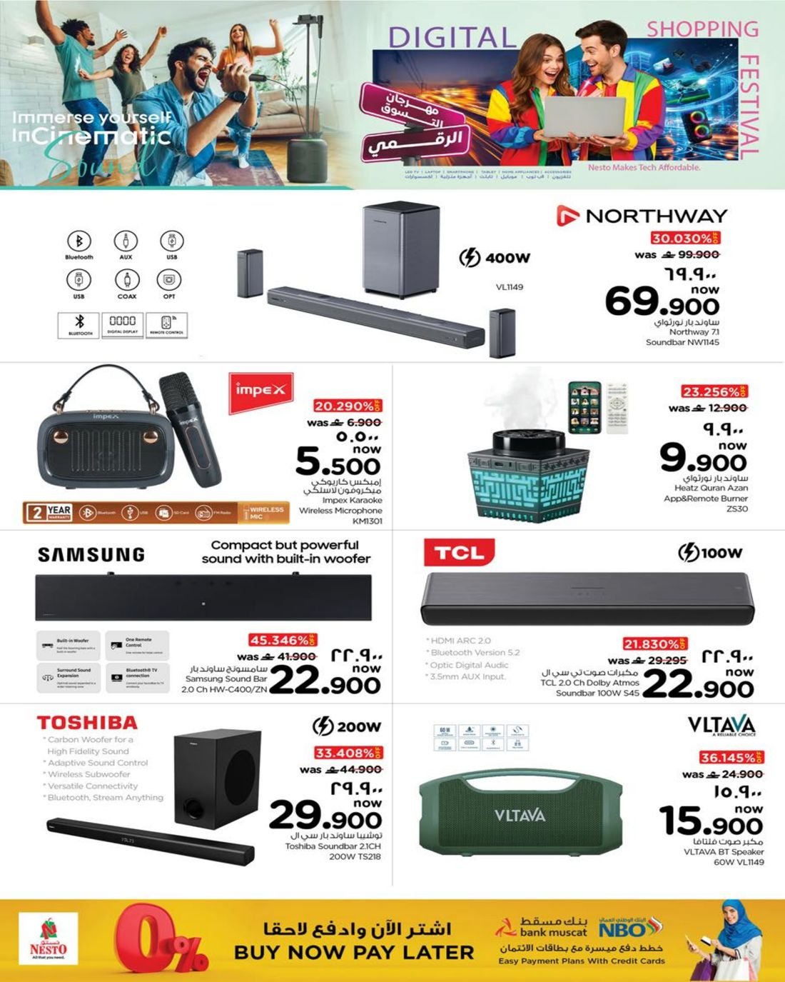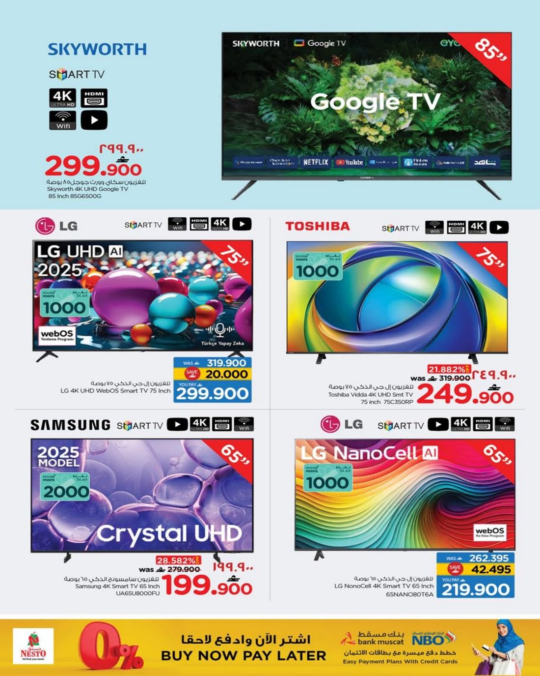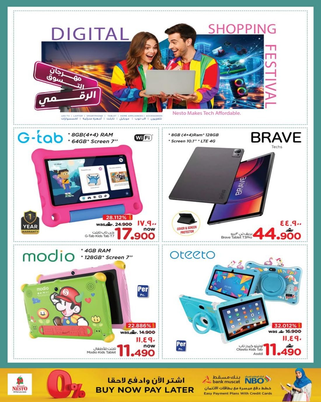 عروض الالكترونيات المتنوعة من نستو هايبر ماركت عمان فرع ولاية صلالة ، تسوق الان العديد من الاجهزة الالكترونية وبإسعار مخفضة من نستو هايبرماركت صلالة في عوقد والسعادة.