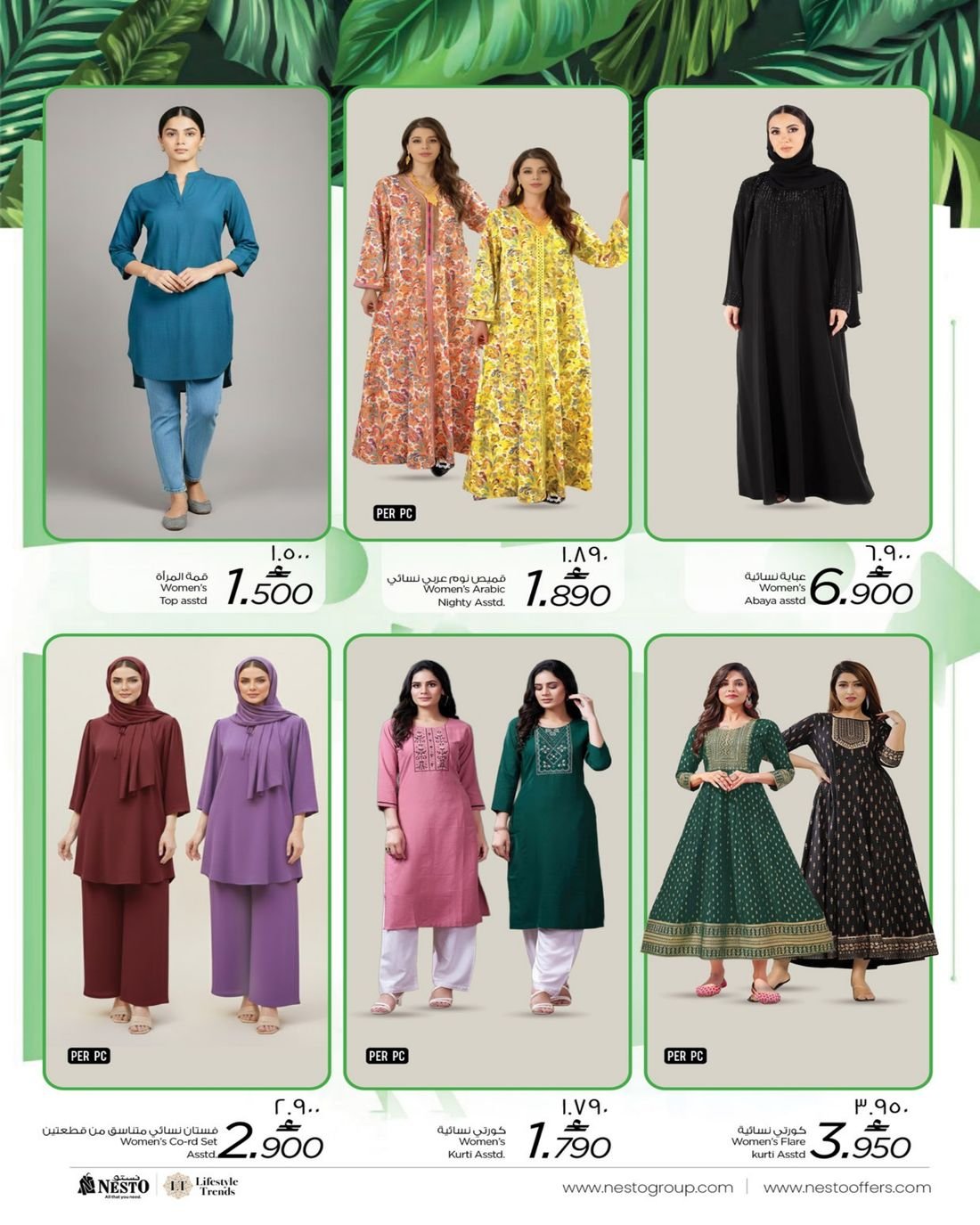 عروض الملابس المتنوعة والاحذية من نستو هايبر ماركت عمان فرع ولاية صلالة ، تسوق الان العديد من الملابس الجاهزة إضافة إلى الاحذية الحقائب النسائية وبإسعار مخفضة والمقدمة من نستو عوقد والسعادة في ولاية صلالة .